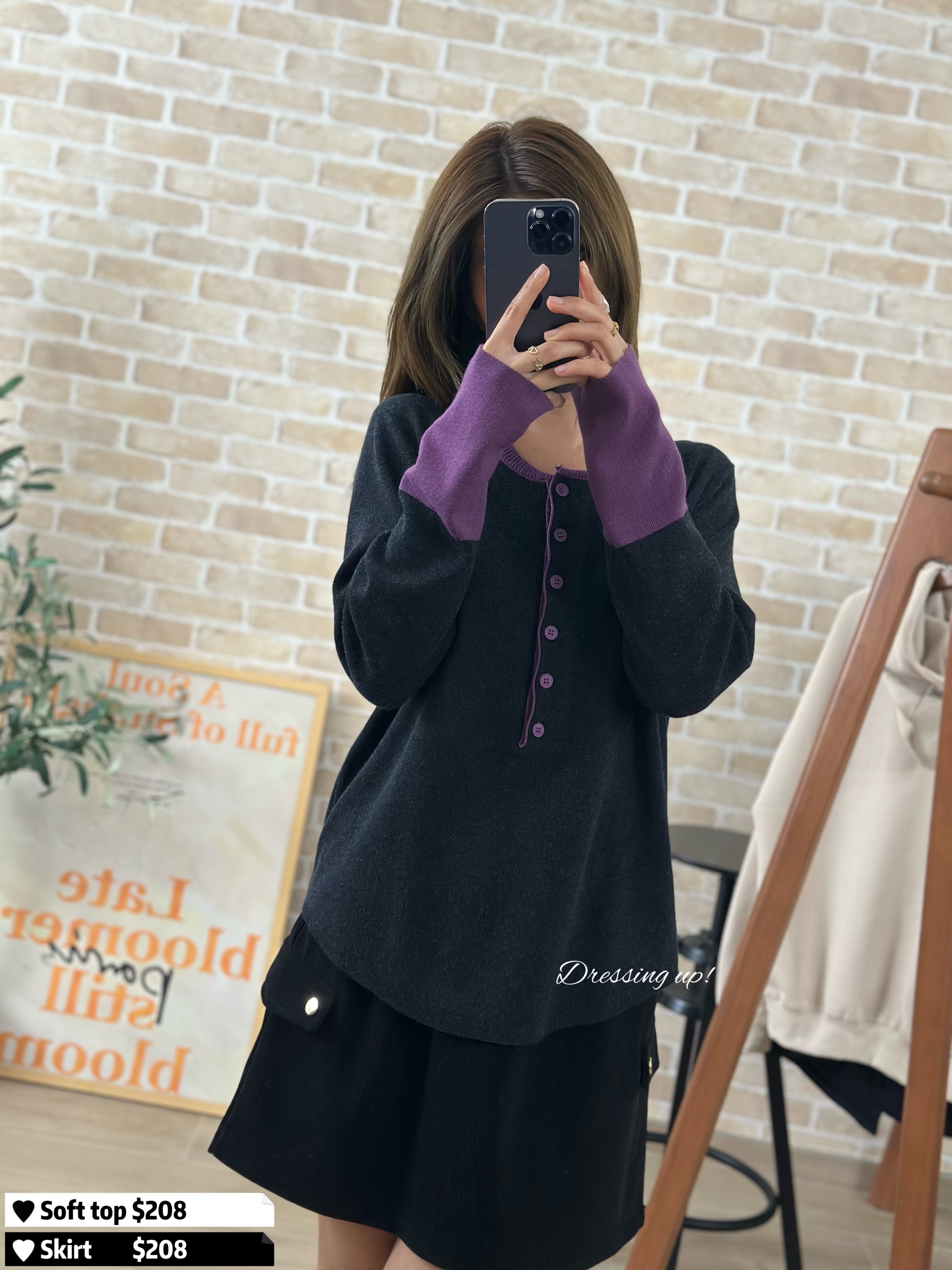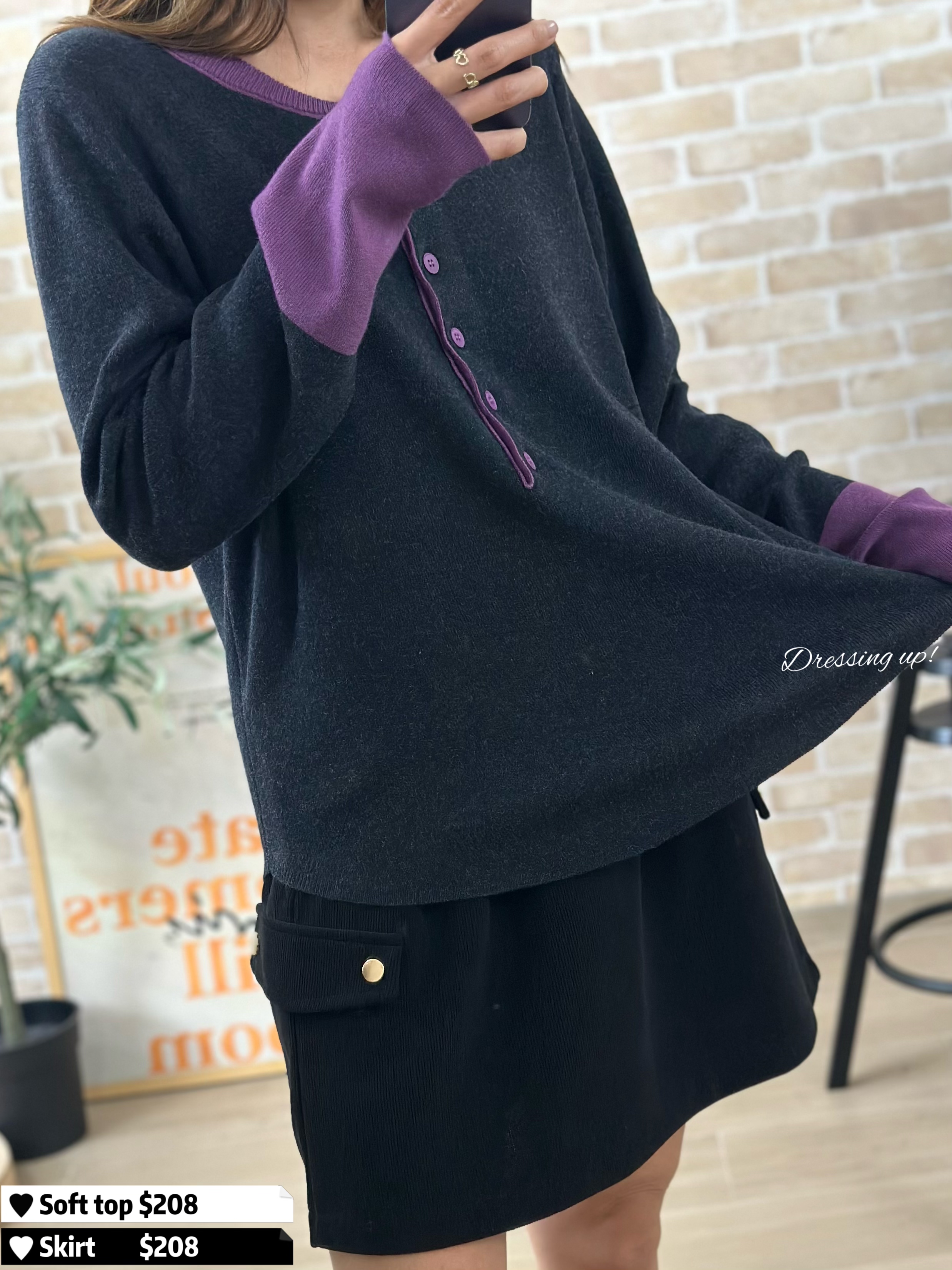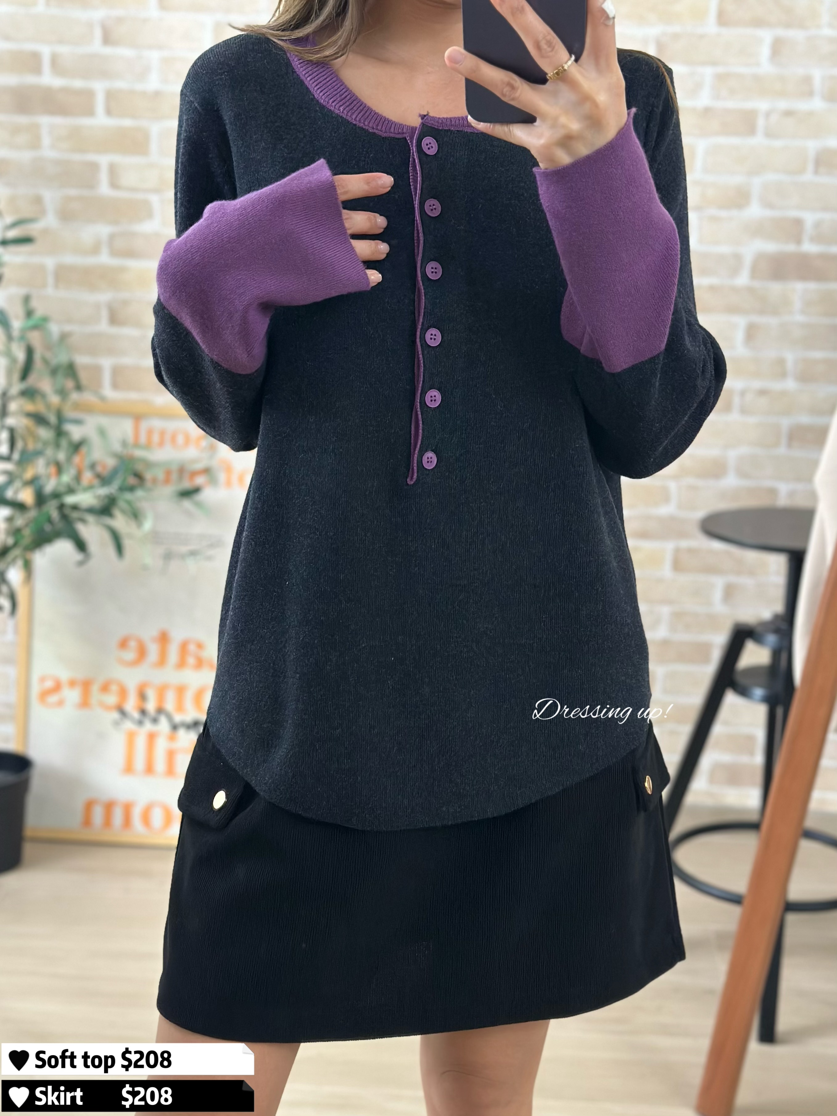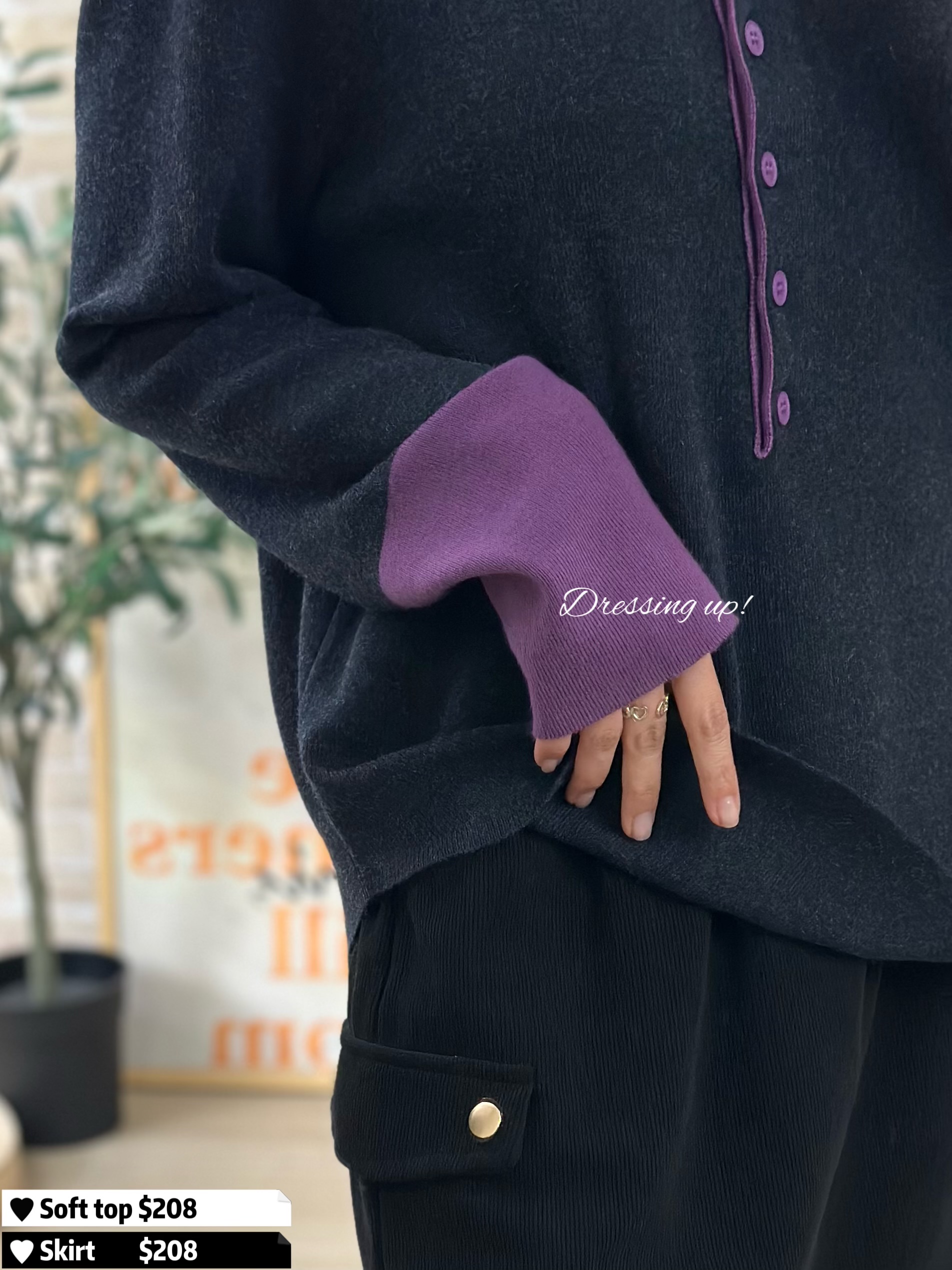 #不買後悔 💭 淨係呢個色已值得入手 😍✨ 軟棉棉針織線衫 深灰主色、撞上紫色手袖 係咪靚到不得了呢 😆 軟棉棉、好舒服 、又親膚 超強十吋彈性 任何身型都考佢唔到 😋💕 🆕 不買後悔 ♡ 紫灰拼色針織 🆕 胸38-48吋/腰36-46吋/長61cm