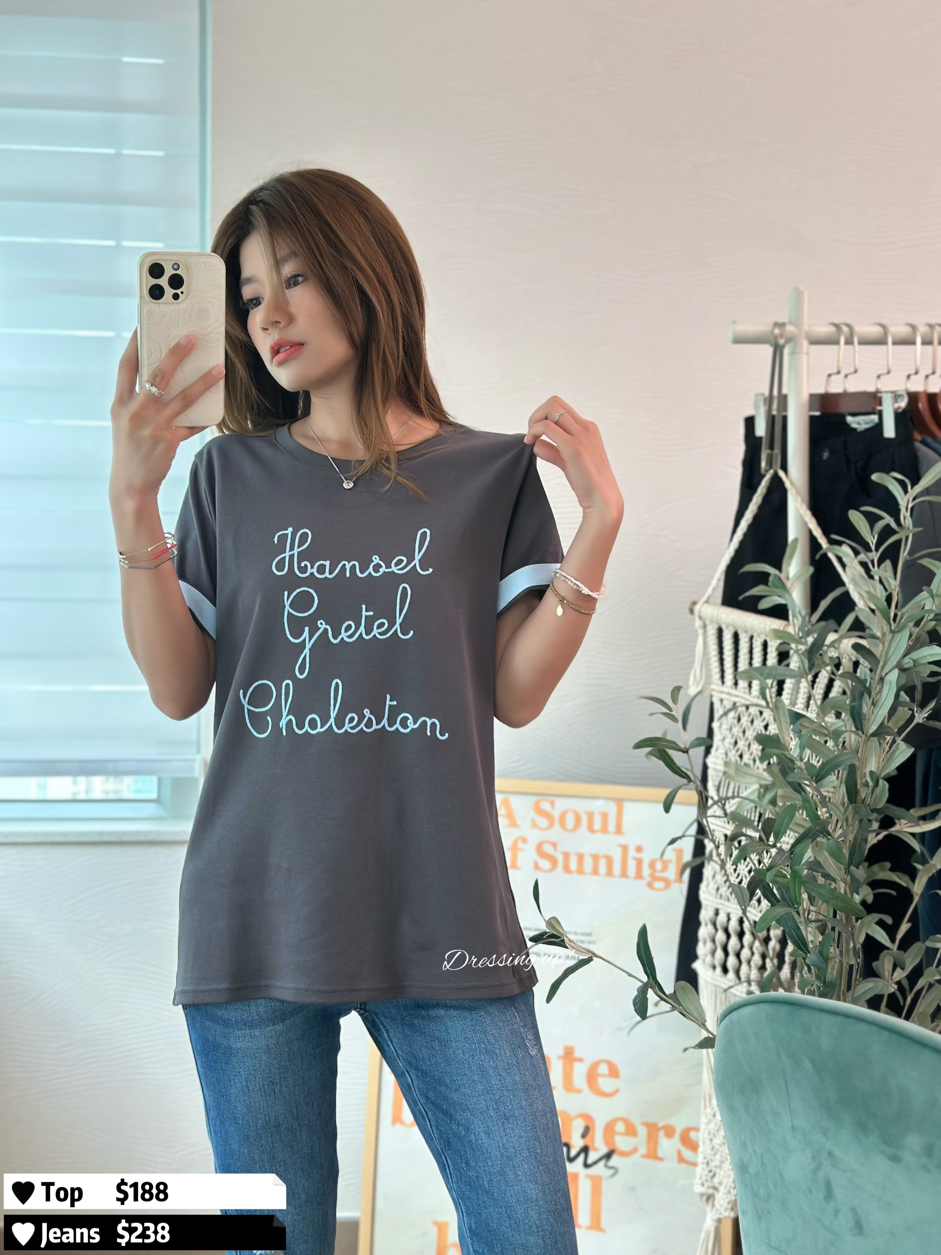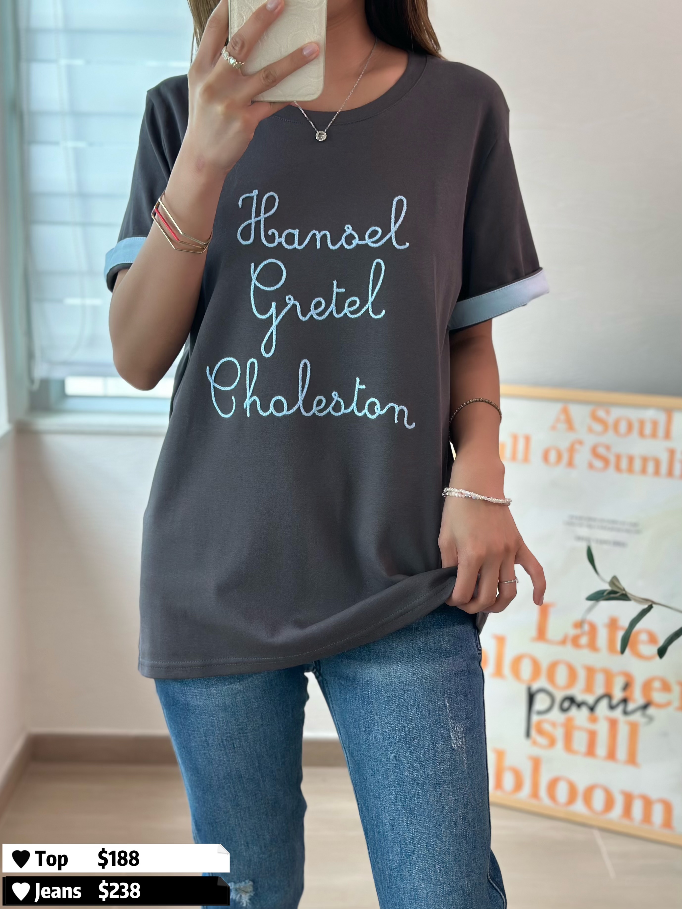 #個性潦草 ➰ 一見鍾情就係你 😆😆🙌🏻 個性潦草織字 滑身軟棉棉靚料 舒服、輕鬆、不限身型 灰色主色,加上粉藍摺袖 有誠意又靚料!#好睇保証 😝😝 🆕 個性潦草|織字軟棉上衣 🆕 胸38-44吋/ 腰38-44吋/長64cm