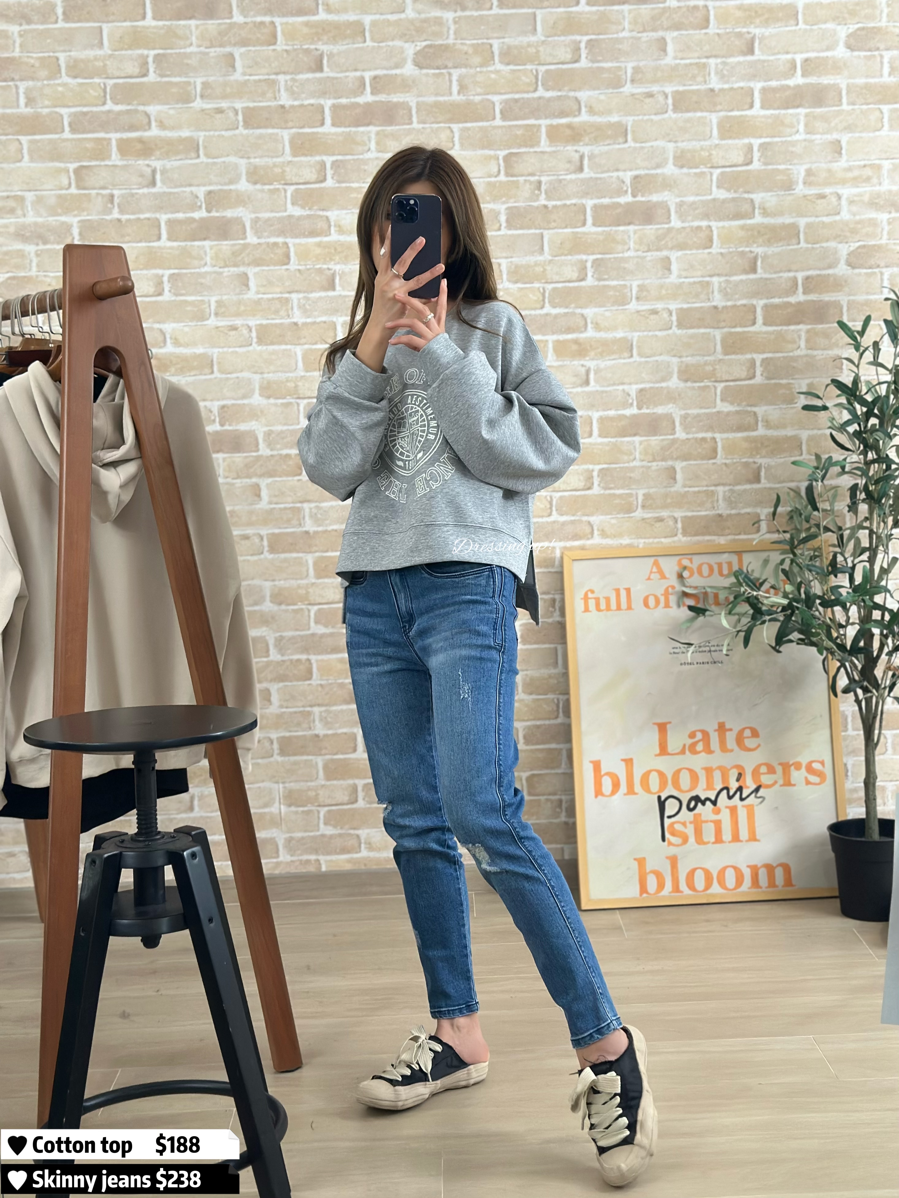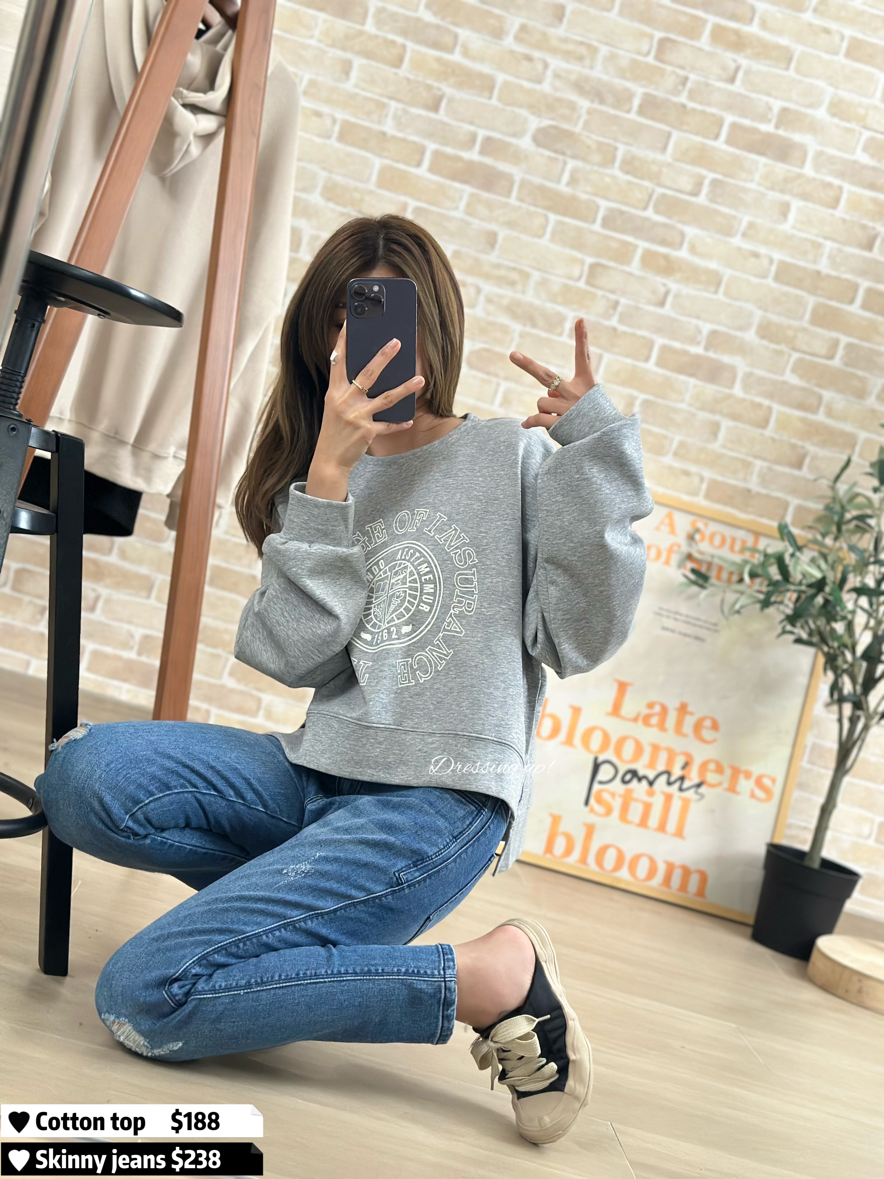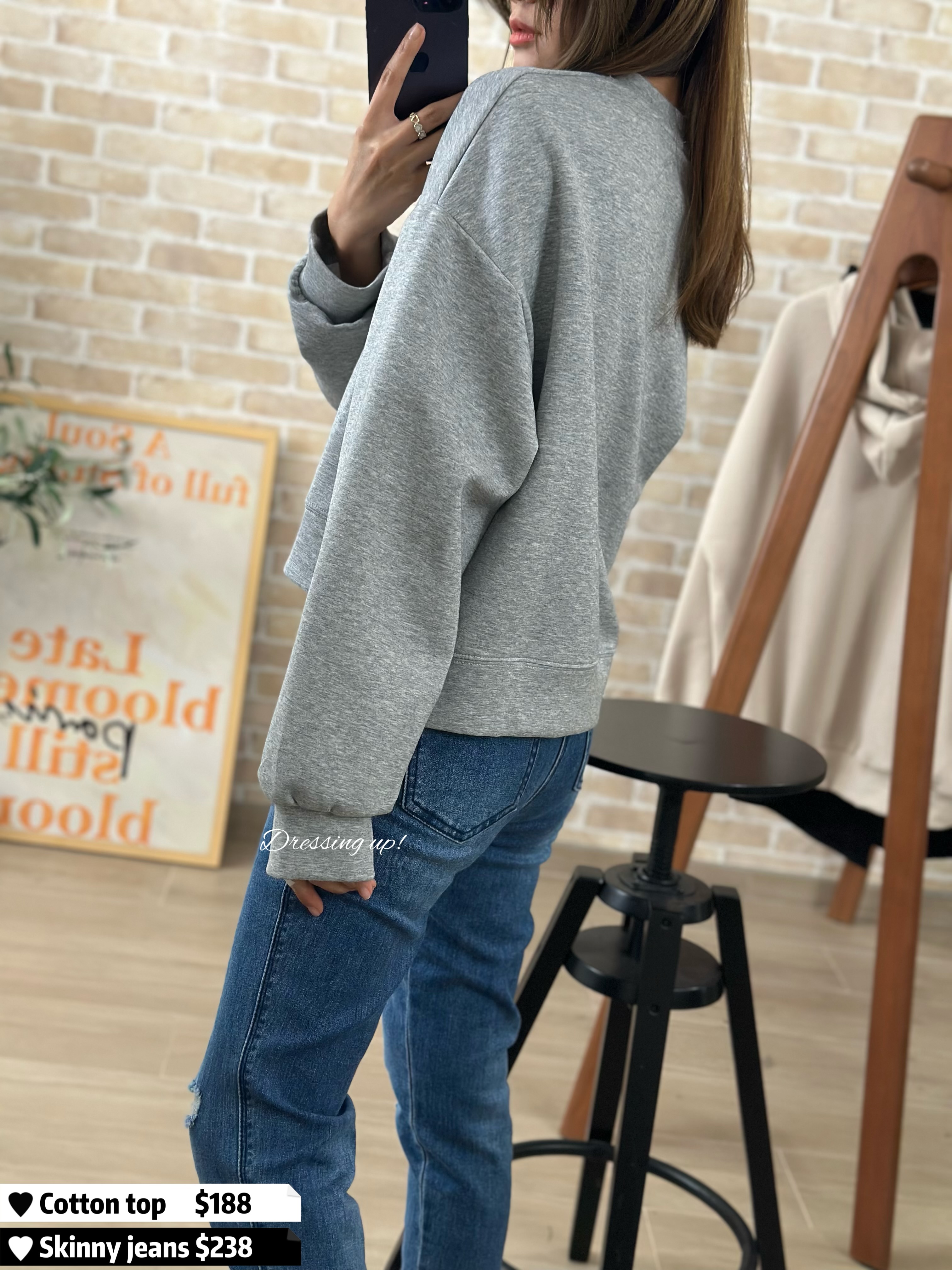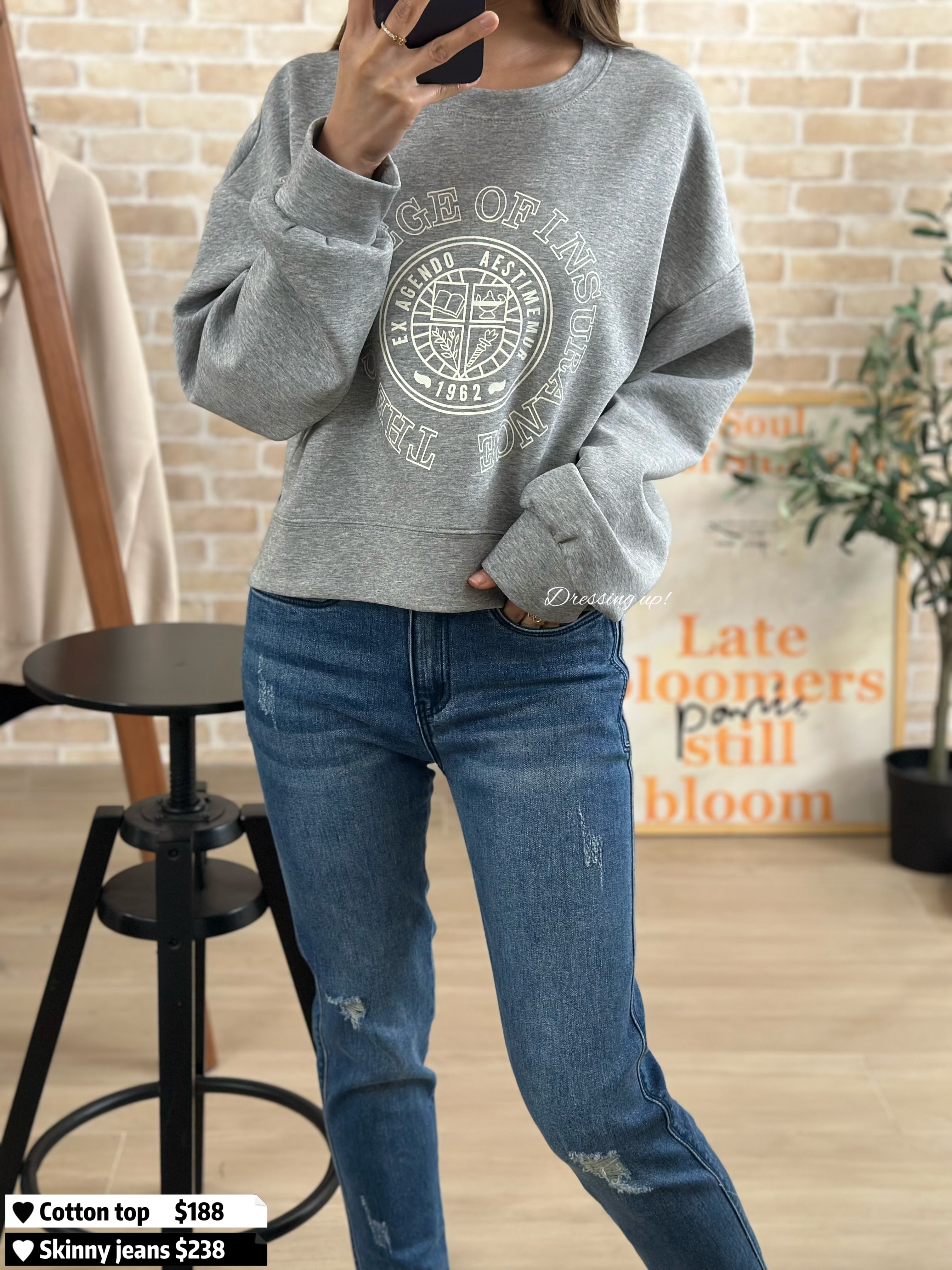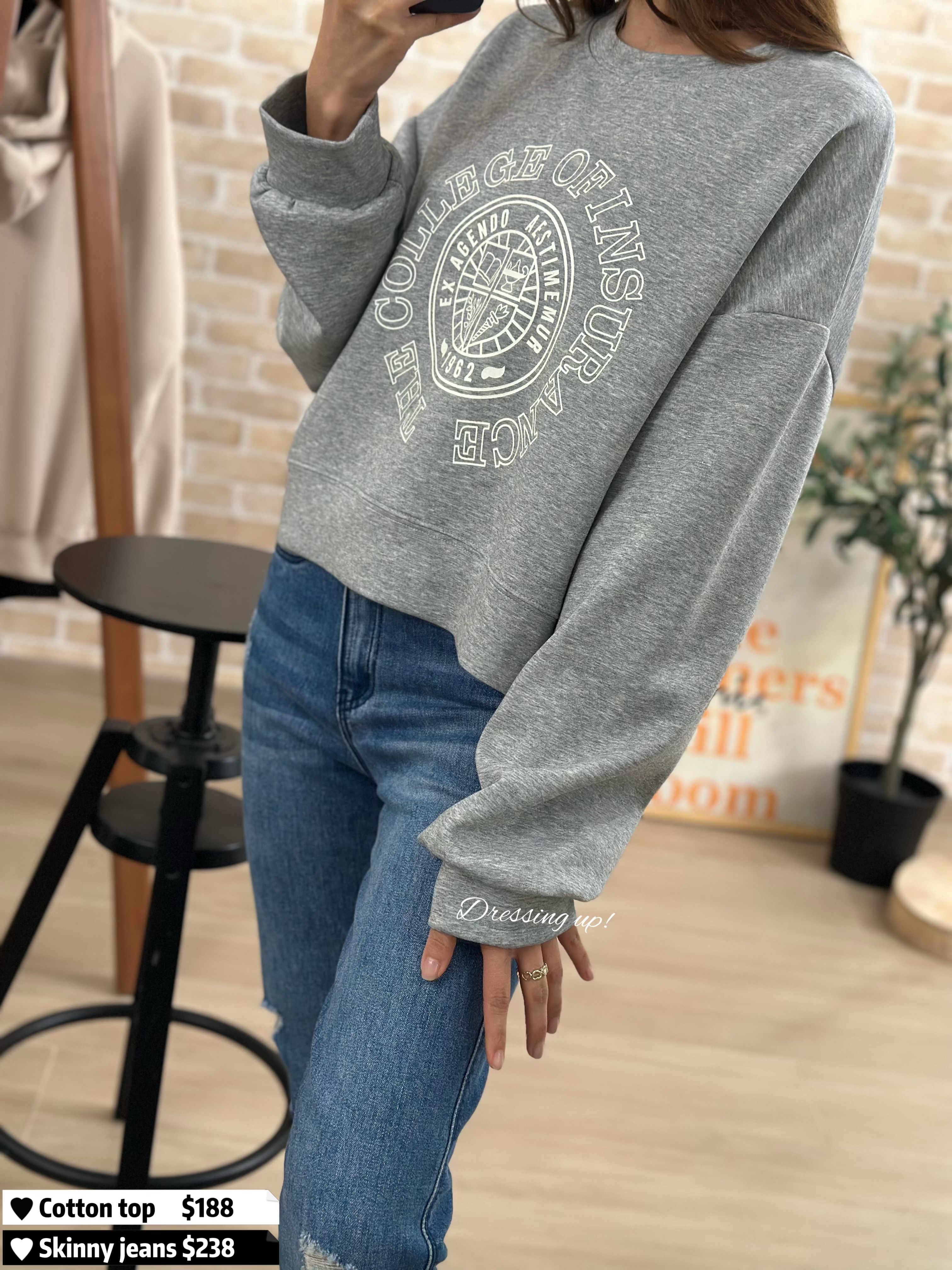 #個性花灰 🌫️ 今年好興嘅短身𝐂𝐮𝐭𝐭𝐢𝐧𝐠 😌🤚 花灰色棉質衞衣 配以美式圖案 ~~ 拉高身形比例,細細粒就最啱! 高質滑靚料(滑嘟嘟、勁舒服) 前短後長、著上身又幾醒目 襯窄牛一流 😆😆 🆕 個性花灰|超滑印花衞衣 🆕 胸43-48吋/ 腰42-49吋/前短後長45cm 52cm