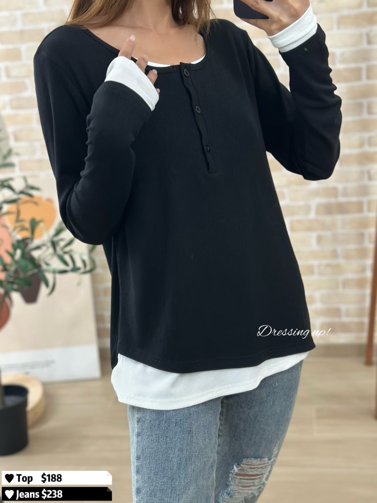 #兩色推介 💌 又一靚爆假兩件 😙😙😙 著瘦人軟棉料 做埋衫領、手袖拼接 成個設計 😍 一百分喎!!! 質地輕身舒服 最少十吋彈性,襯褸仲好靚 見字請即落單 😚💌 🆕 兩色推介|拼接假兩件上衣 🆕 胸34-44吋/腰34-44吋/長60cm