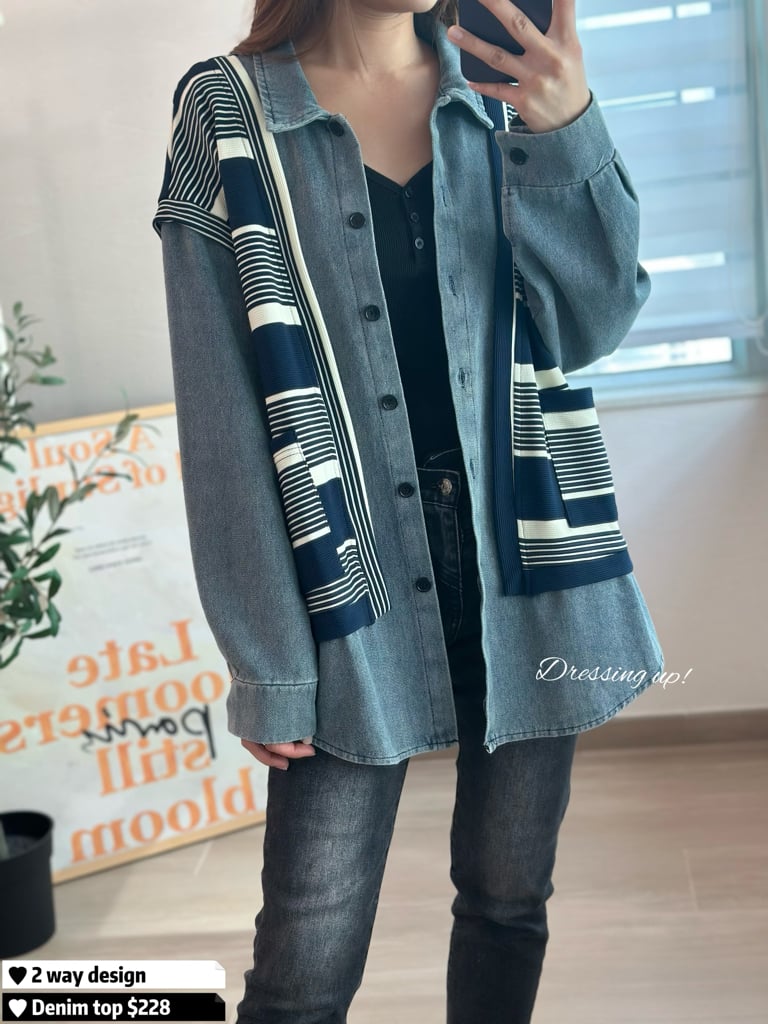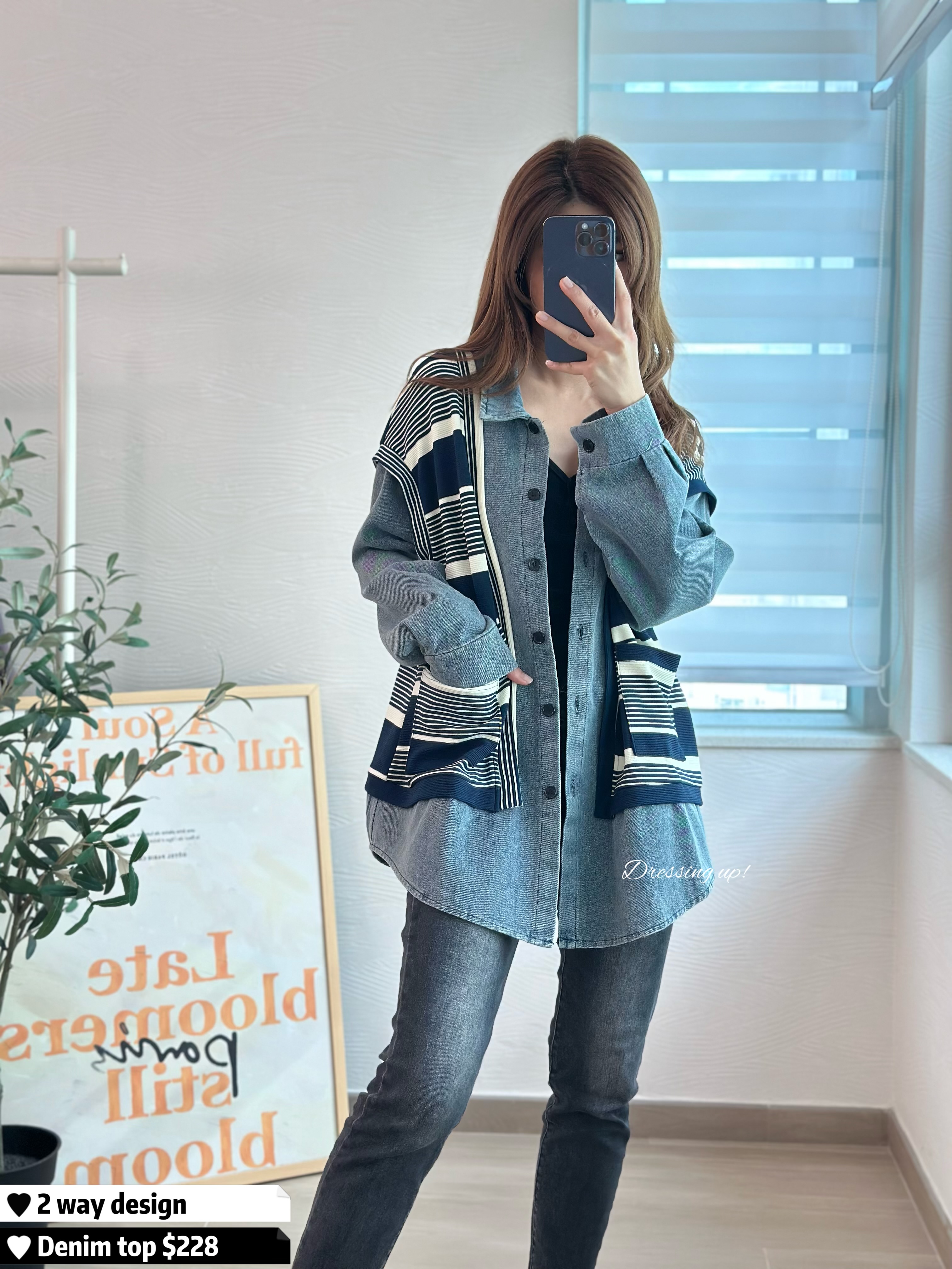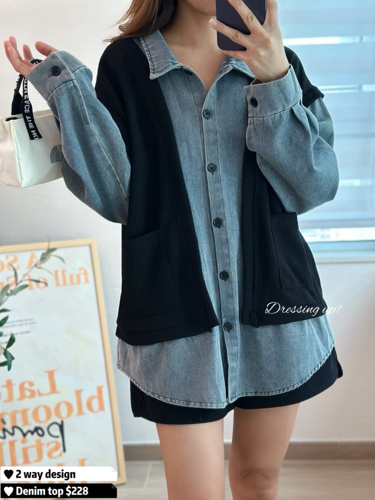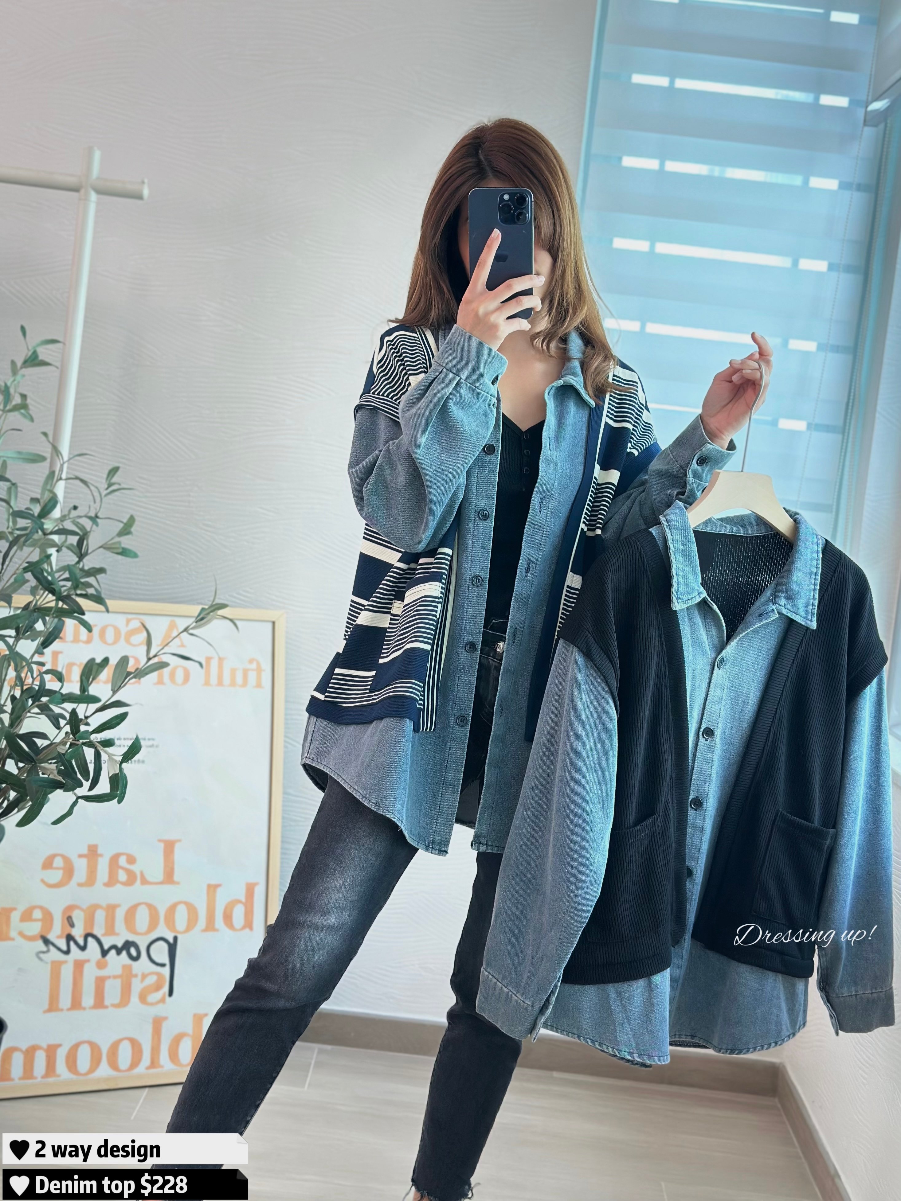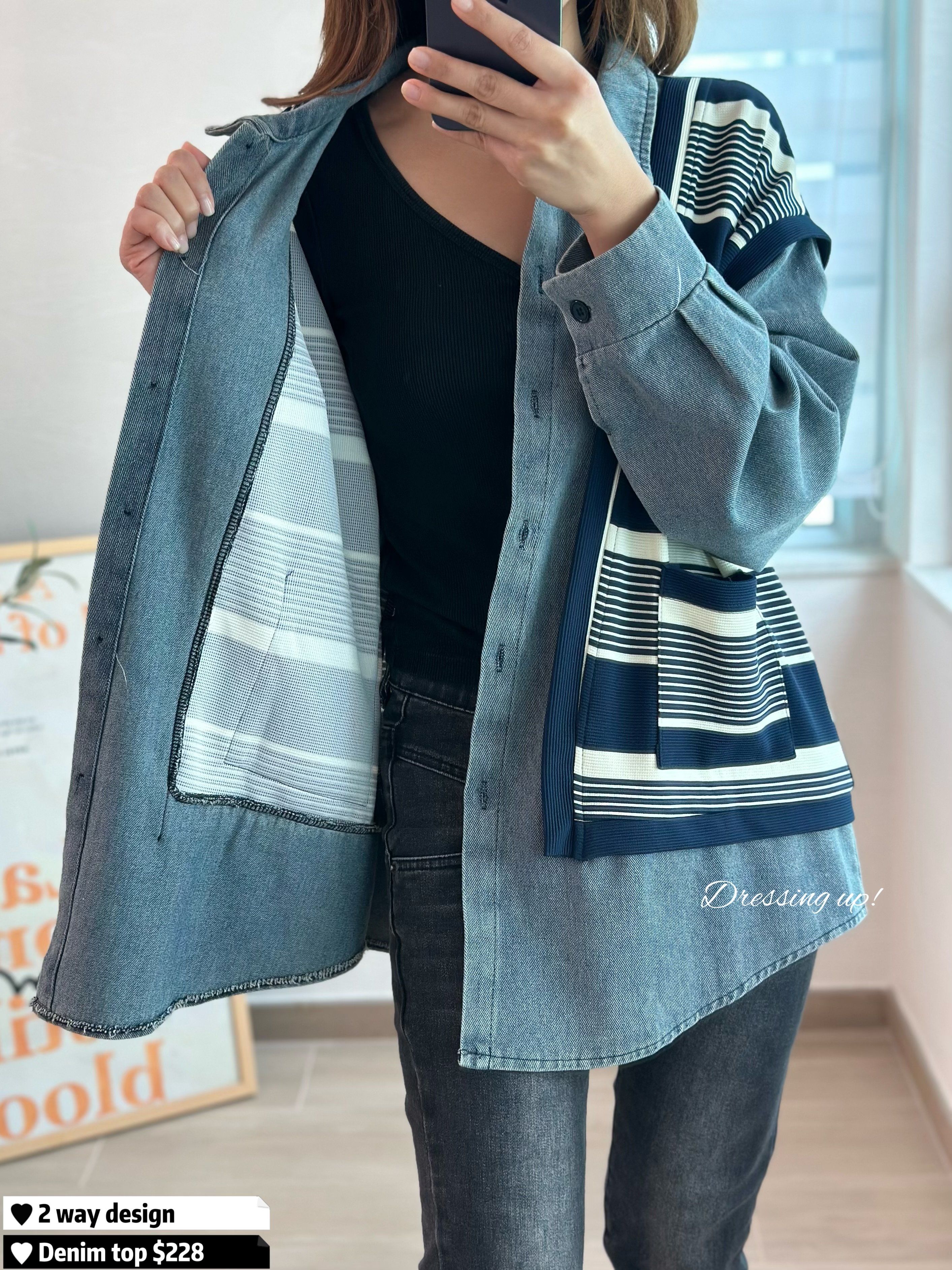 #別出心裁 ✨ 一個剪裁 😙 兩個設計! 線棉牛仔衫,配上型格洗水 外面好似襯咗𝐋𝐚𝐲𝐞𝐫咁~ 係咪好特別呢?! 一個搶眼條紋、一個百搭黑色 𝐓𝐨𝐩 、𝐉𝐚𝐜𝐤𝐞𝐭兩個著法 兩款都各有捧場客 😍🫶🏻 🆕 別出心裁|洗水拼接牛仔衫 🆕 胸46吋/ 腰48吋/長66cm