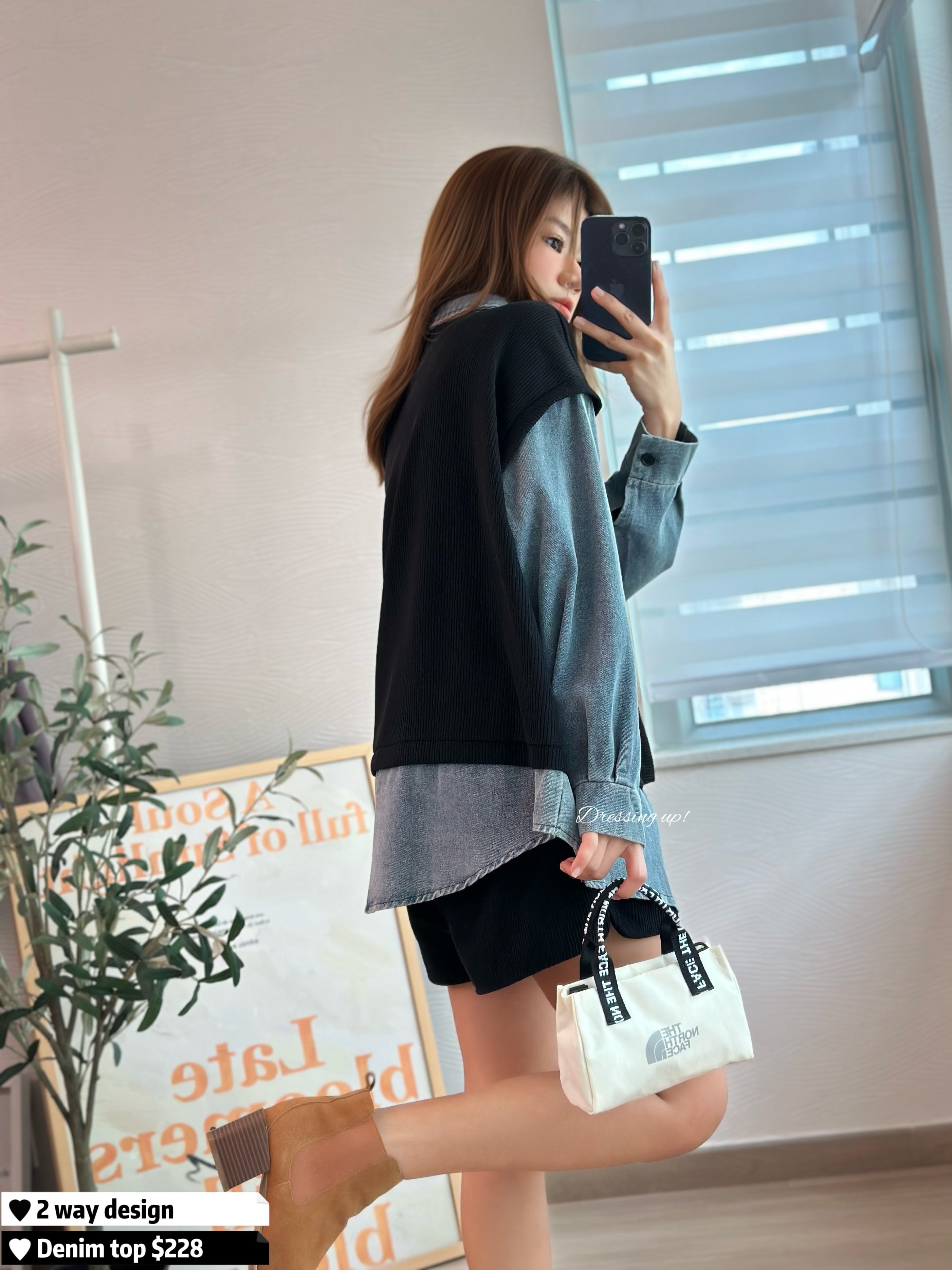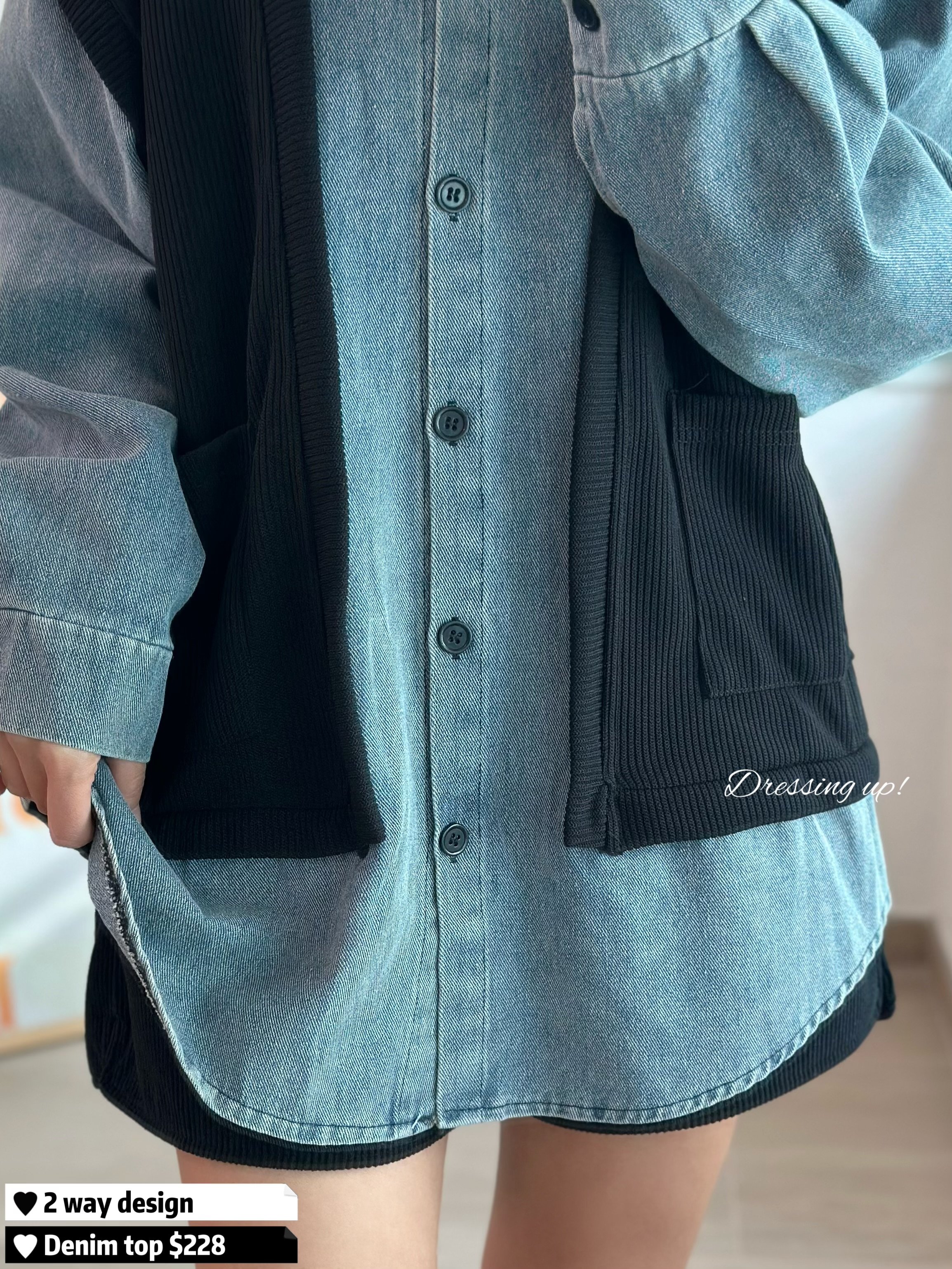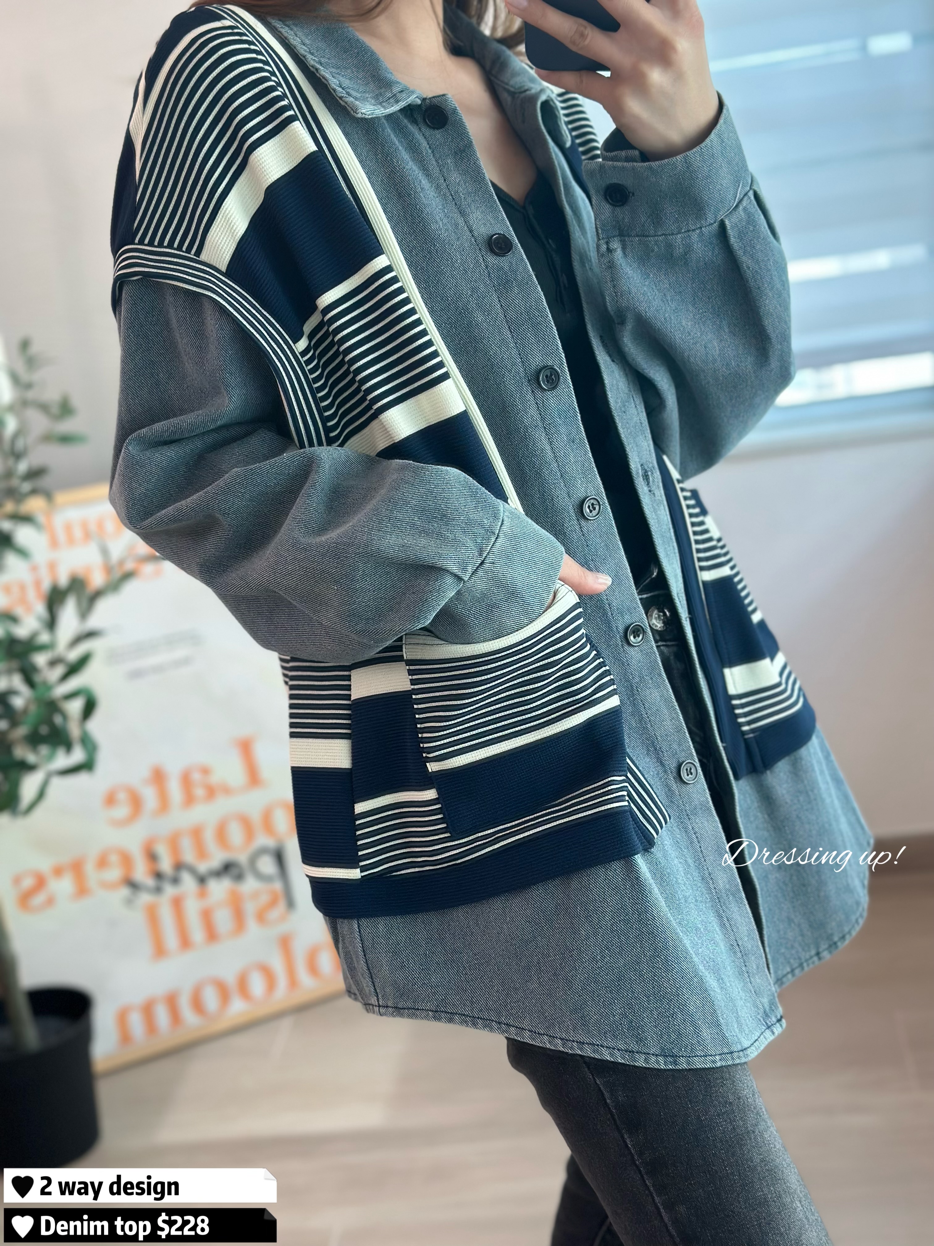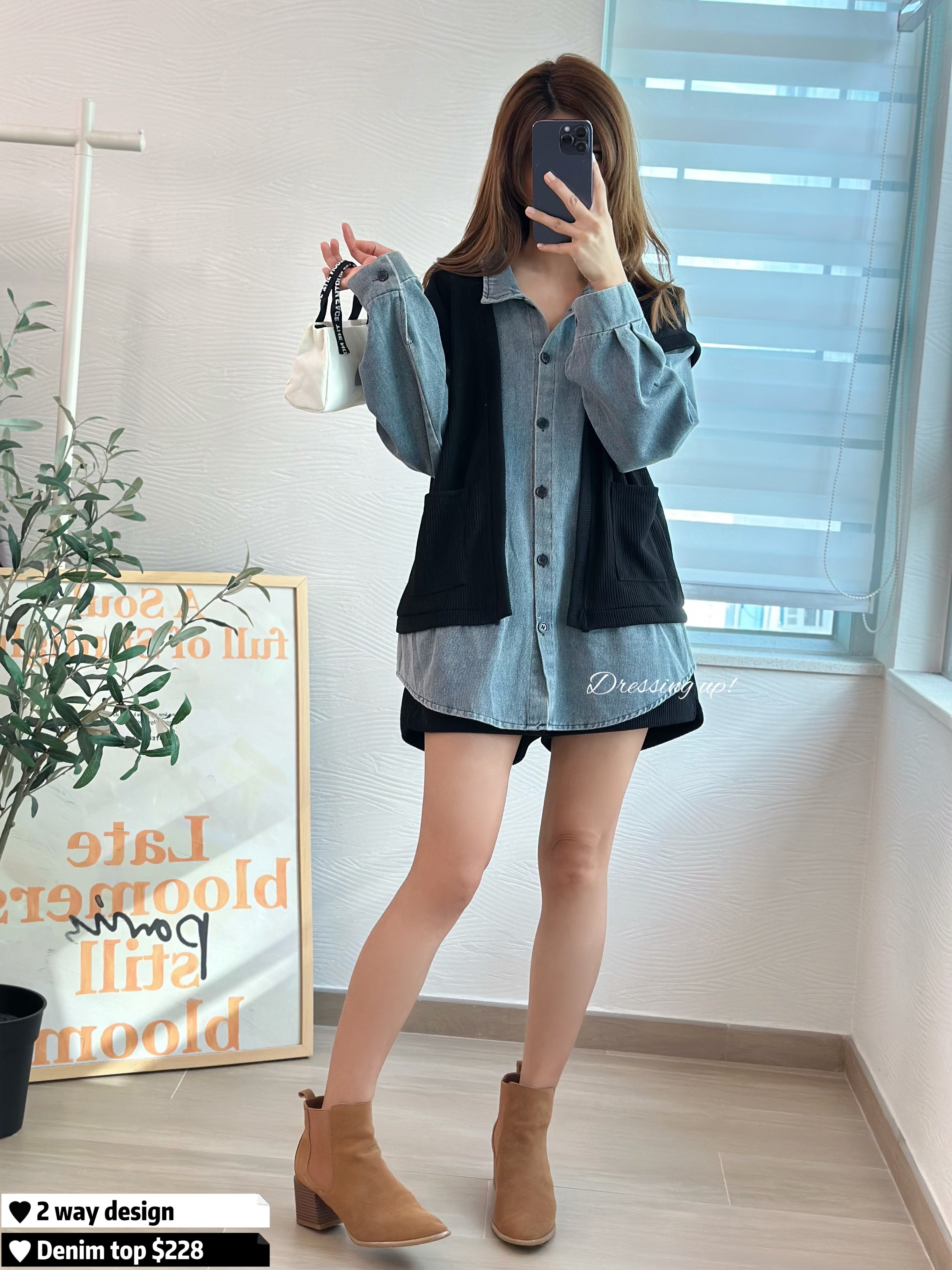 #別出心裁 ✨ 一個剪裁 😙 兩個設計! 線棉牛仔衫,配上型格洗水 外面好似襯咗𝐋𝐚𝐲𝐞𝐫咁~ 係咪好特別呢?! 一個搶眼條紋、一個百搭黑色 𝐓𝐨𝐩 、𝐉𝐚𝐜𝐤𝐞𝐭兩個著法 兩款都各有捧場客 😍🫶🏻 🆕 別出心裁|洗水拼接牛仔衫 🆕 胸46吋/ 腰48吋/長66cm