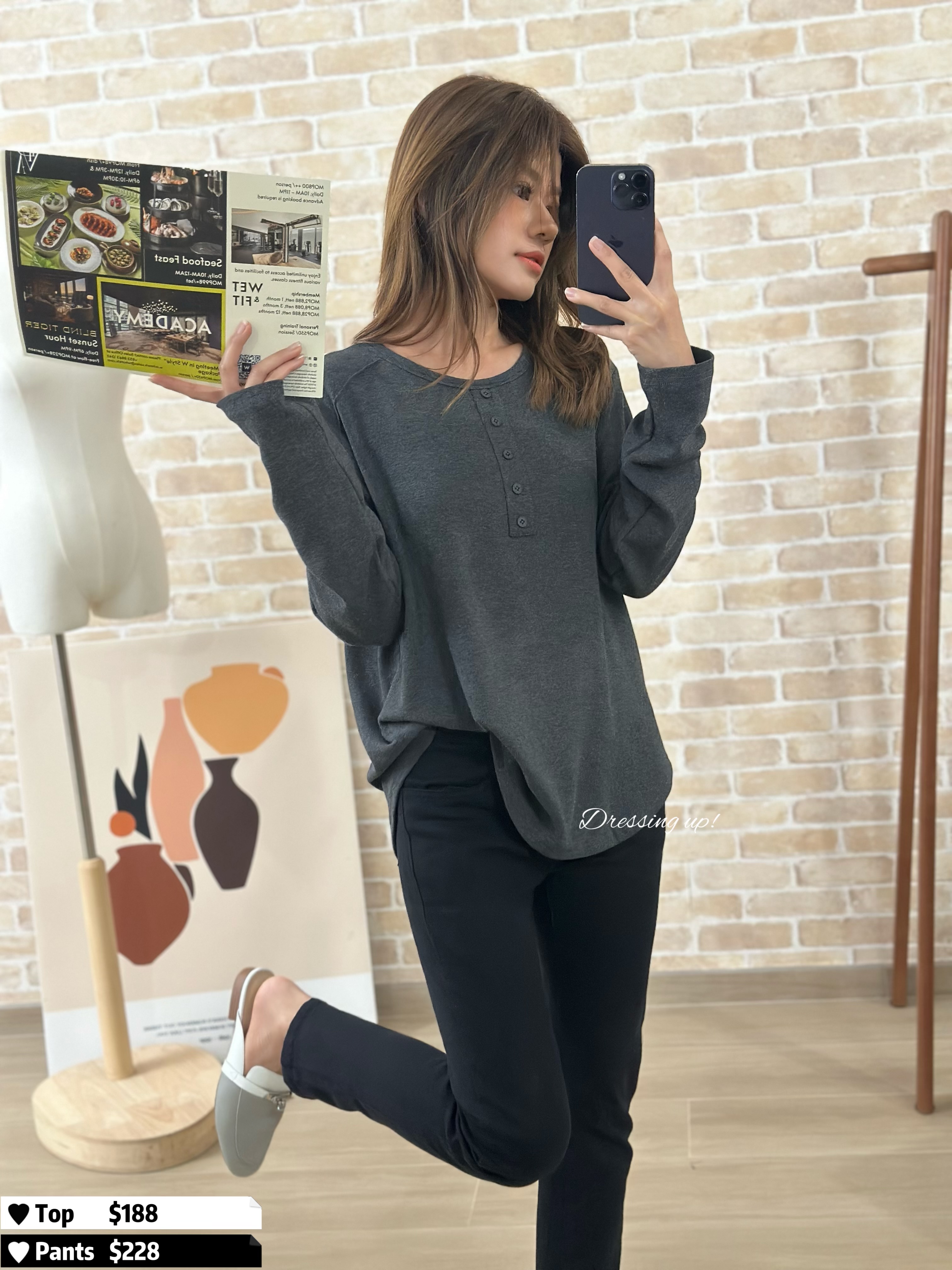#史上最強彈性 🏆 年度推介 😍🤲🏻 今年最新設計! 勁好著軟棉上衣 超親膚、超彈力、超舒服 簡簡單單,著得好瘦喎~~ 衫身釘上假鈕做點綴 十幾吋超強彈性、軟棉棉、不箍肉 酒紅、深灰、黑色 #一定要搶 😍 🆕 史上最強彈性|親膚軟棉上衣 🆕 胸40-54吋/腰40-54吋/前長64cm 側長58cm