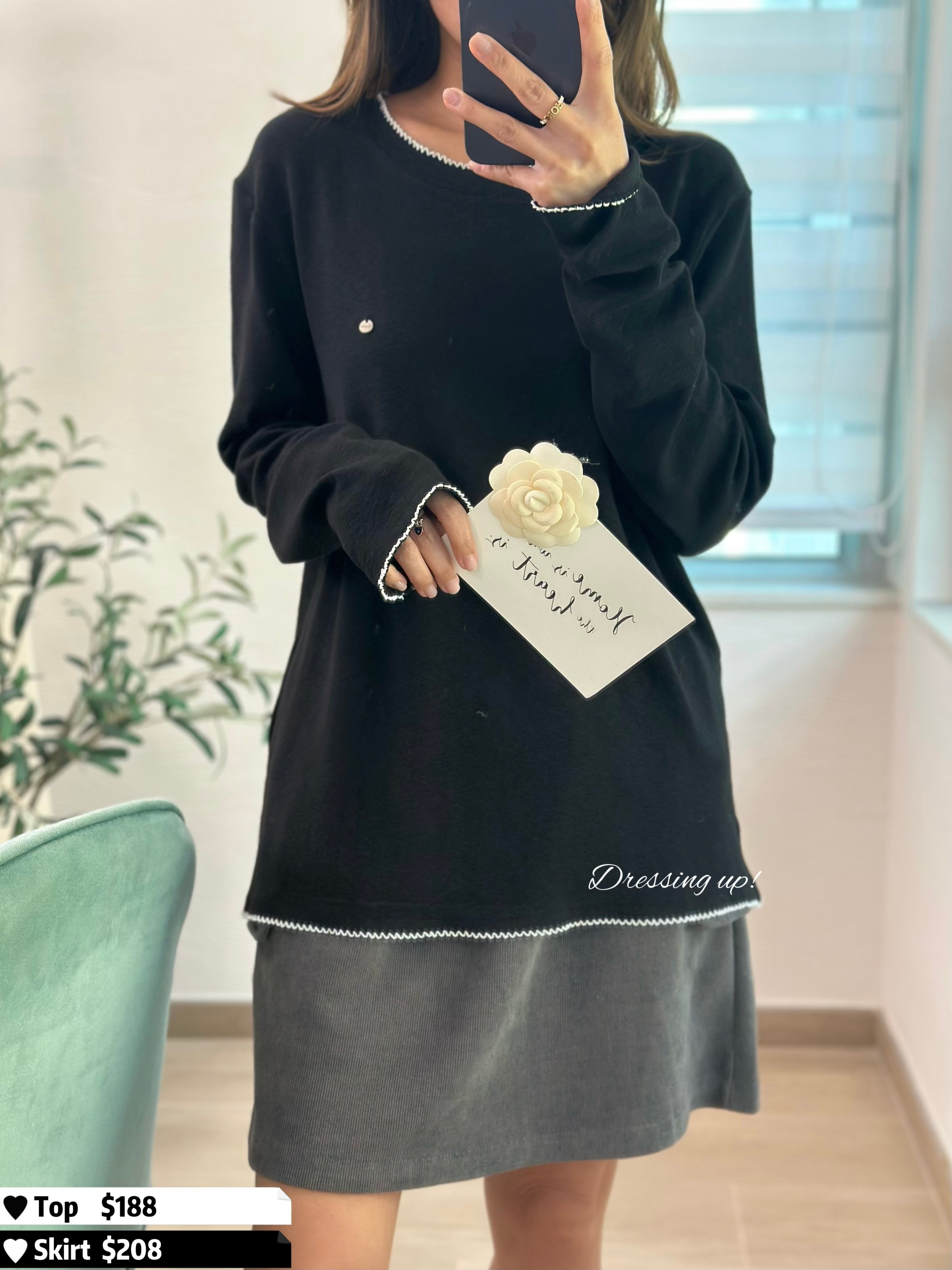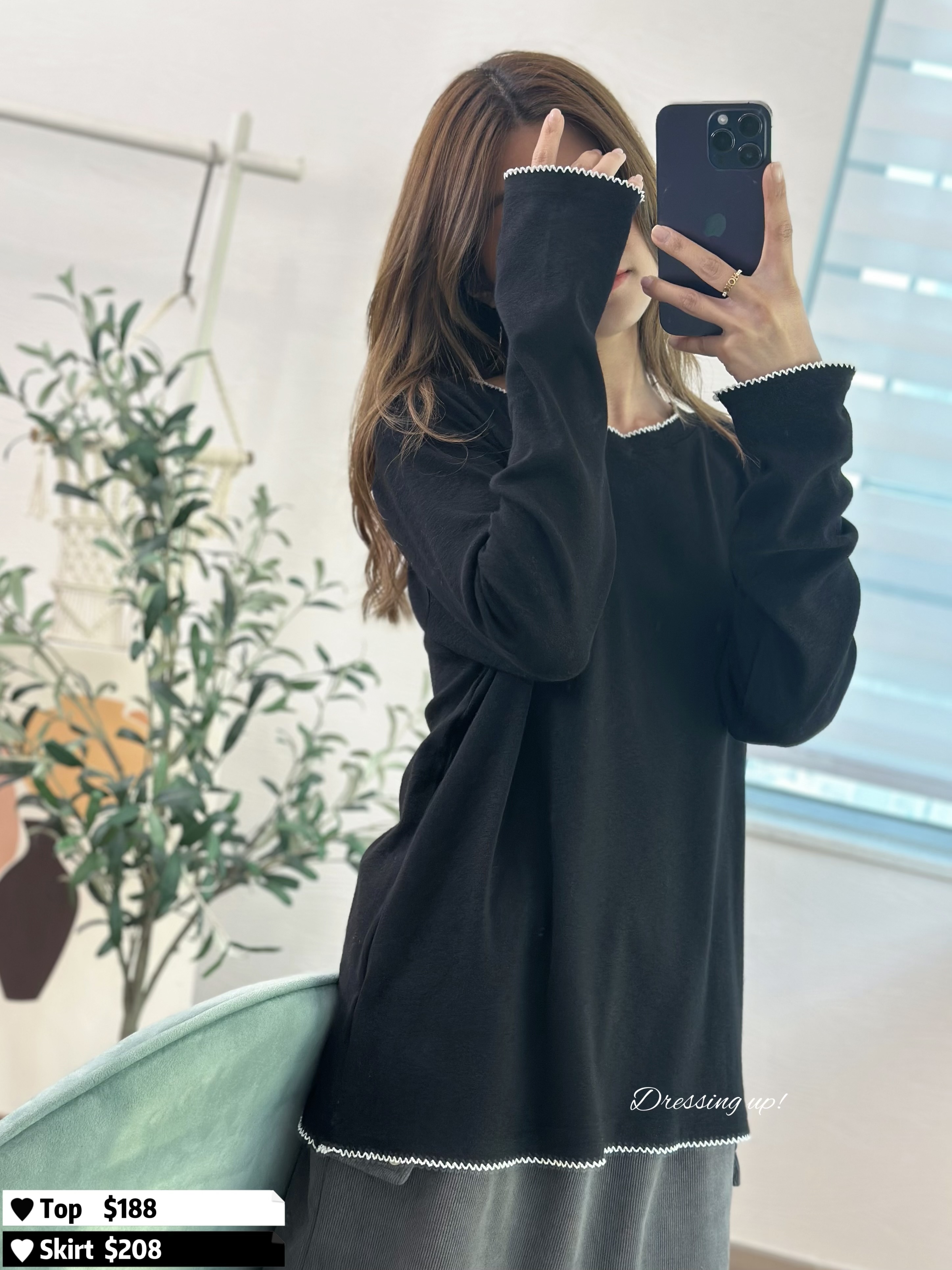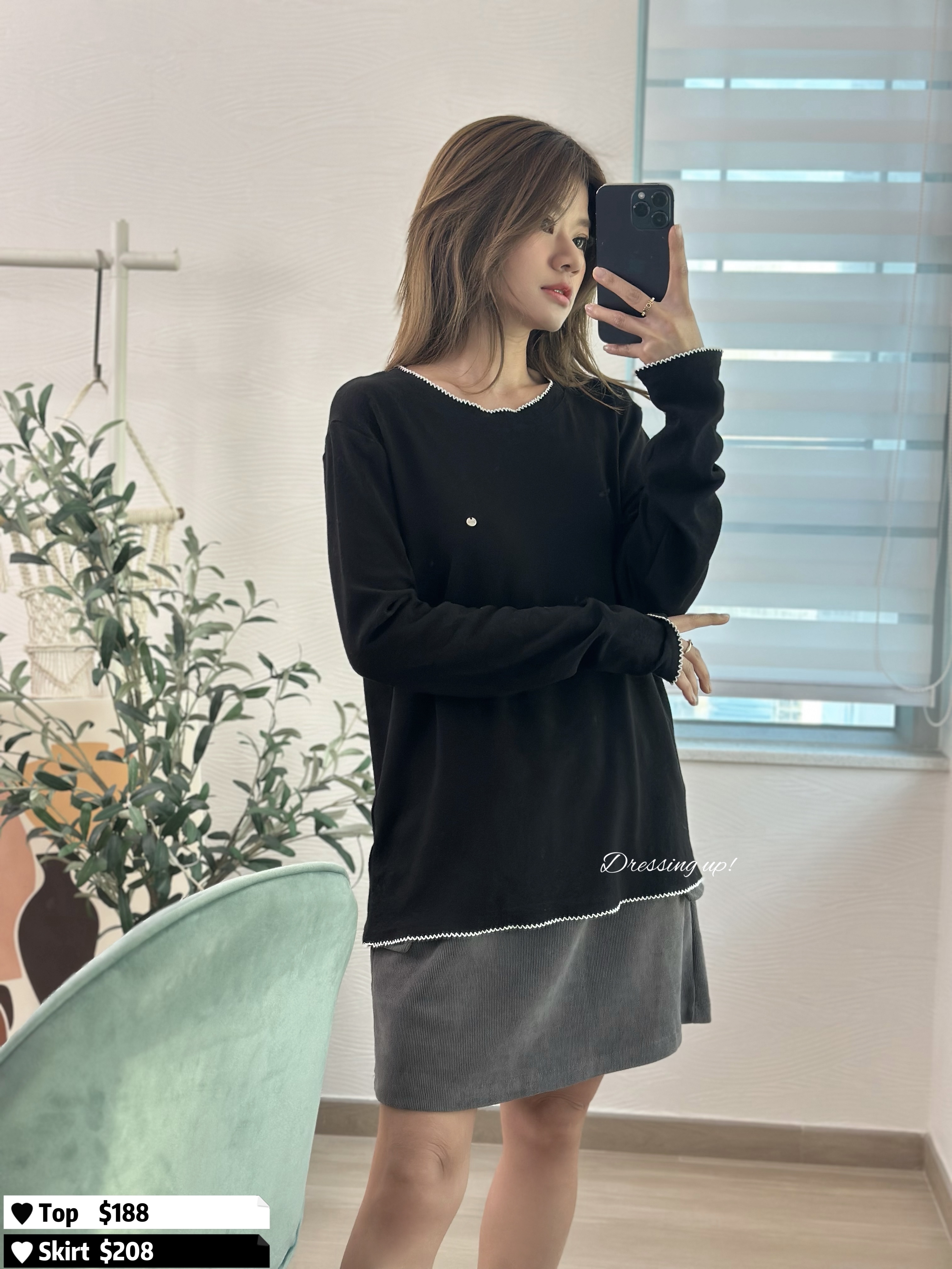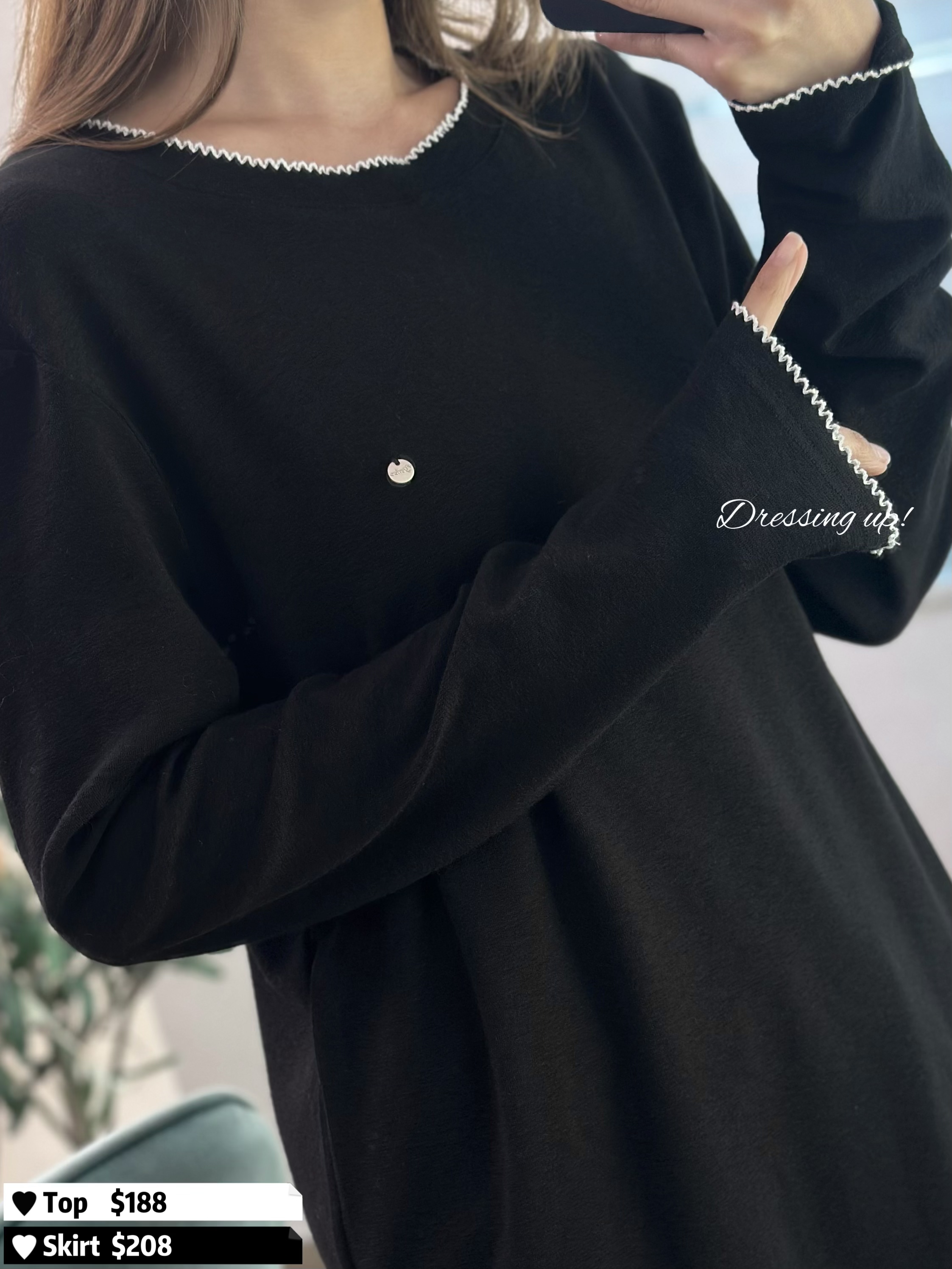 #唯美全黑 🔍 全黑也可以很唯美 🥺💕 車線軟棉上衣 衫領、手袖車線 衫身釘上小銀扣、簡單優雅 ~ 全件十幾吋彈性 唔只單穿、襯褸都好睇 限量靚價,買到賺到 😆😆 🆕 唯美全黑|車線軟棉上衣 🆕 胸38-50吋/腰38-50吋/長62cm