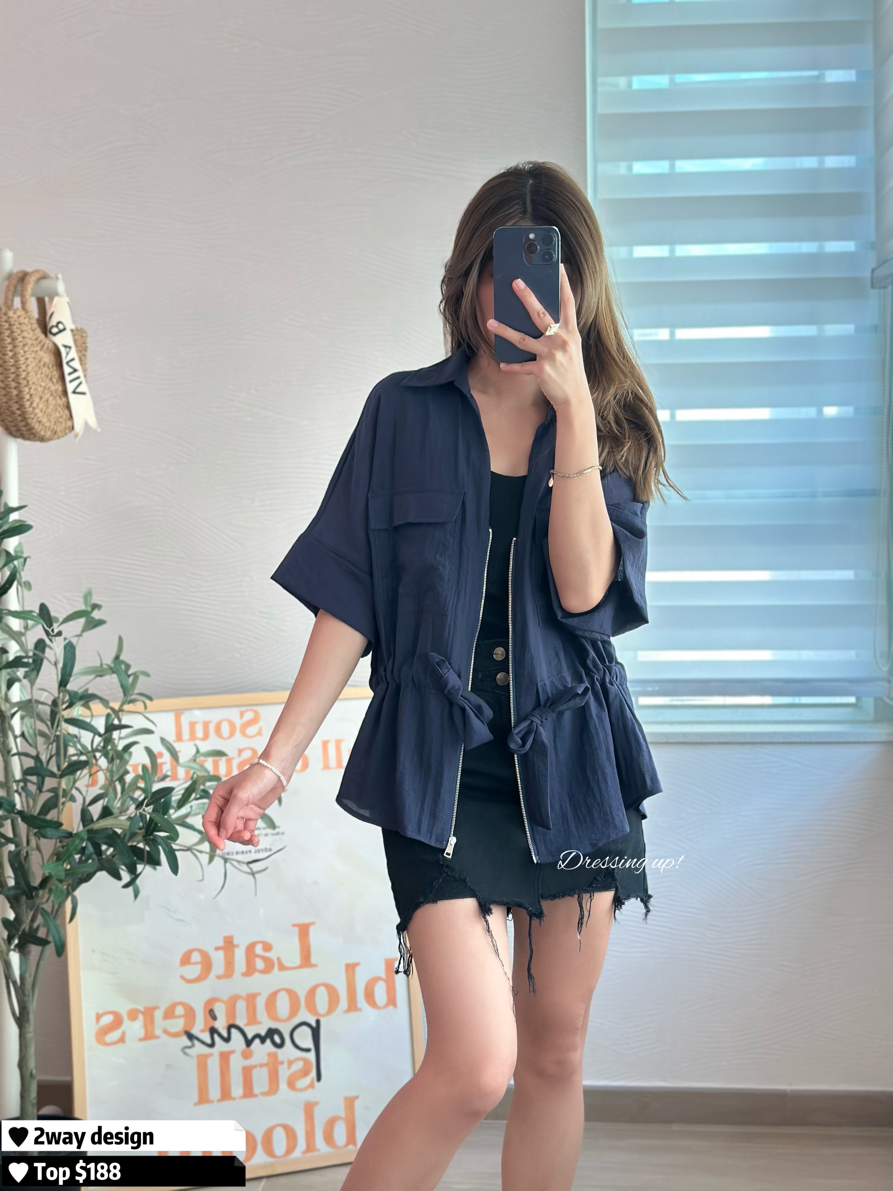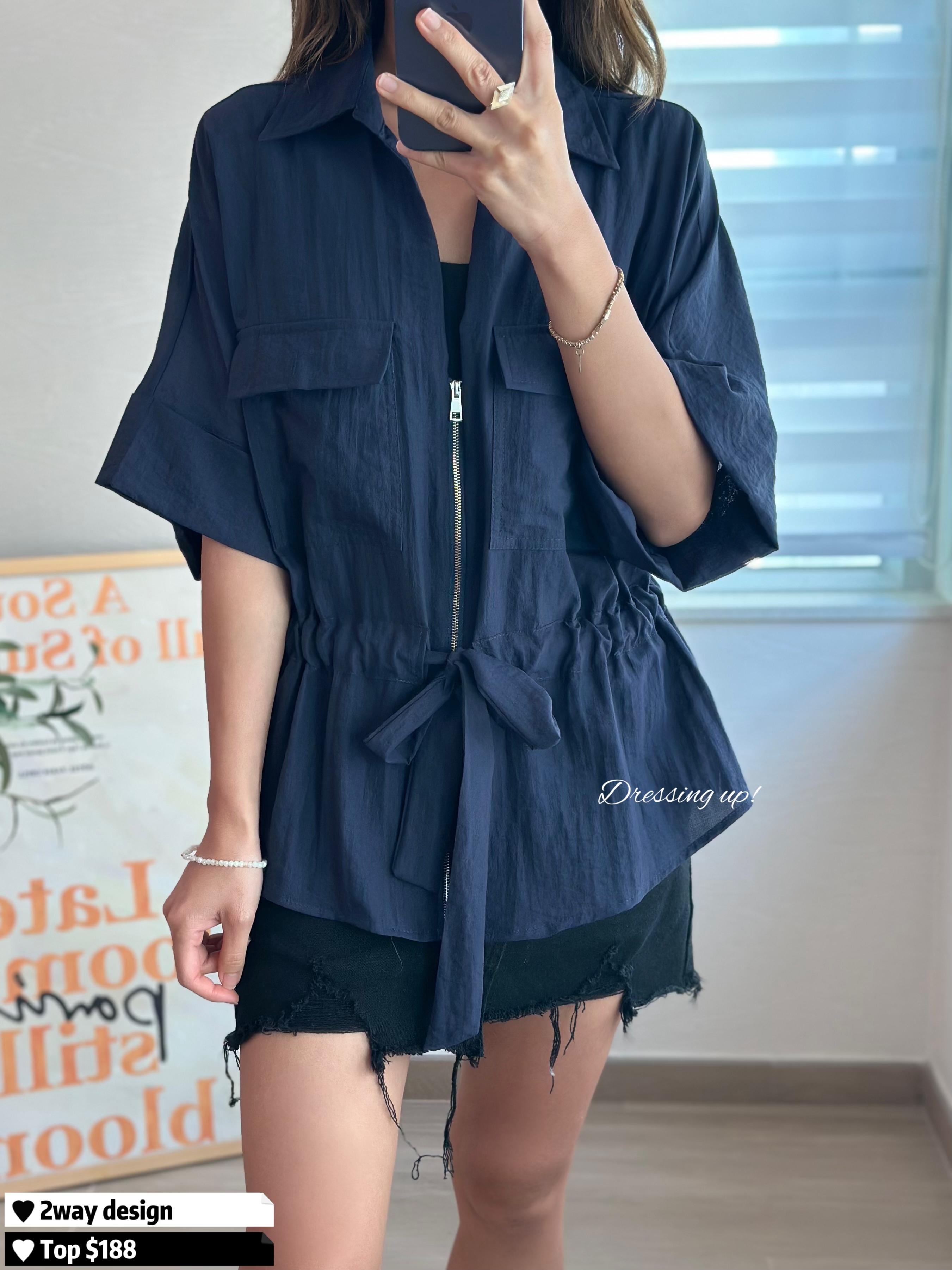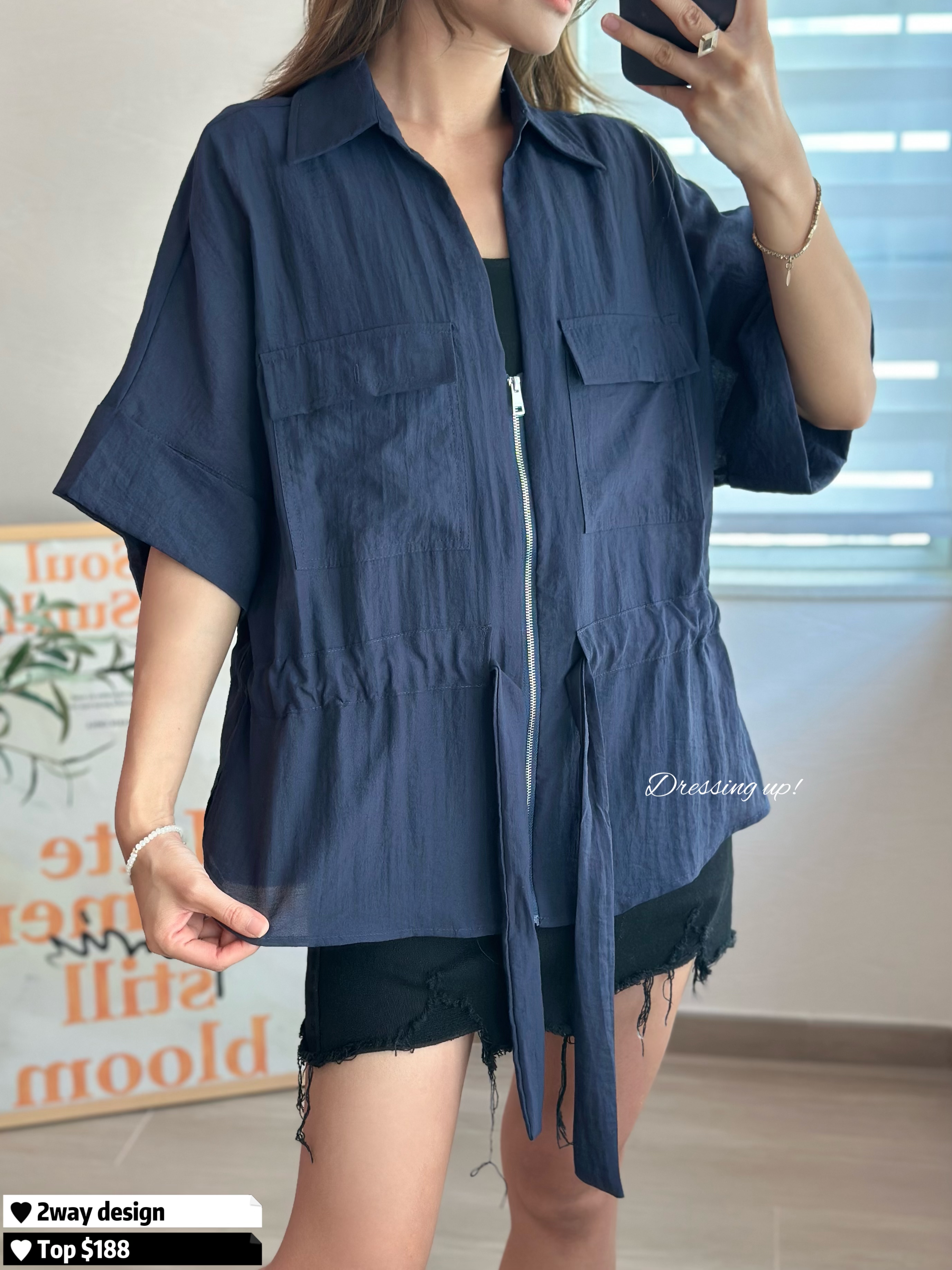 #滿足多心的妳 💌 一件上衣 😝 兩個著法 寶藍色西裝上衣 自帶修腰位,可拉開做外套 隨便穿上,滿滿高級感 🥰 腰位44吋,可索繩修腰 最緊要手袖遮到手臂 秋涼都著得~~ 正! 🆕 滿足多心的妳|兩著法上衣 🆕 胸46吋/腰44吋/長61cm