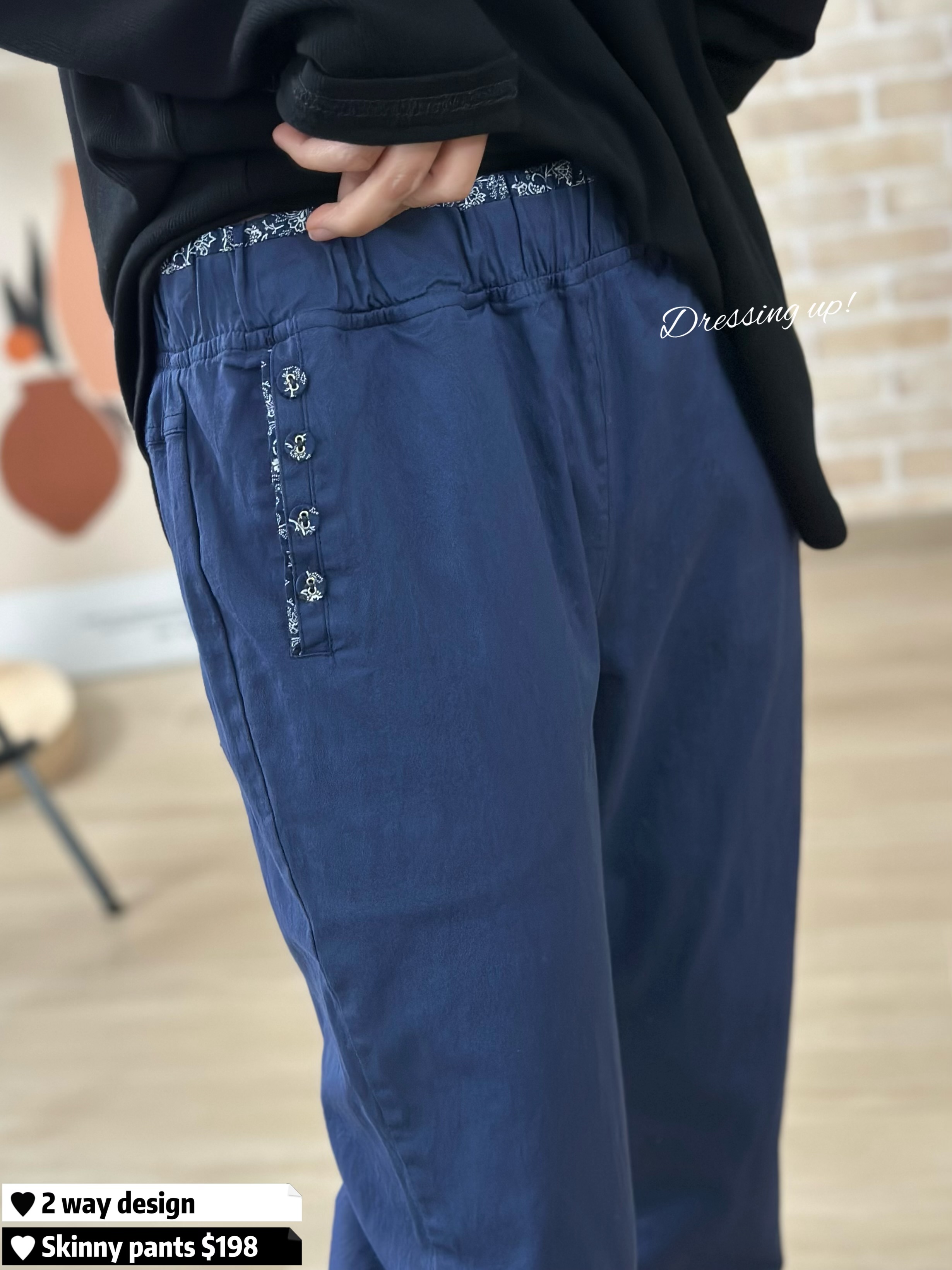 #𝟐𝐰𝐚𝐲𝐏𝐚𝐧𝐭𝐬 ✌🏻 神級兩著法又來了 😆💬 四季斜布摺腳褲 褲腳內藏日本碎花 兩個著法,摺唔摺都好睇喎 👍🏻 全橡筋腰、不限身型、有肉地可穿 藍色醒目、黑色百搭 一年四季都著得 😍 入定兩色啦喂! 🆕 神級兩著法|四季斜布摺腳褲 🆕 橡筋腰28-38吋/Hip38-44吋/長85cm