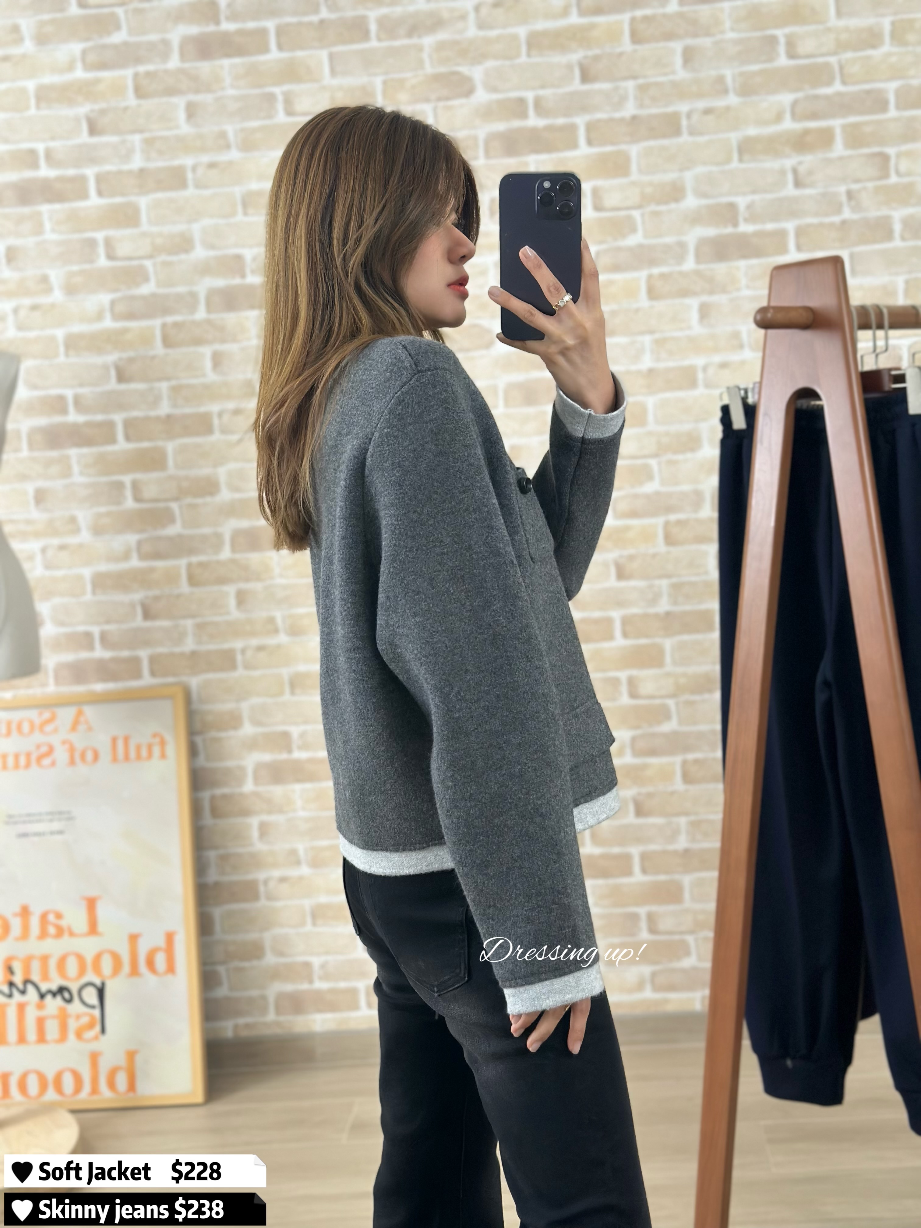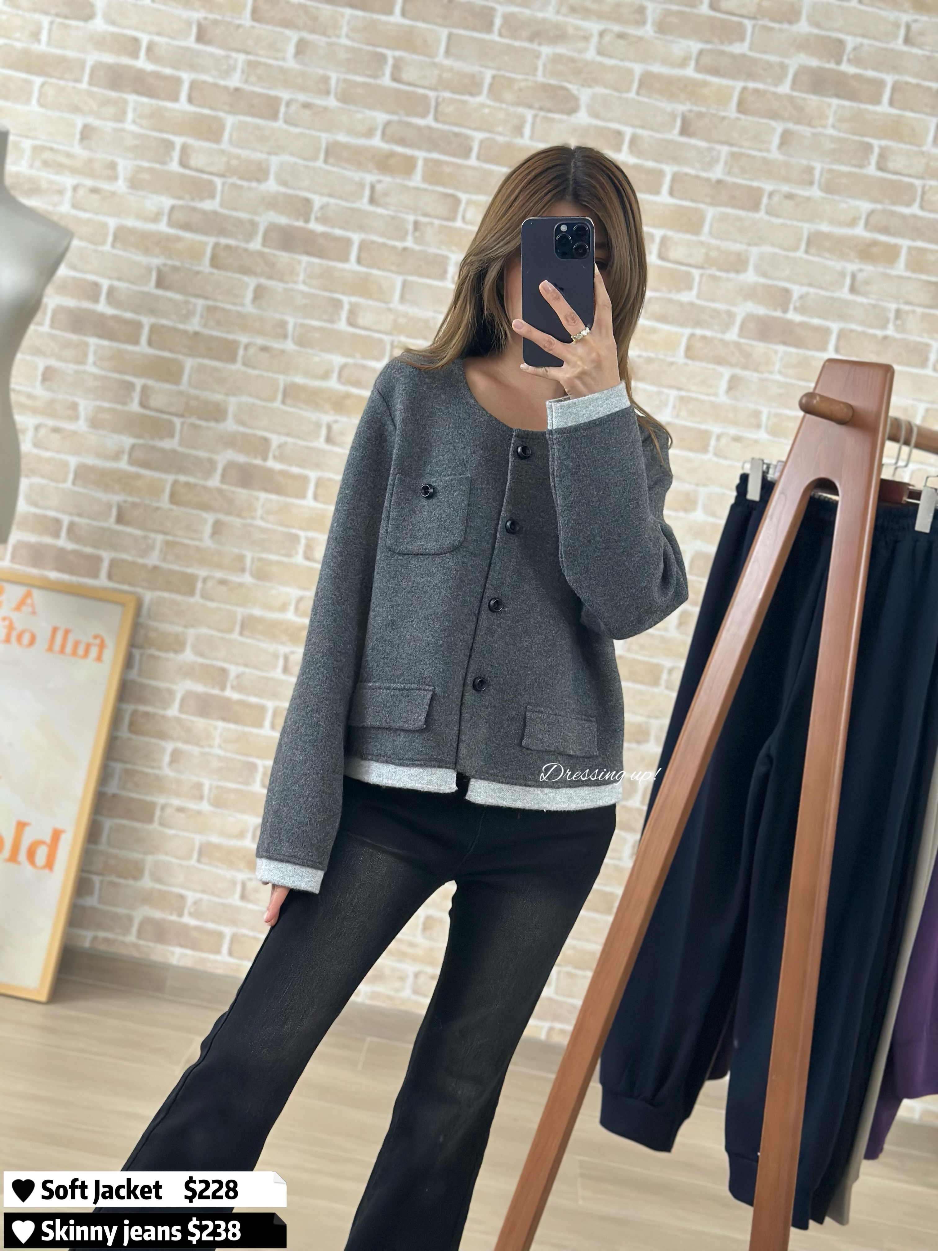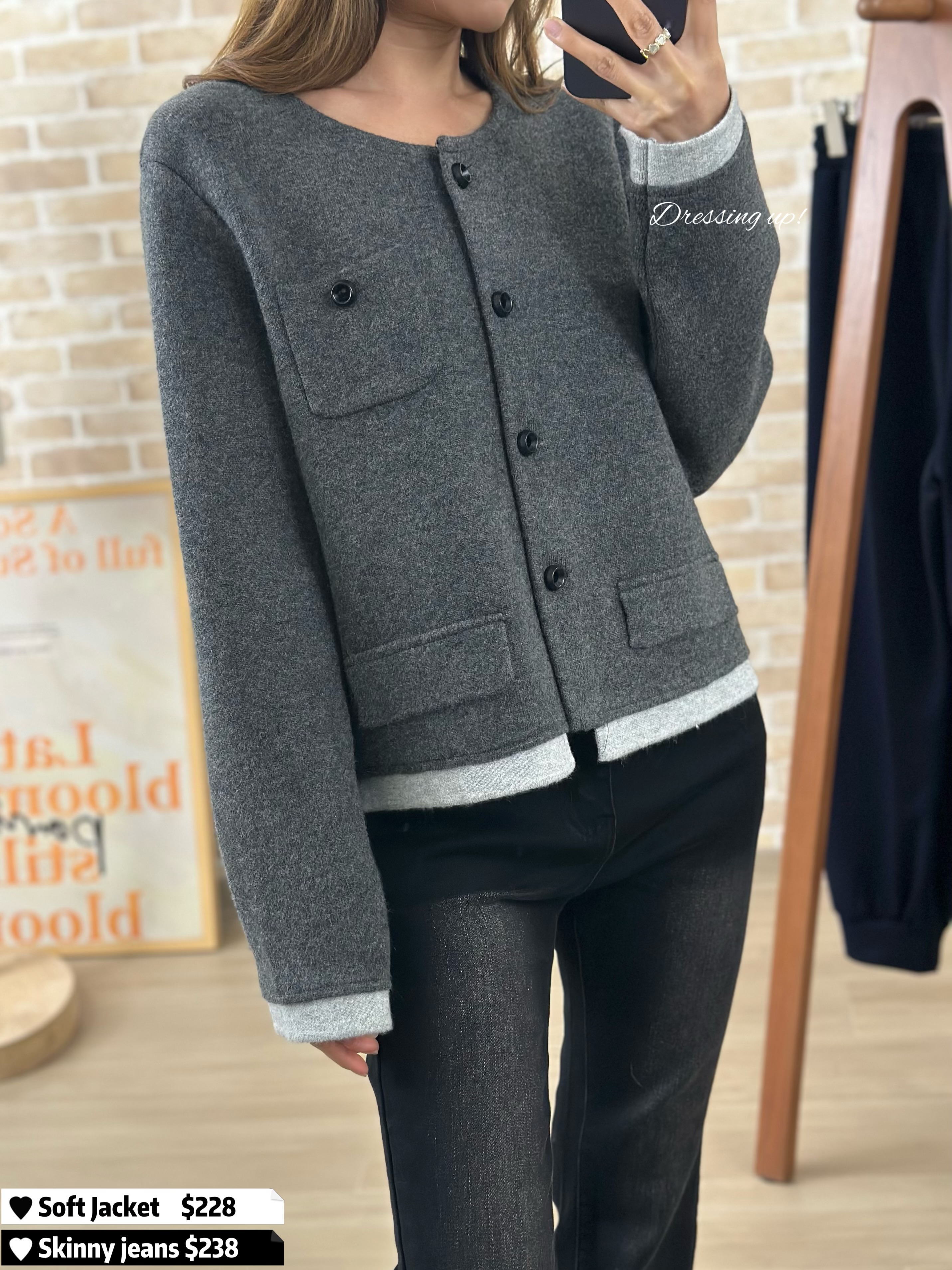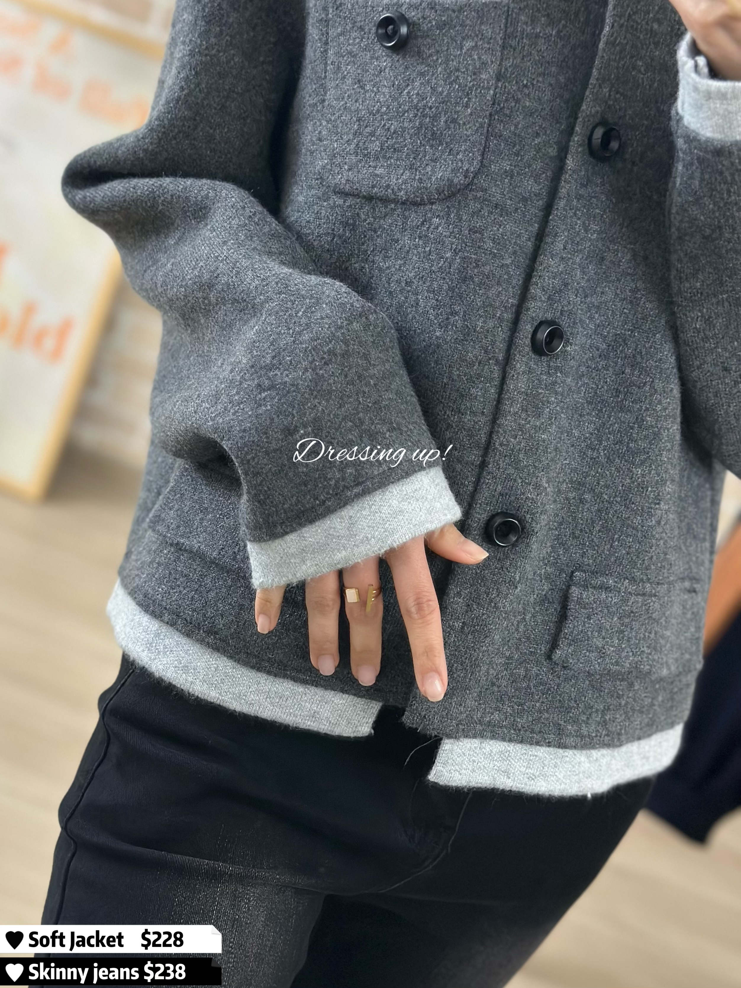 #穿上即高貴 💍 返工、見客、拍拖、食飯 絕不失禮 💕💕💕 極滑軟冷外套 深淺灰撞色,矜貴高級 摸上手勁滑!質地勁勁勁靚囉! 剪裁顯瘦又有女人味 ~ 穿上即高貴 🥰🥂 🆕 穿上即高貴|極滑軟冷外套 🆕 胸39-43吋/腰39-43吋/長52cm