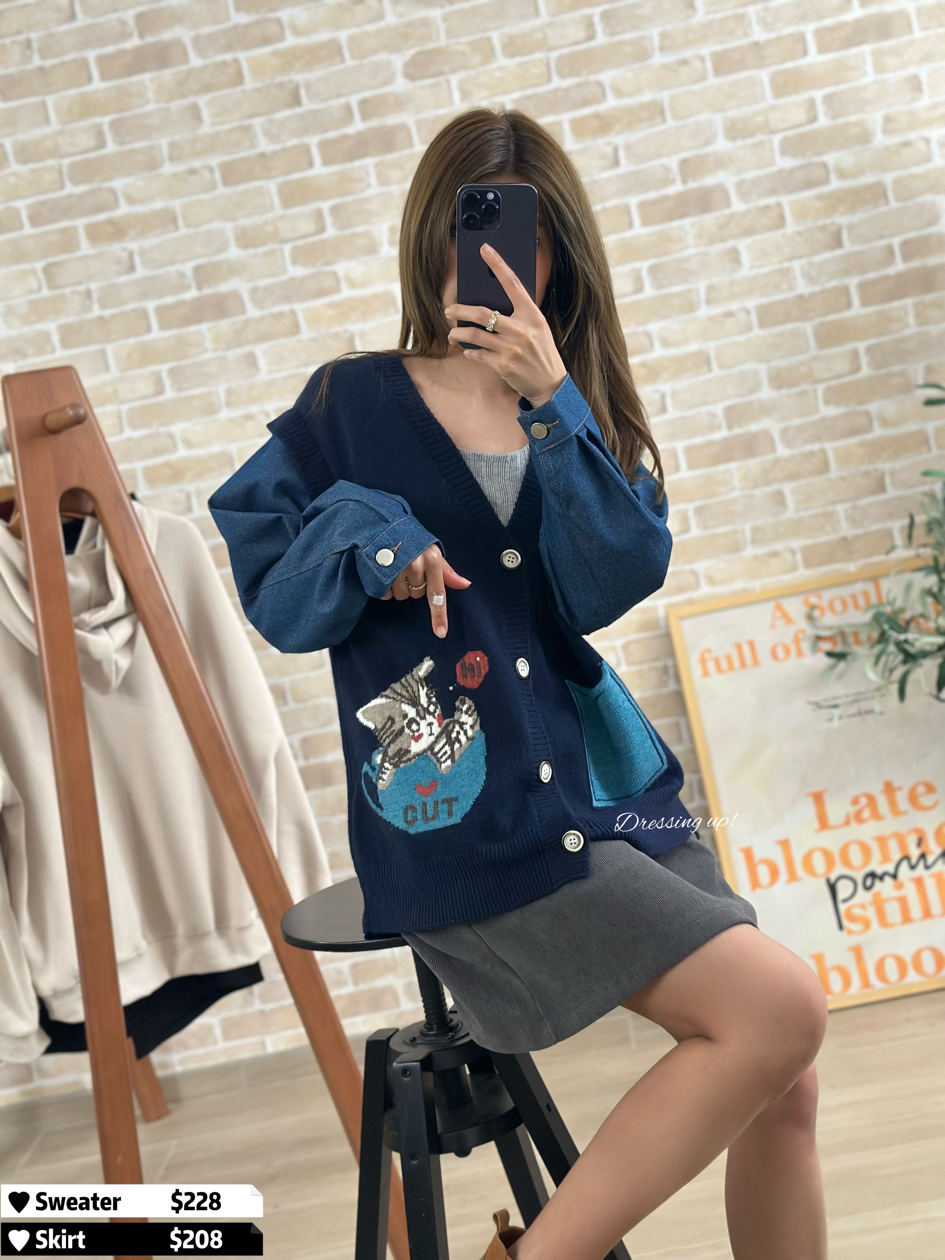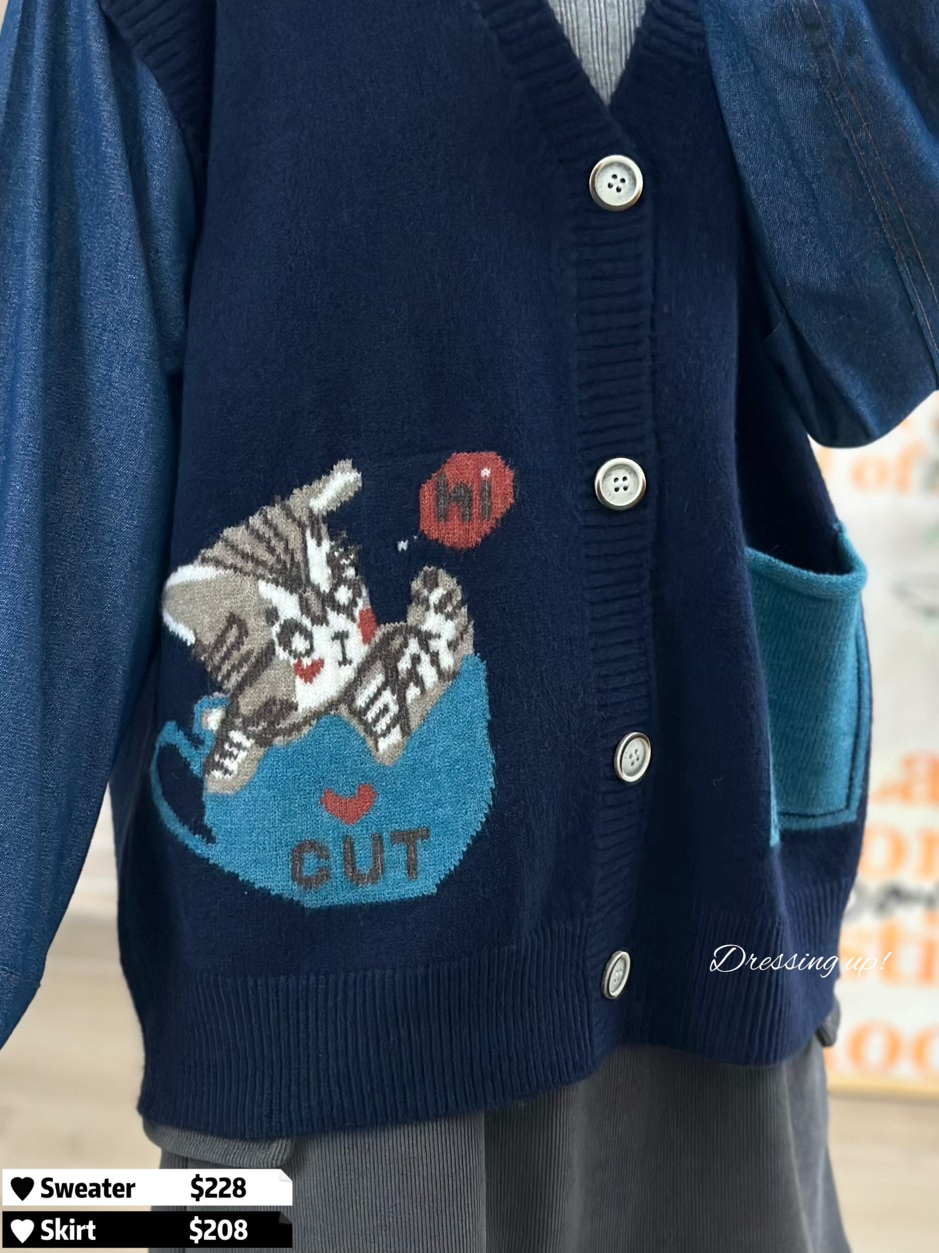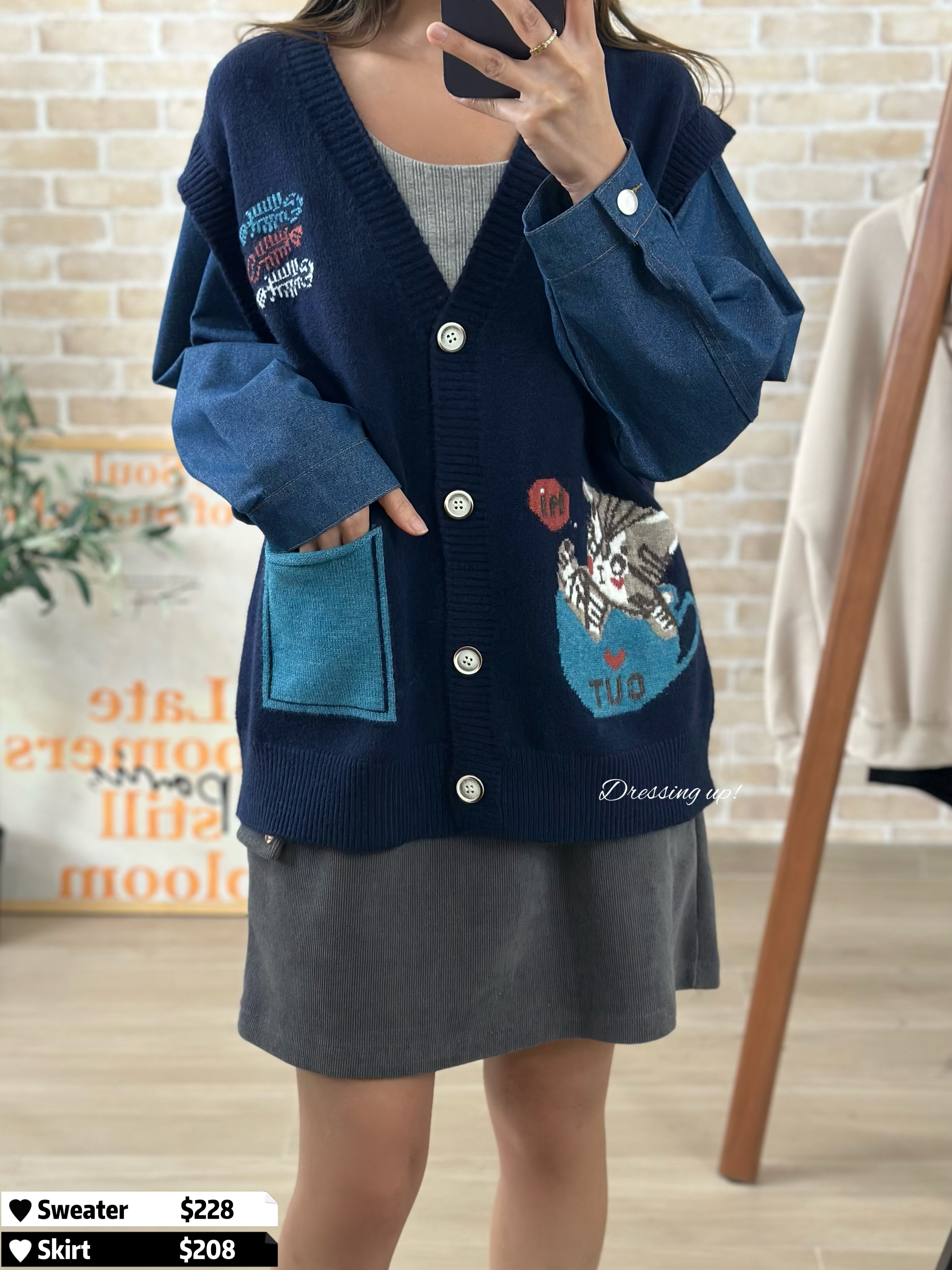 #貓出沒注意 😽 好多貓奴都訂咗啦 😆📷 牛仔袖針織外套 一邊織魚骨、一邊織貓貓 實物勁得意喎 😝😝😝 寛鬆版型,質地勁柔軟 全件有彈性,夠長遮𝐇𝐢𝐩位 呢啲款真係勁少出!#錯過買唔返 🆕 貓出沒注意|牛仔袖針織冷衫 🆕 胸42-52吋/腰40-50吋/長61cm