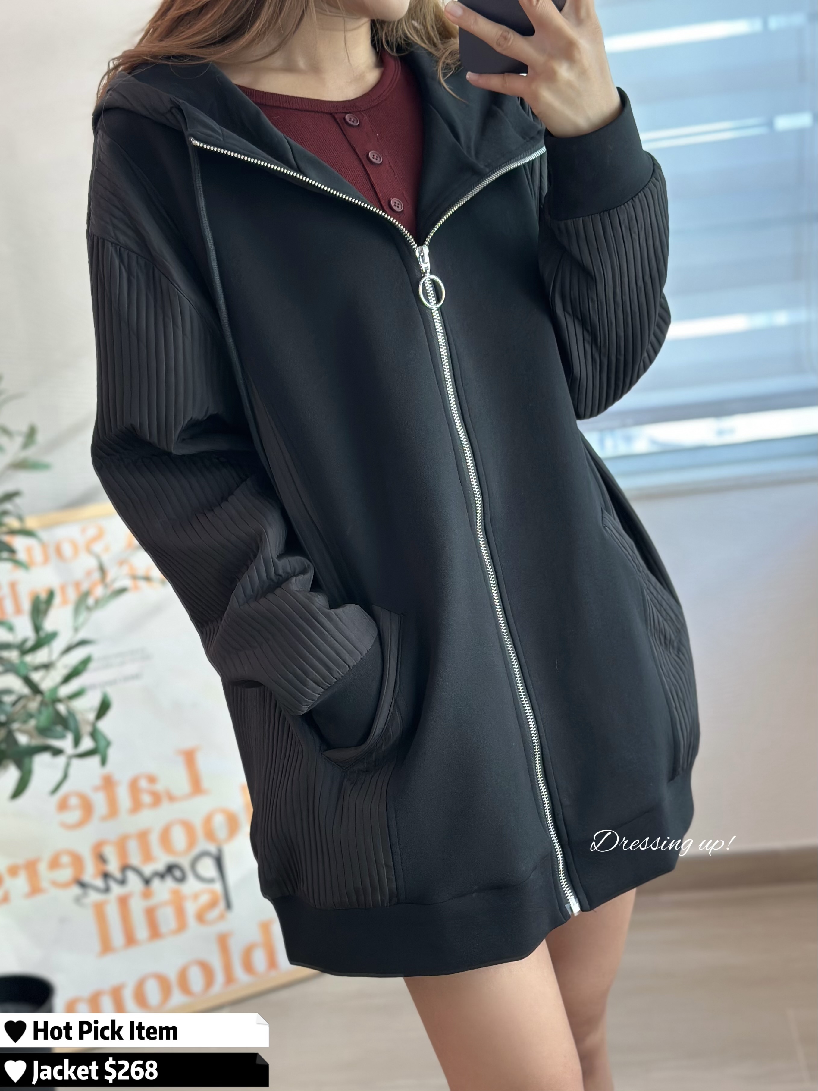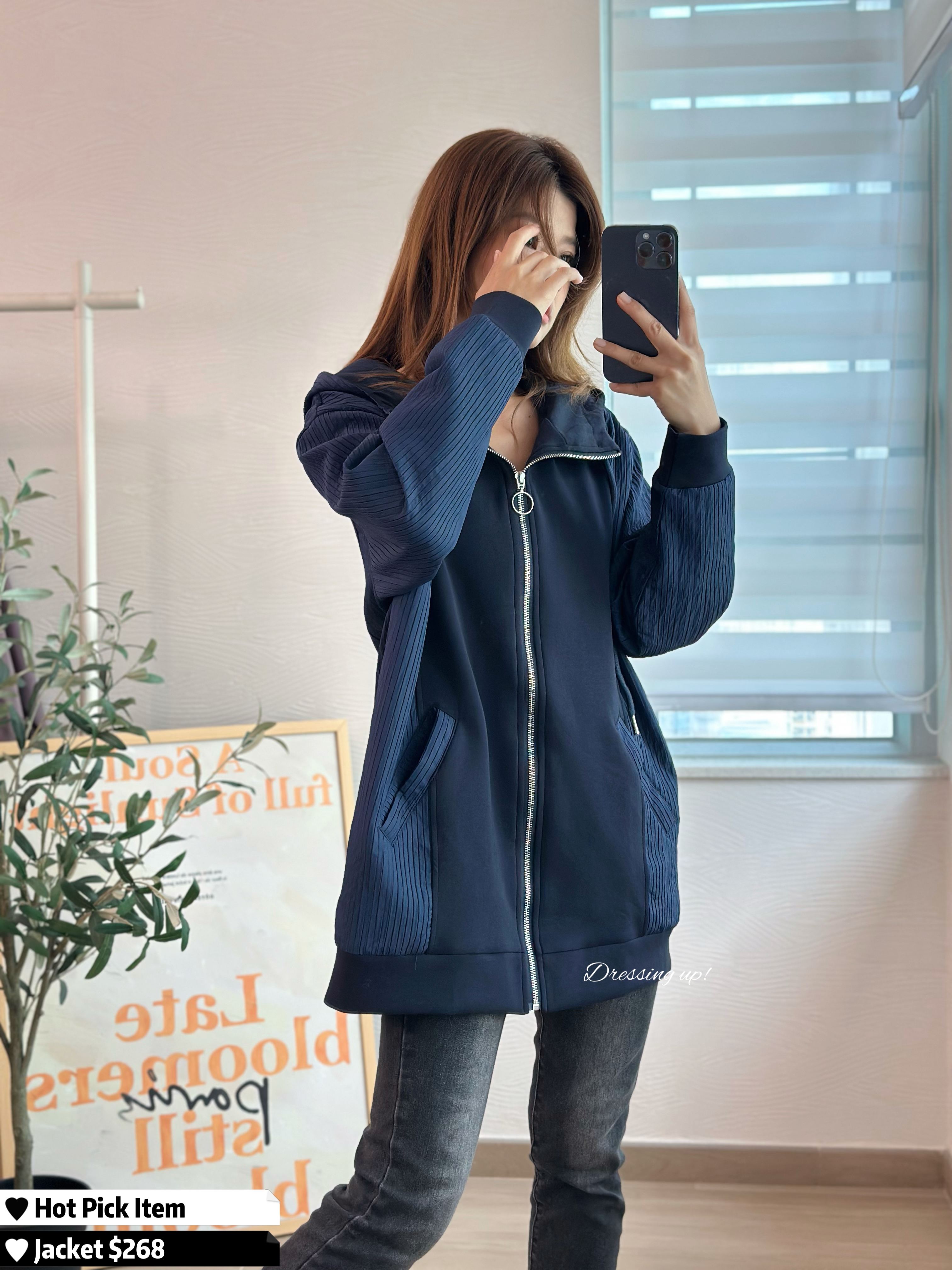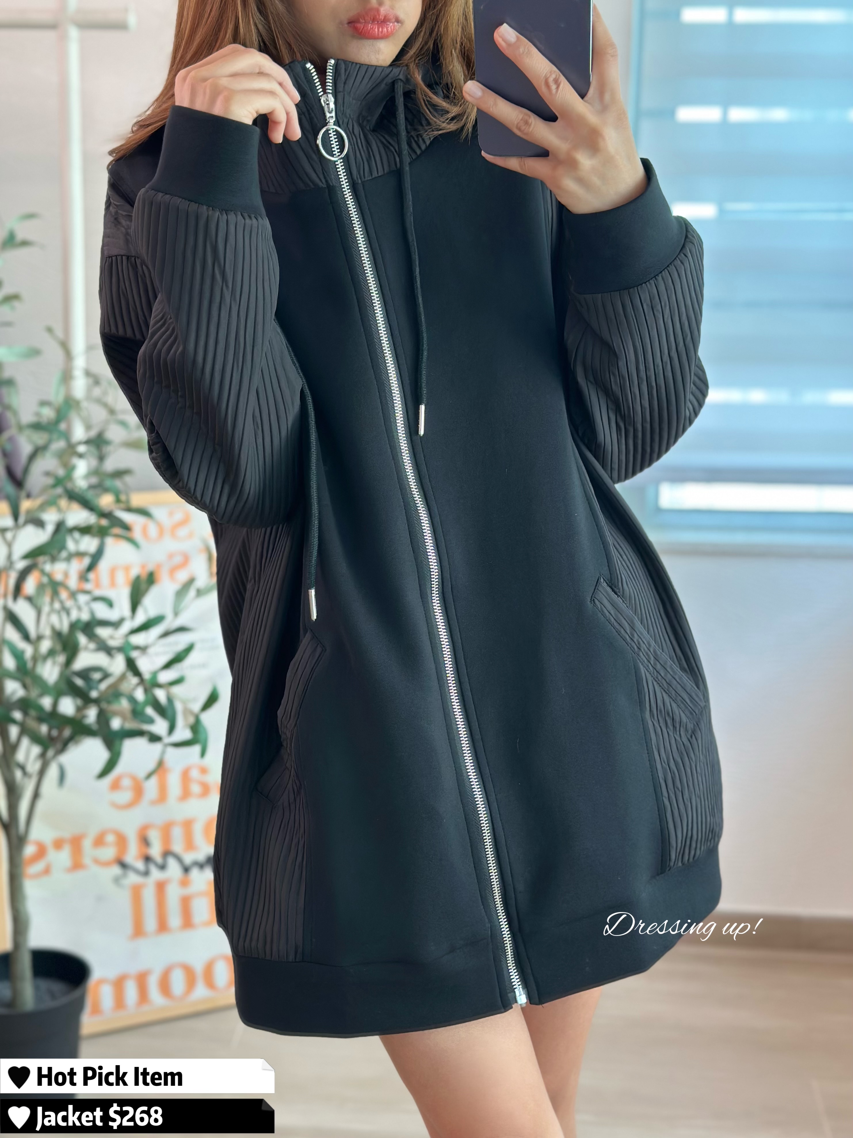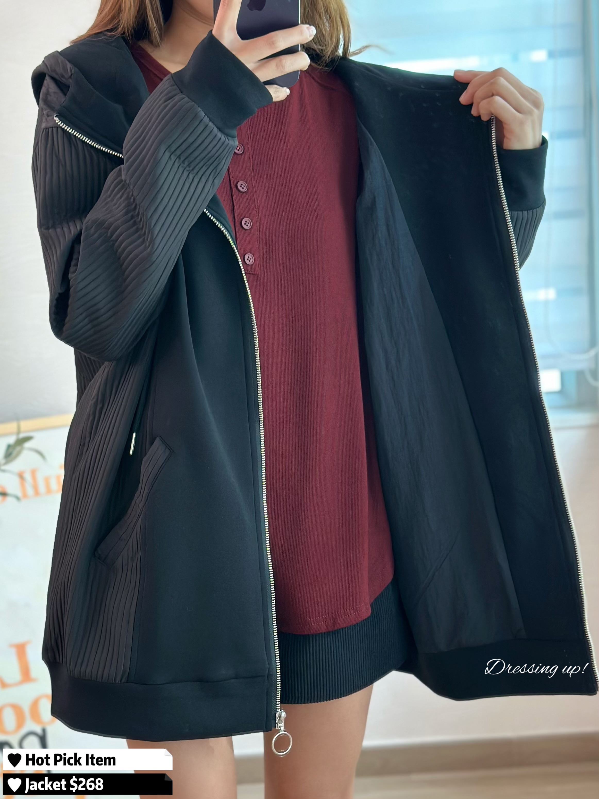 #高質太空棉 🥇 好高質 😍 好高質 😍 簡約有型!太空棉拉鍊外套 拼接壓褶手袖 隨便𝐇𝐞𝐚襯已經好有款! 拉鍊可拉做高領、兩側有褸袋 版型挺身易𝐂𝐚𝐫𝐫𝐲 👌🏻🥰 做哂里布,手工超好!#不買後悔 🆕 高質太空棉|壓褶袖有帽外套 🆕 胸46-50吋/ 腰45-50吋/長71cm