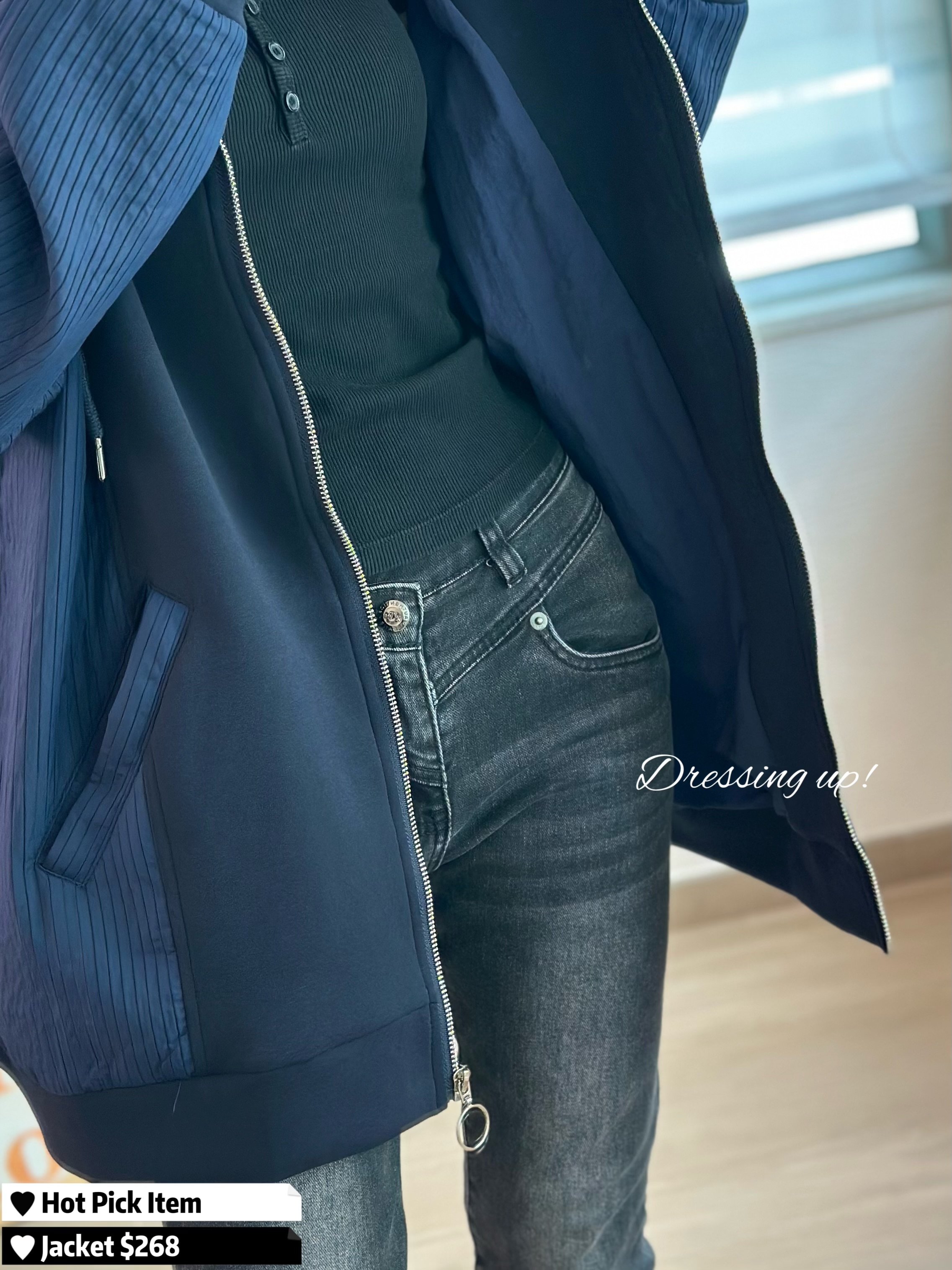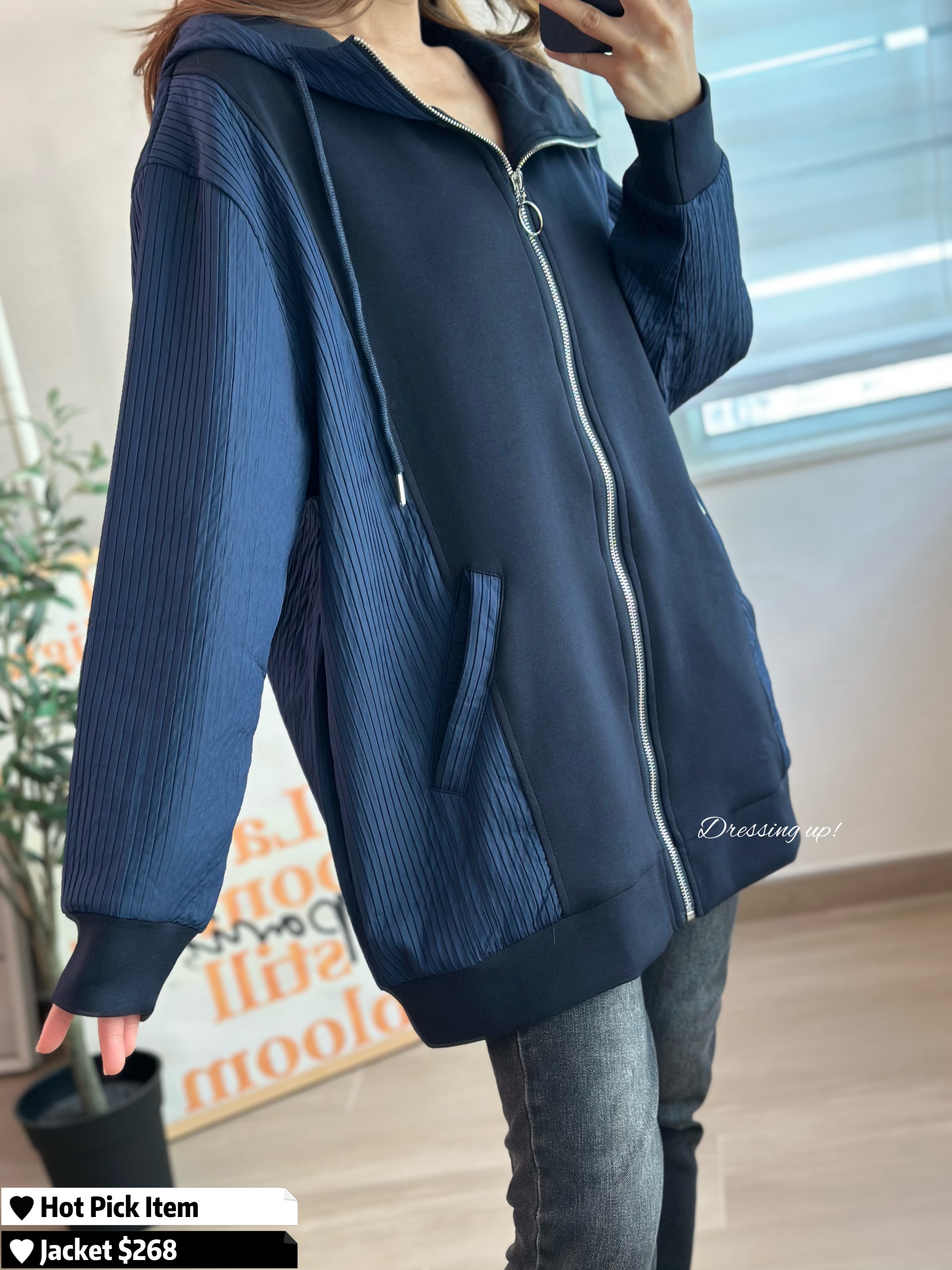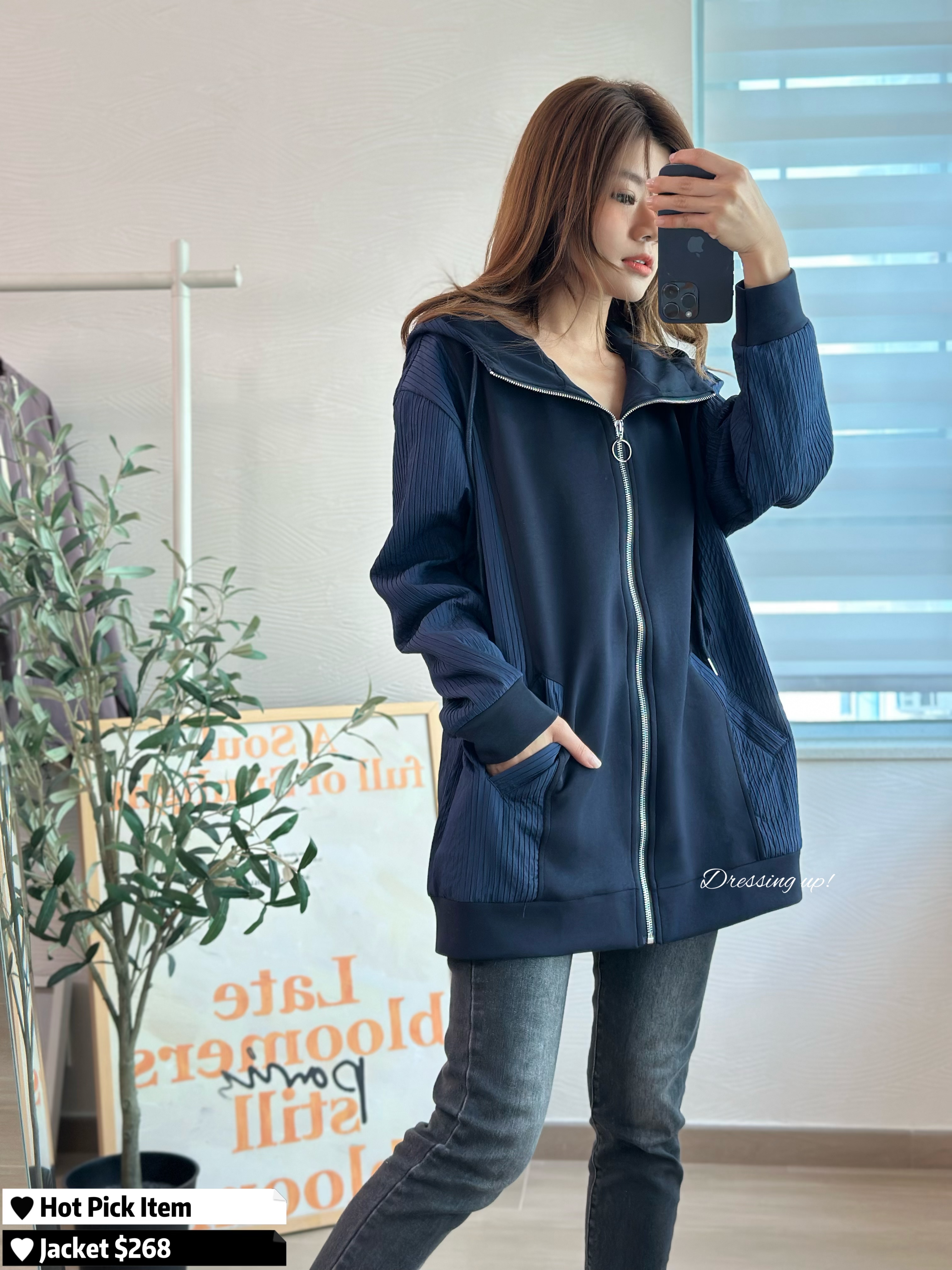 #高質太空棉 🥇 好高質 😍 好高質 😍 簡約有型!太空棉拉鍊外套 拼接壓褶手袖 隨便𝐇𝐞𝐚襯已經好有款! 拉鍊可拉做高領、兩側有褸袋 版型挺身易𝐂𝐚𝐫𝐫𝐲 👌🏻🥰 做哂里布,手工超好!#不買後悔 🆕 高質太空棉|壓褶袖有帽外套 🆕 胸46-50吋/ 腰45-50吋/長71cm