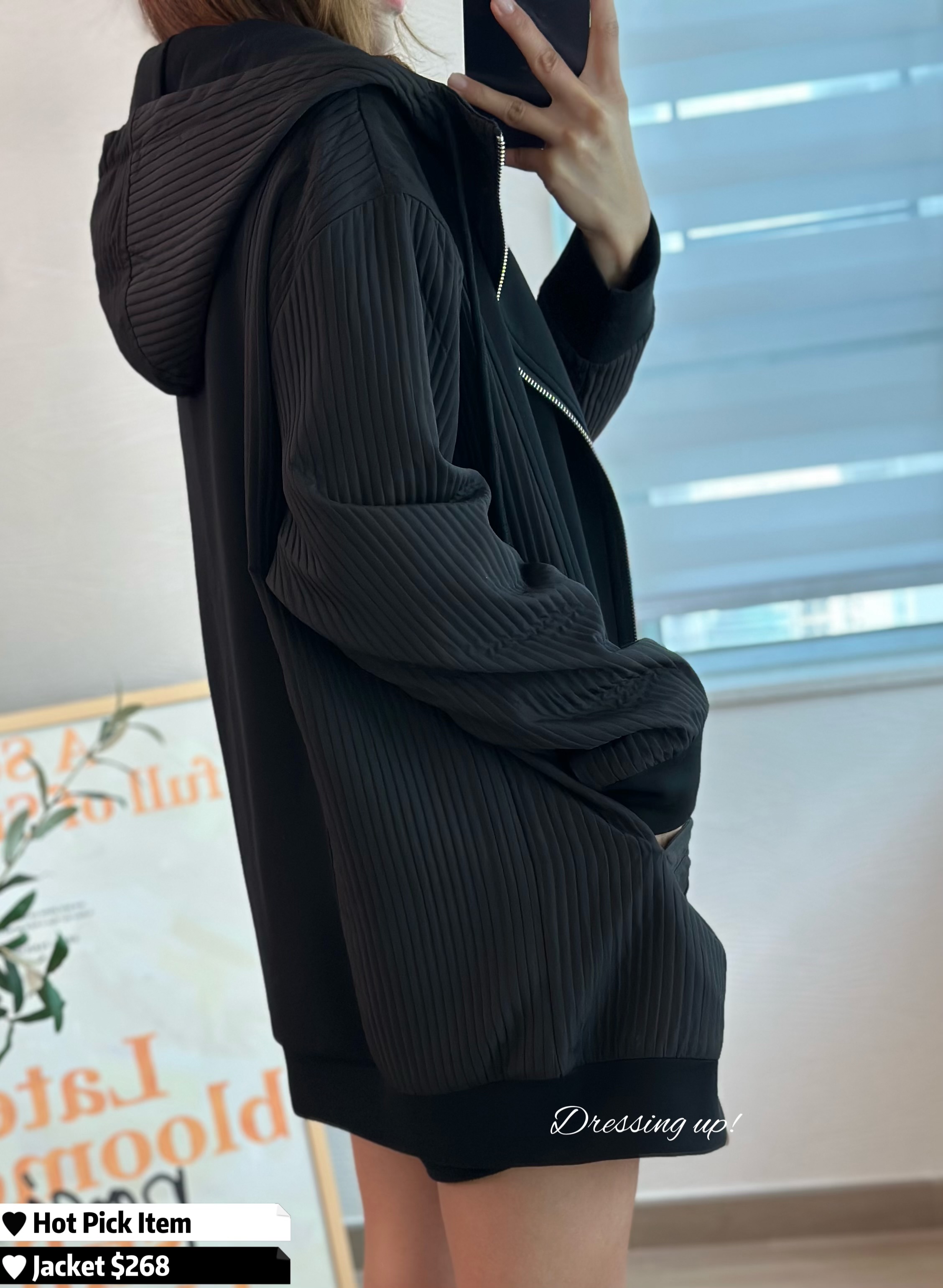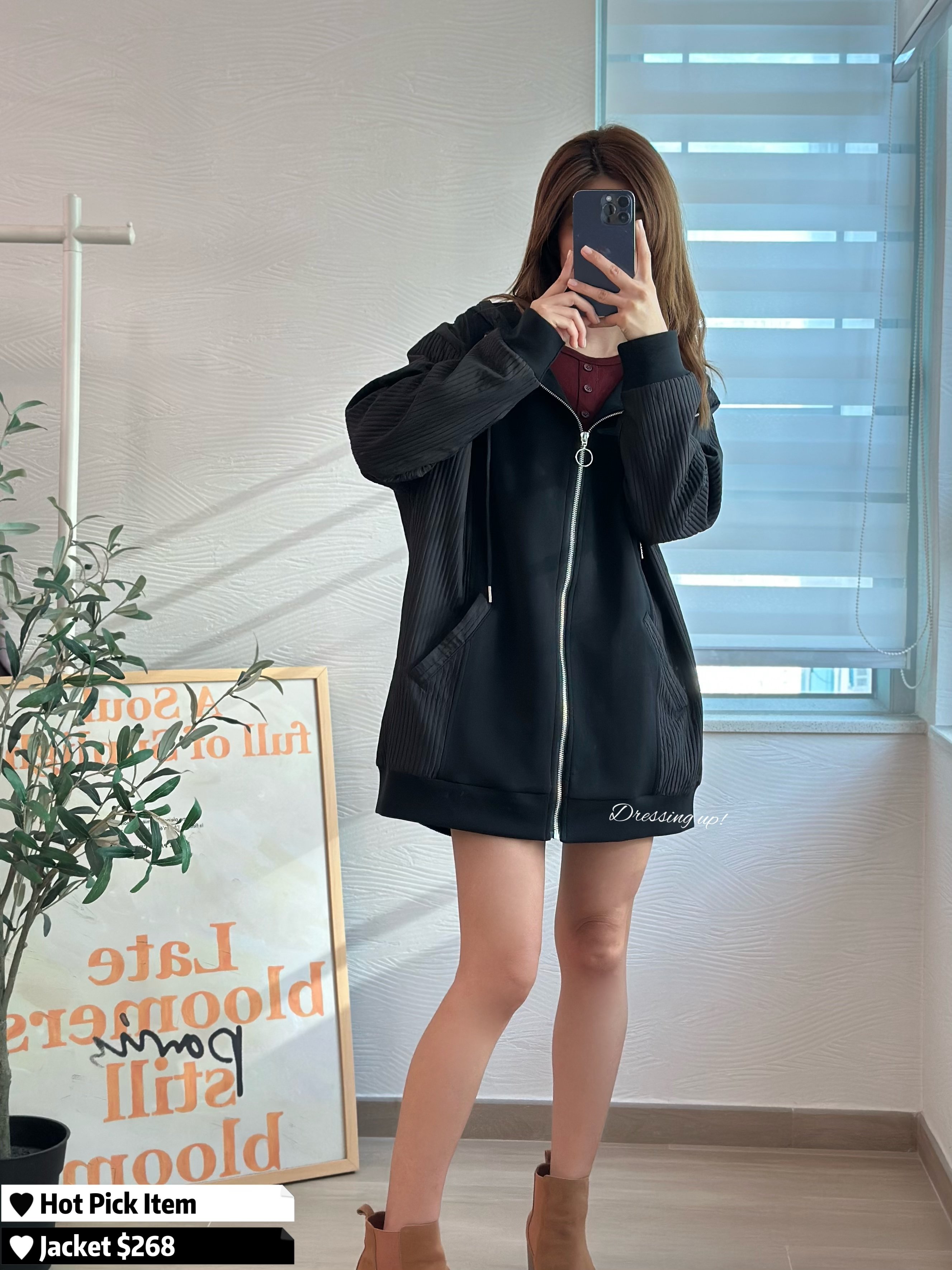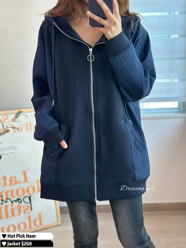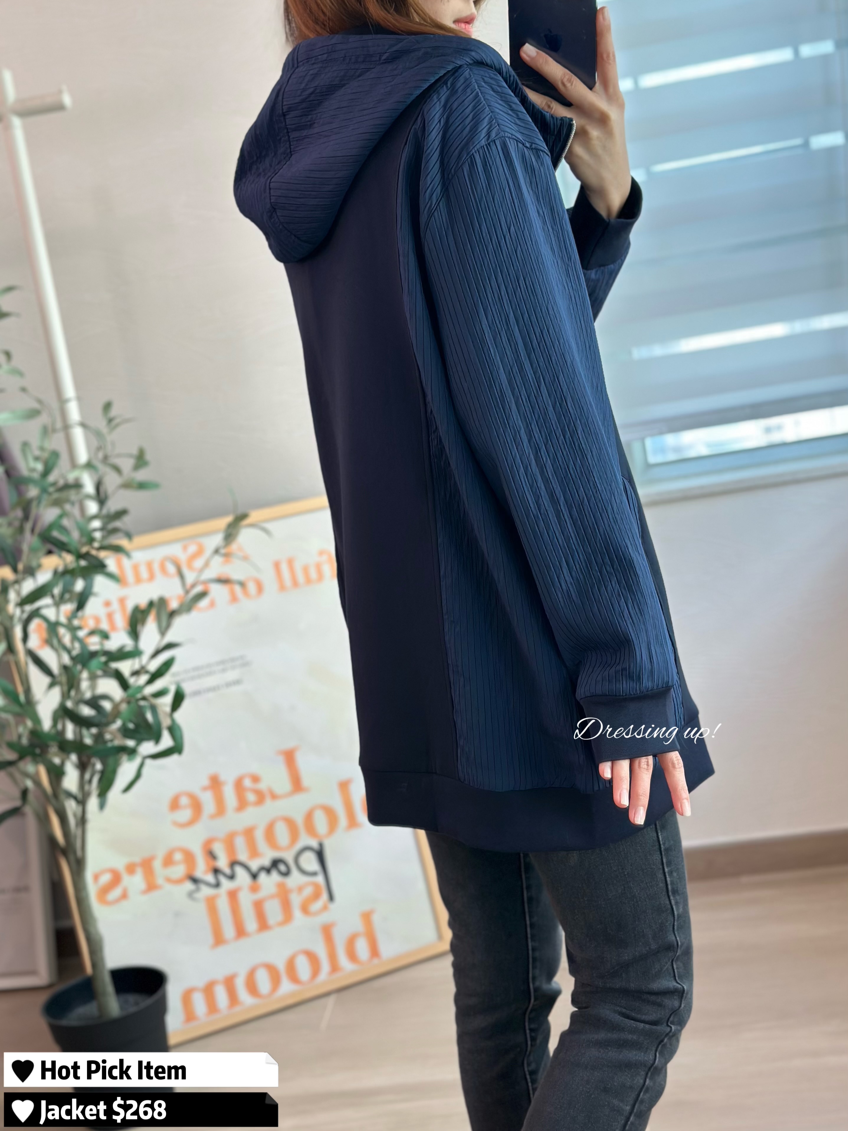 #高質太空棉 🥇 好高質 😍 好高質 😍 簡約有型!太空棉拉鍊外套 拼接壓褶手袖 隨便𝐇𝐞𝐚襯已經好有款! 拉鍊可拉做高領、兩側有褸袋 版型挺身易𝐂𝐚𝐫𝐫𝐲 👌🏻🥰 做哂里布,手工超好!#不買後悔 🆕 高質太空棉|壓褶袖有帽外套 🆕 胸46-50吋/ 腰45-50吋/長71cm