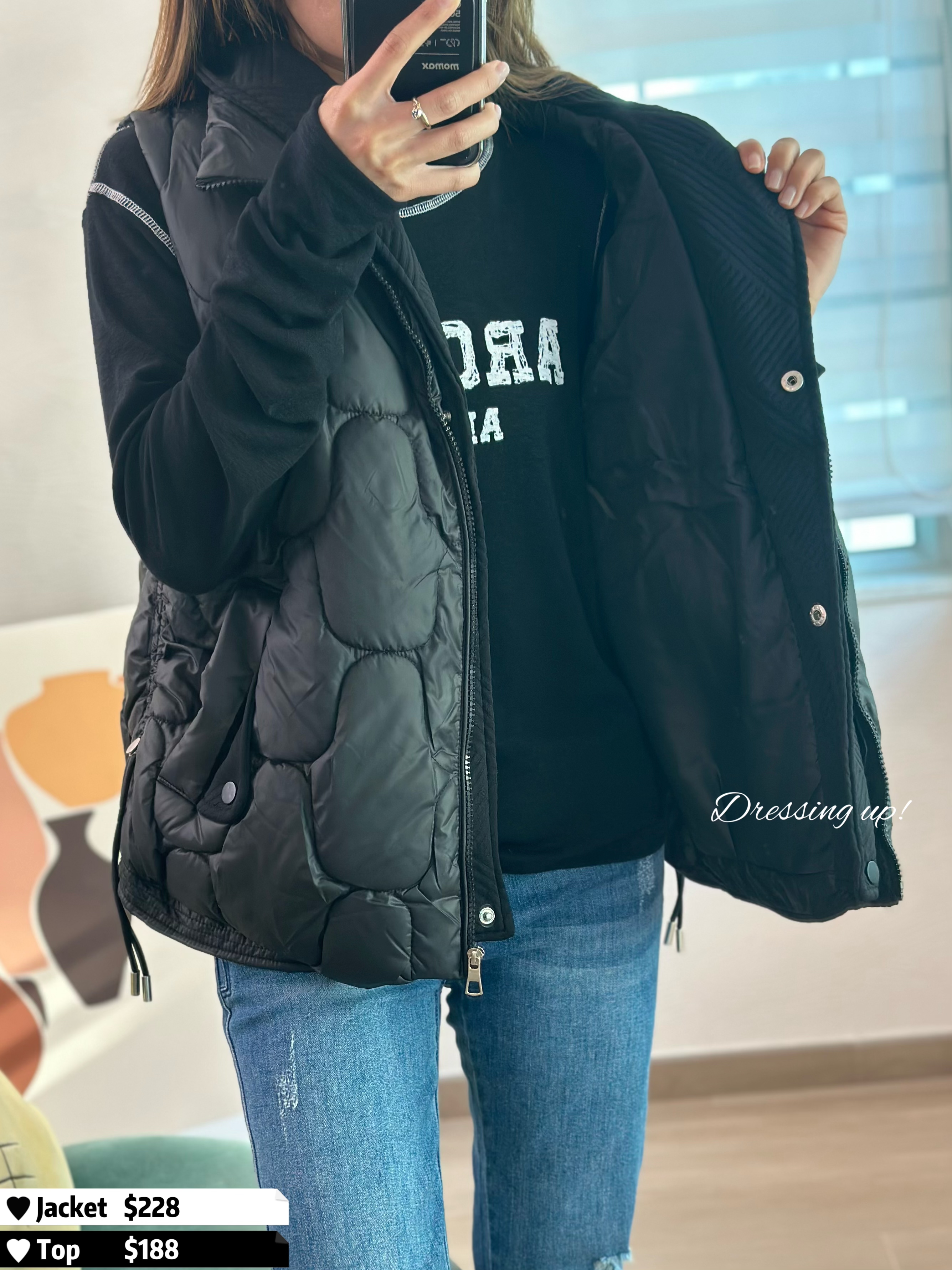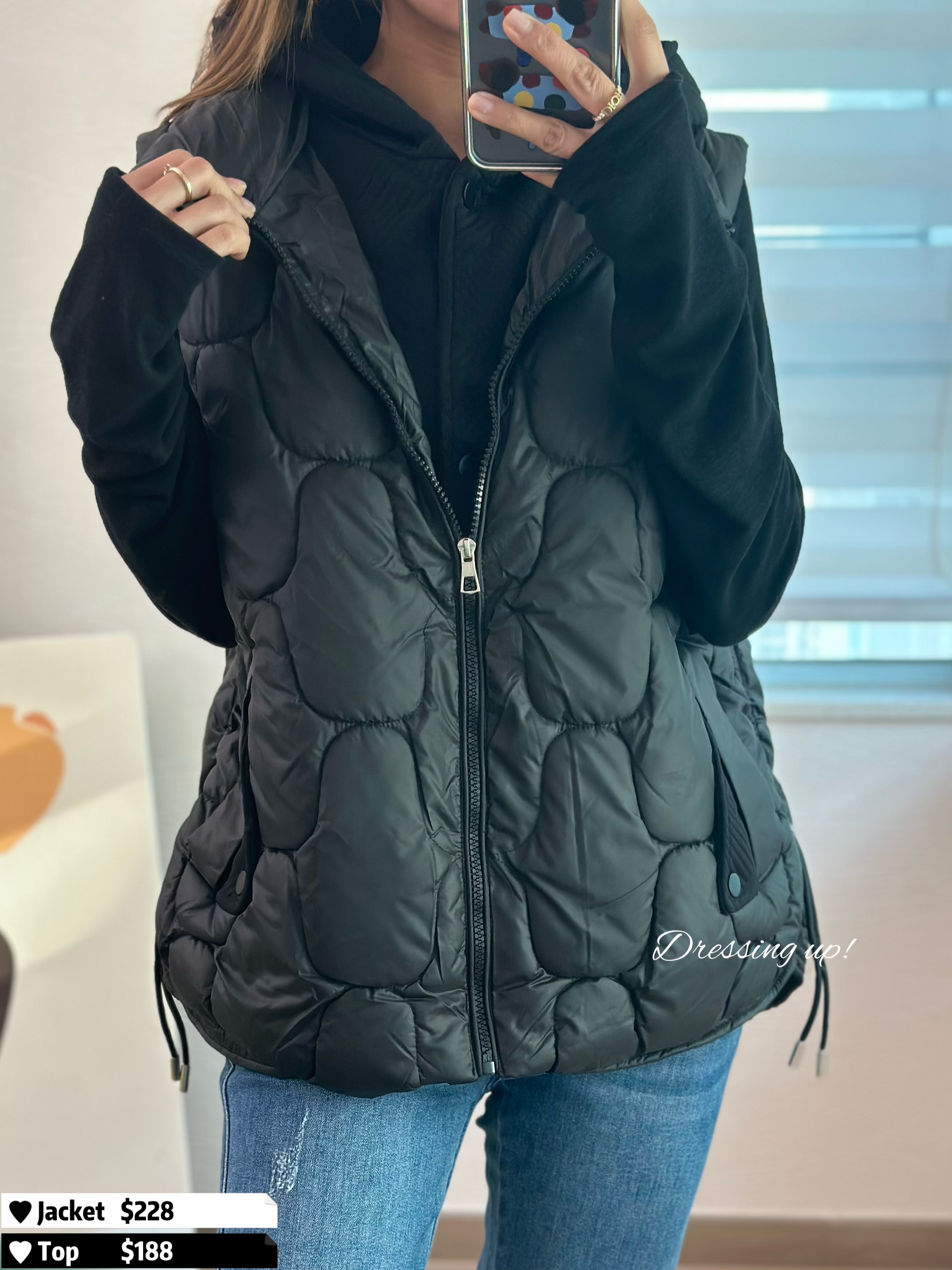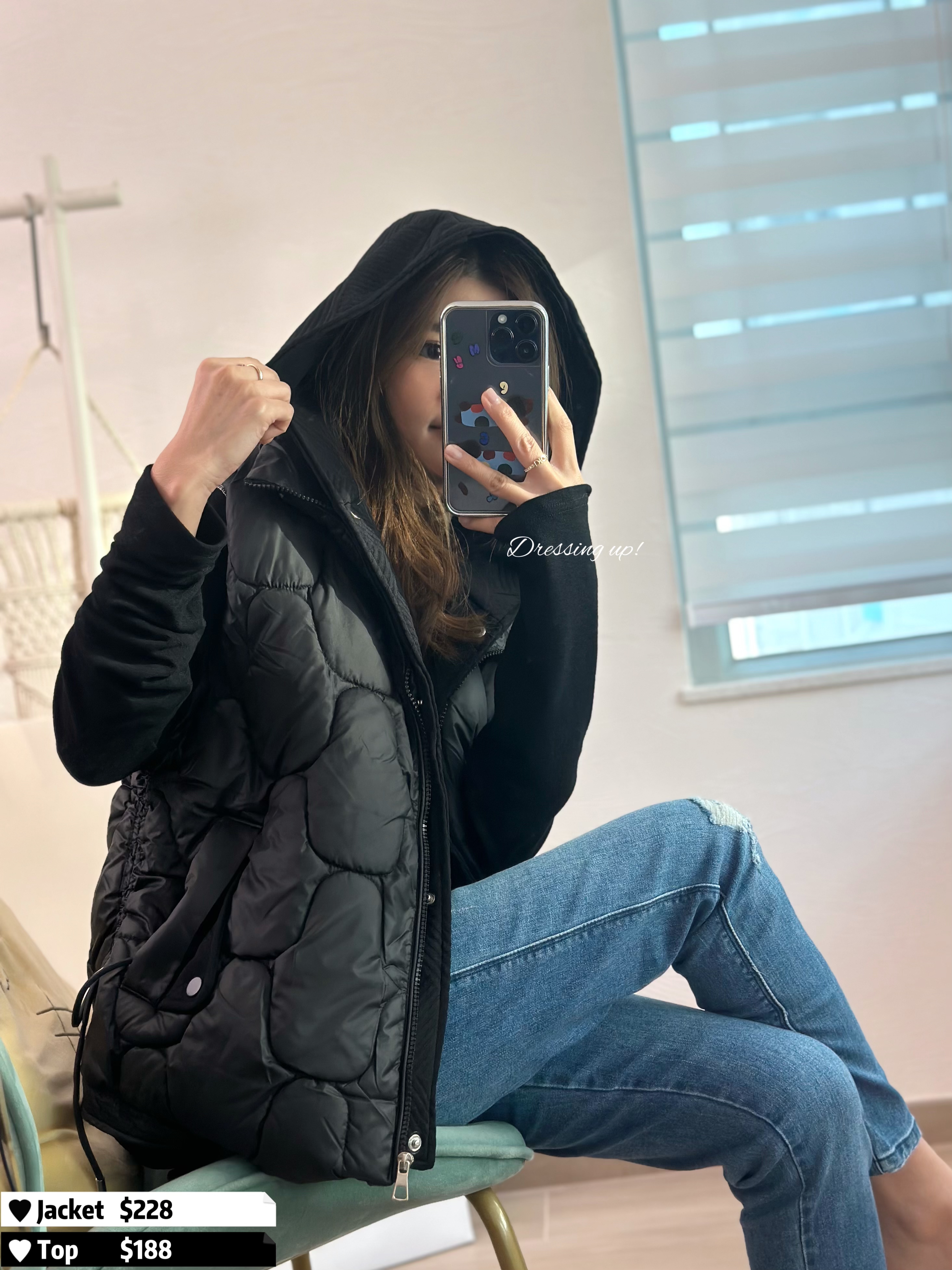 #不單調夾棉 👈🏻 又有型仔背心褸嘞 😍👄 假兩件雙層拼接 橢圓形夾棉、拼上壓紋帽仔 夠暖仲好輕身喎 ~~~ 兩側有袋、有型有款有層次 設計別出心裁 😘♥️ 重點:腰位48吋!有肉地要買! 🆕 不單調設計|拼接夾棉背心褸 🆕 胸44吋/腰48吋/長59cm