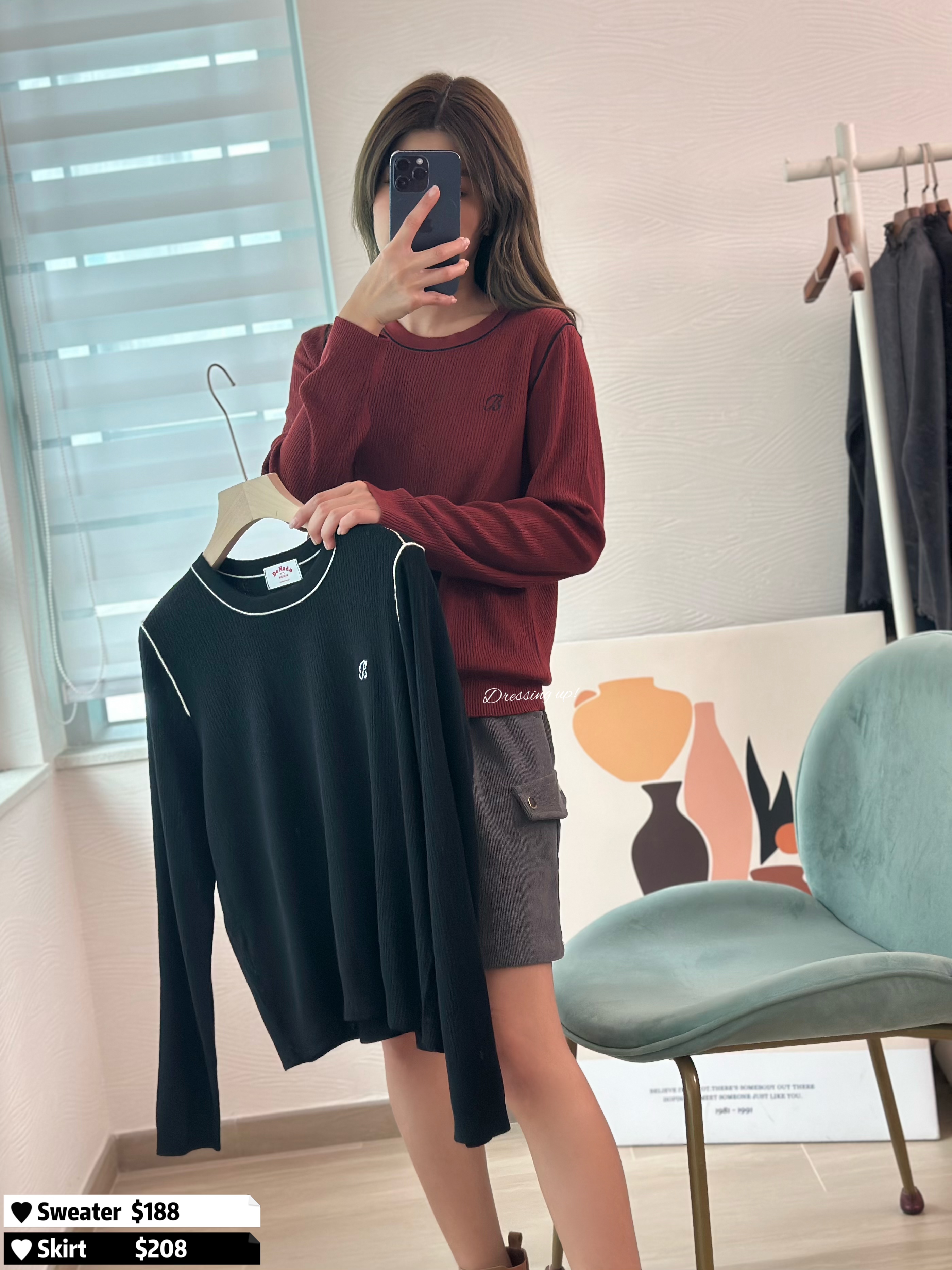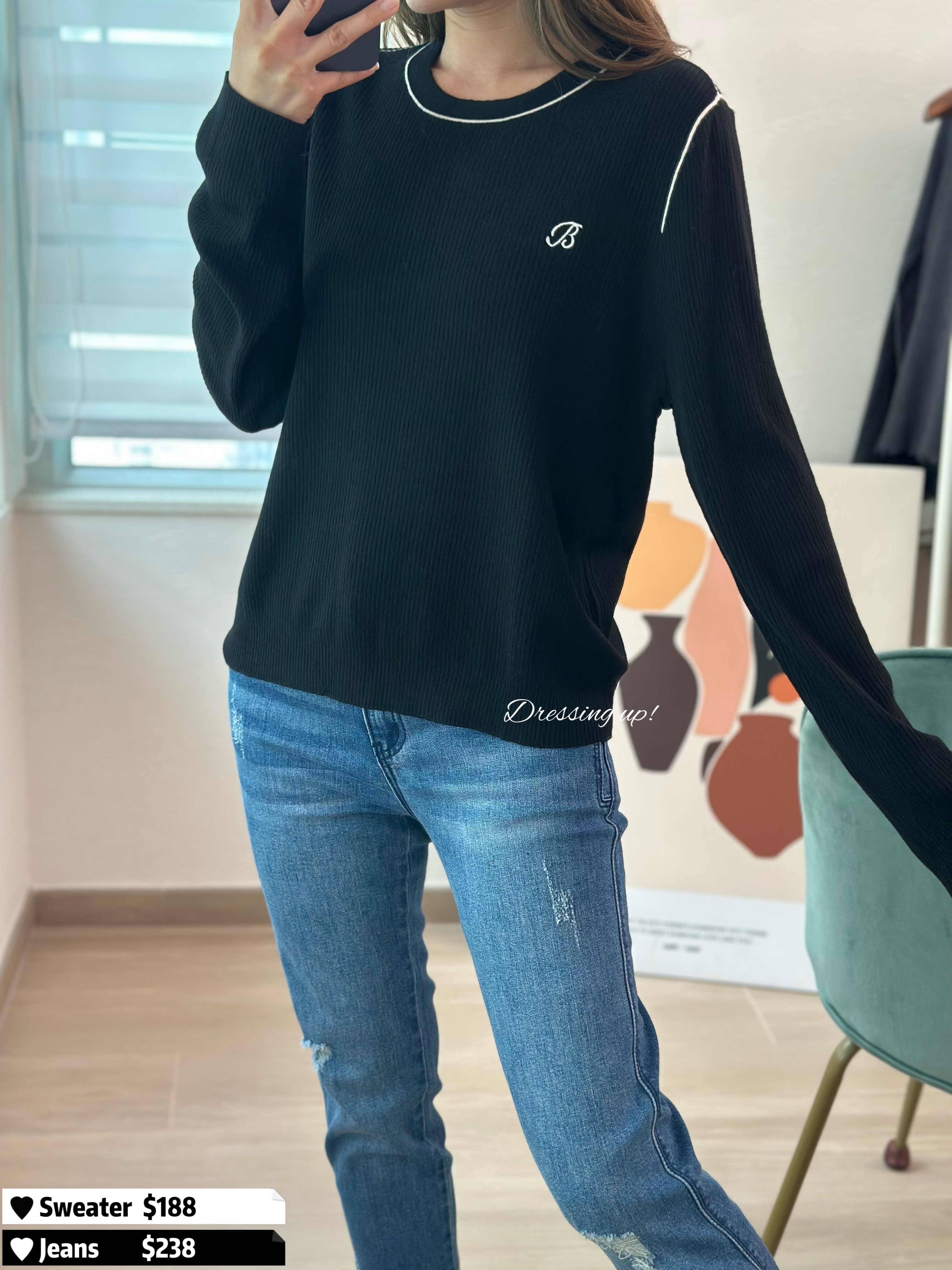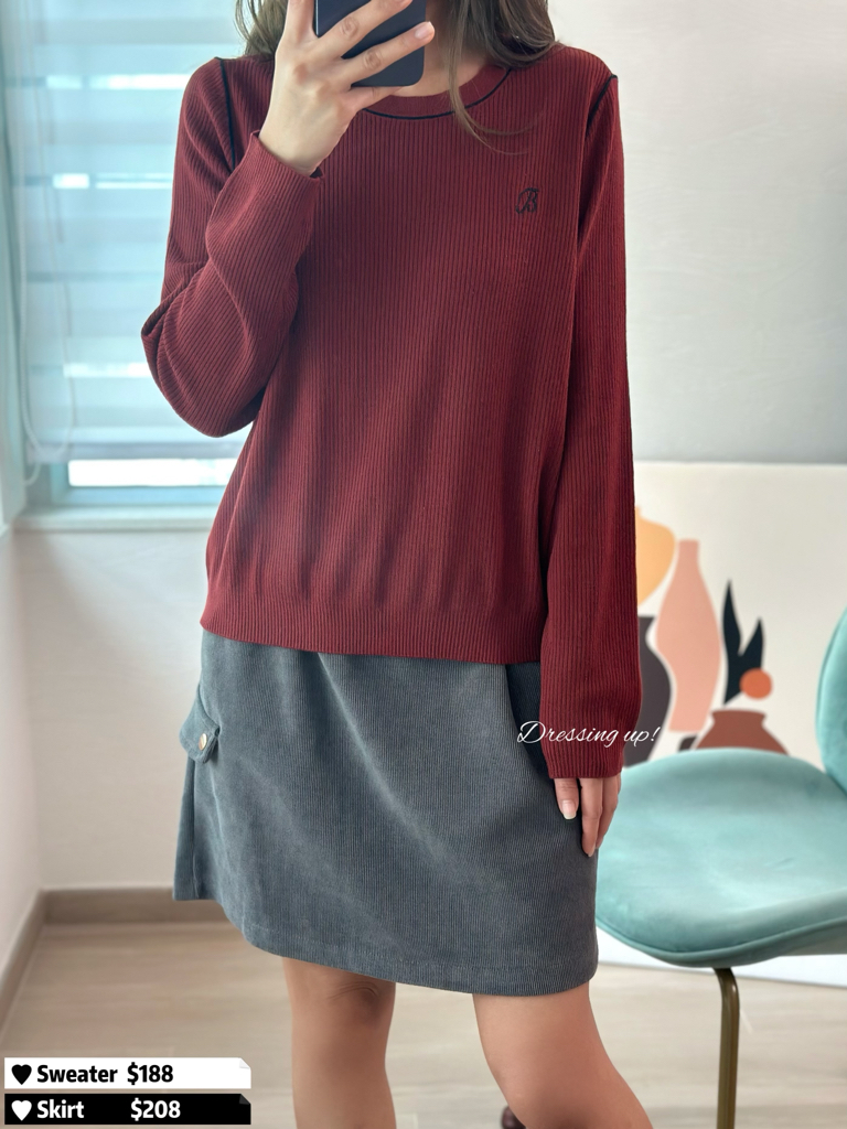 #修身顯瘦 🫶🏻 未出相已經著緊 😌😆 坑紋彈力線衫 繡上B字刺繡 一個楓葉紅、一個百搭黑 剪裁修身又柔軟 輕輕一拉十幾吋彈性 兩個色我都勁鍾意 😚🫶🏻 🆕 修身顯瘦|坑紋彈力線衫 🆕 胸36-48吋/腰32-48吋/長54cm