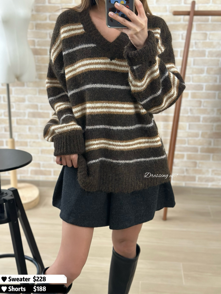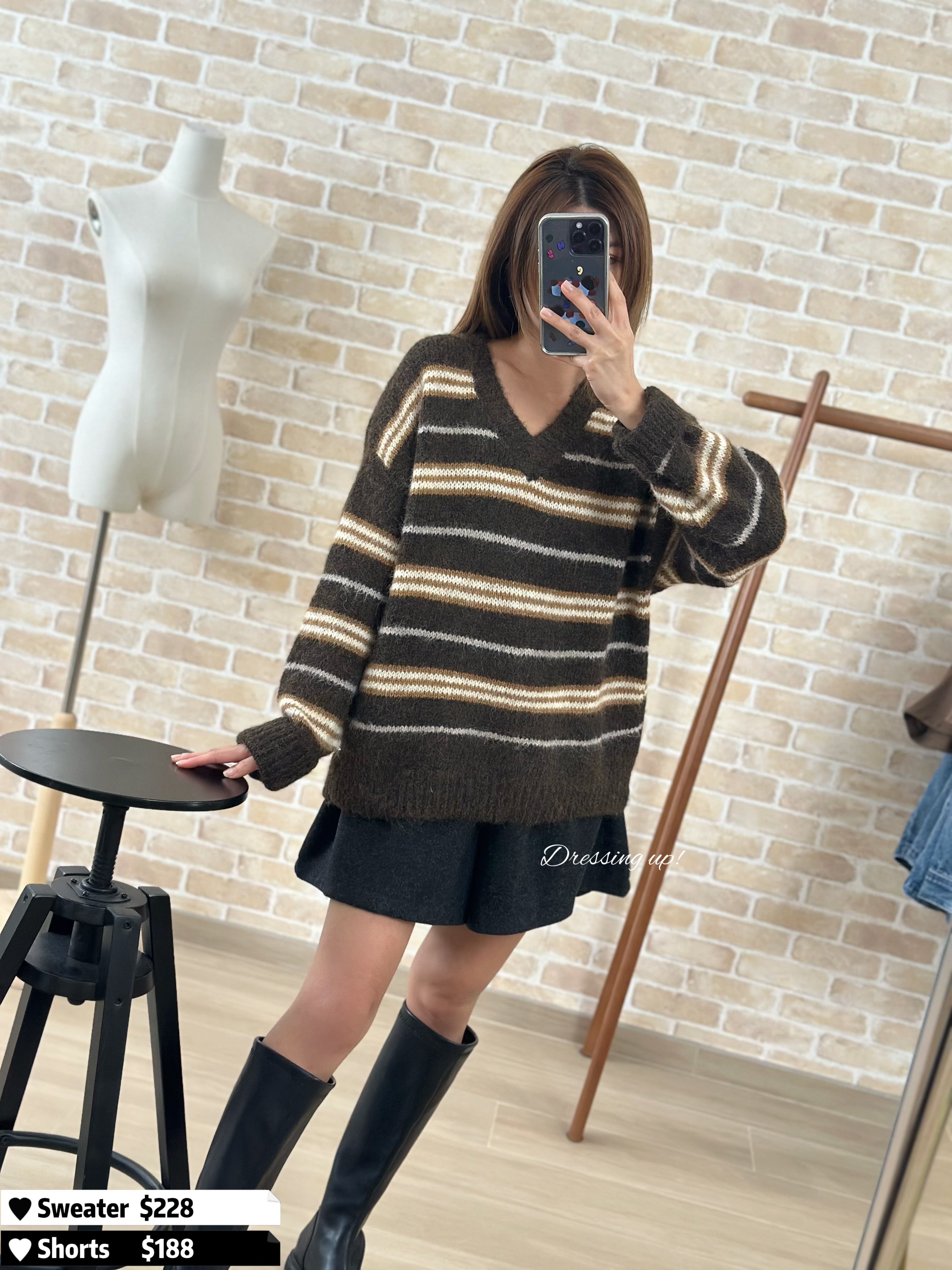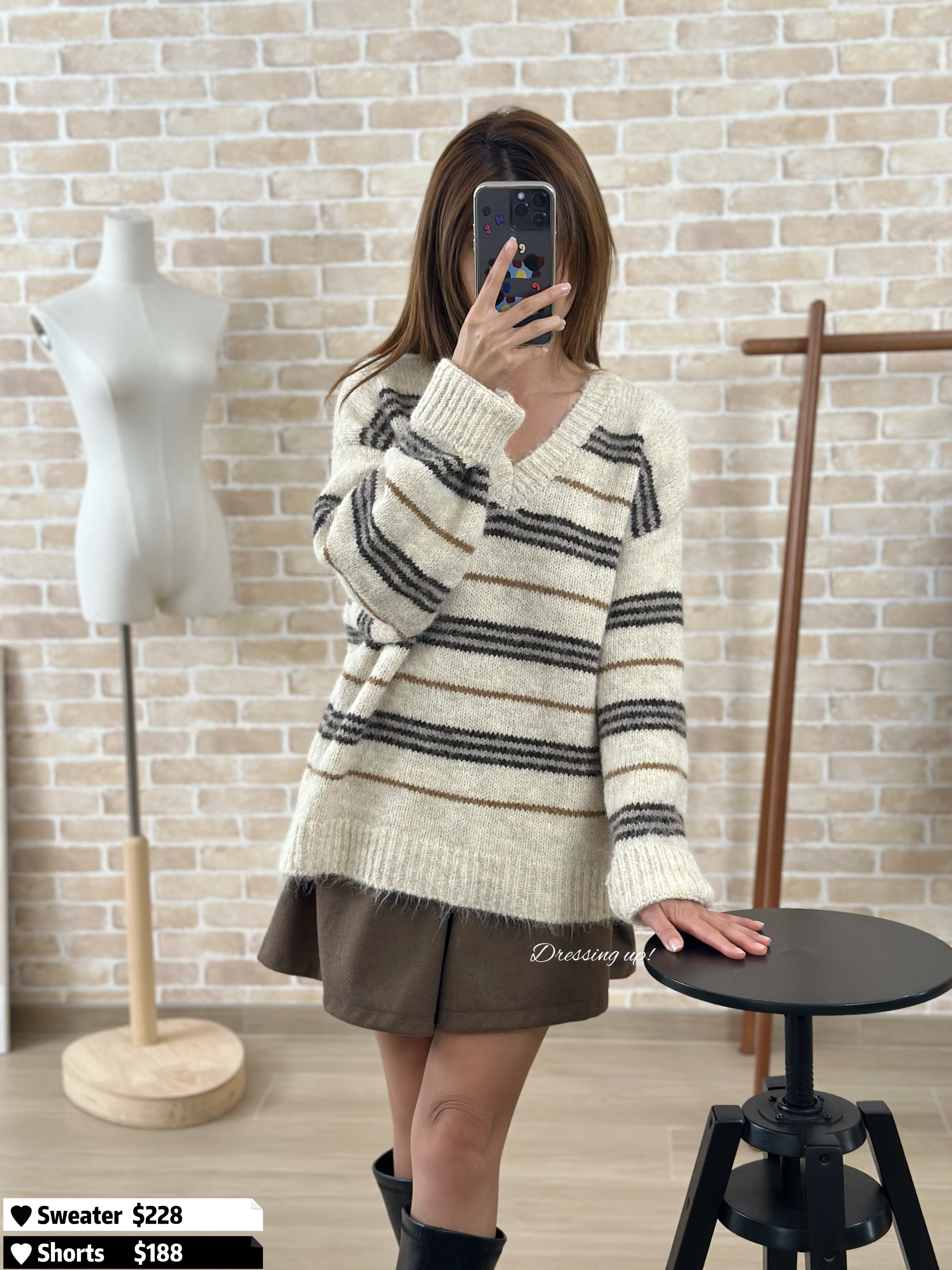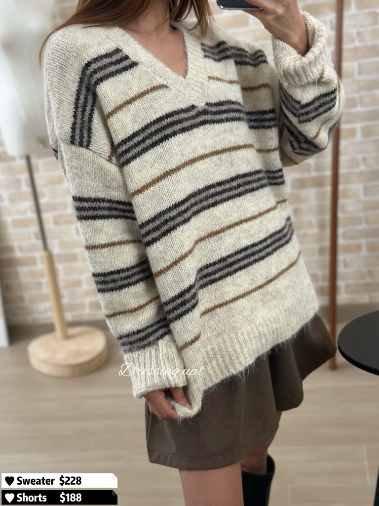 #冬日暖笠笠 💗 慵慵懶懶厚針織 😋😋 極保暖V領軟冷衫 間色條紋、質地柔軟 😍 米色也絕不顯肥~~~ 重點:保暖程度極高,一件搞掂 去旅行影相好靚!! 🆕 冬日暖笠笠|極暖條紋針織 🆕 胸44-54吋/腰40-52吋/長58cm