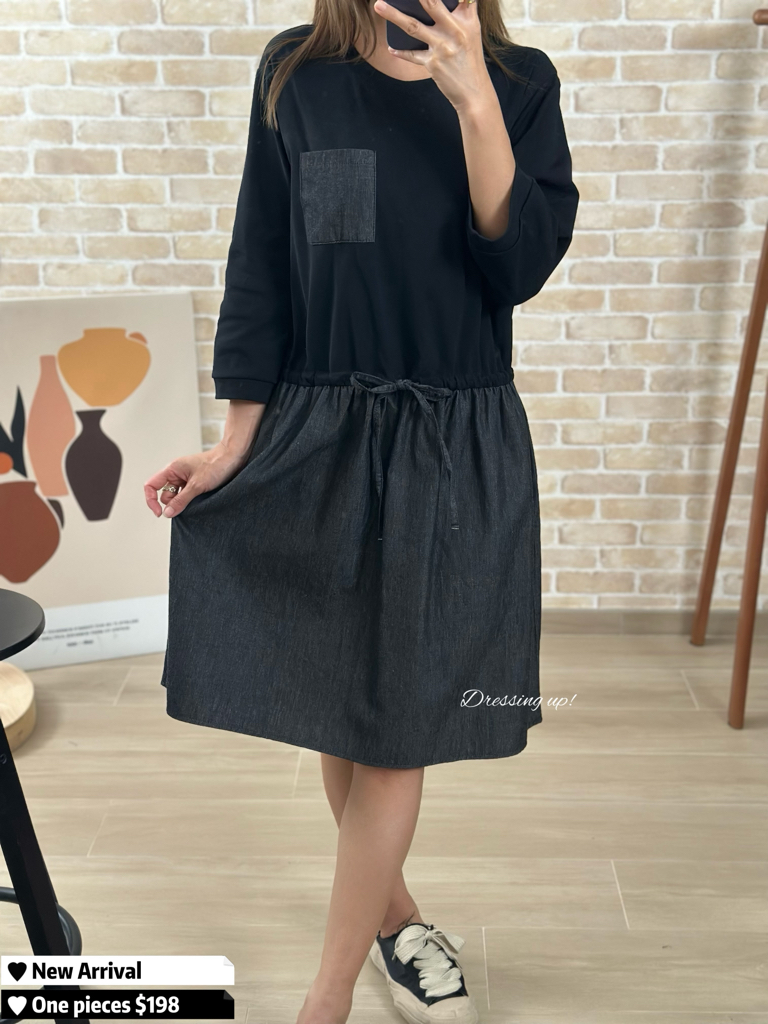 #懶人必買✨ 任何身型都著得靚 😎😎 棉質拼牛仔連身裙 完美遮肉又方便 簡簡單單,懶人必買喎! 灰拼藍牛仔、黑拼黑牛仔 腰位42吋、可自由索繩修腰 未出相已經好多客訂緊 😆 🆕 懶人必買|棉質拼牛仔連身裙 🆕 胸40-46吋/腰42吋/Hip50吋/長92cm