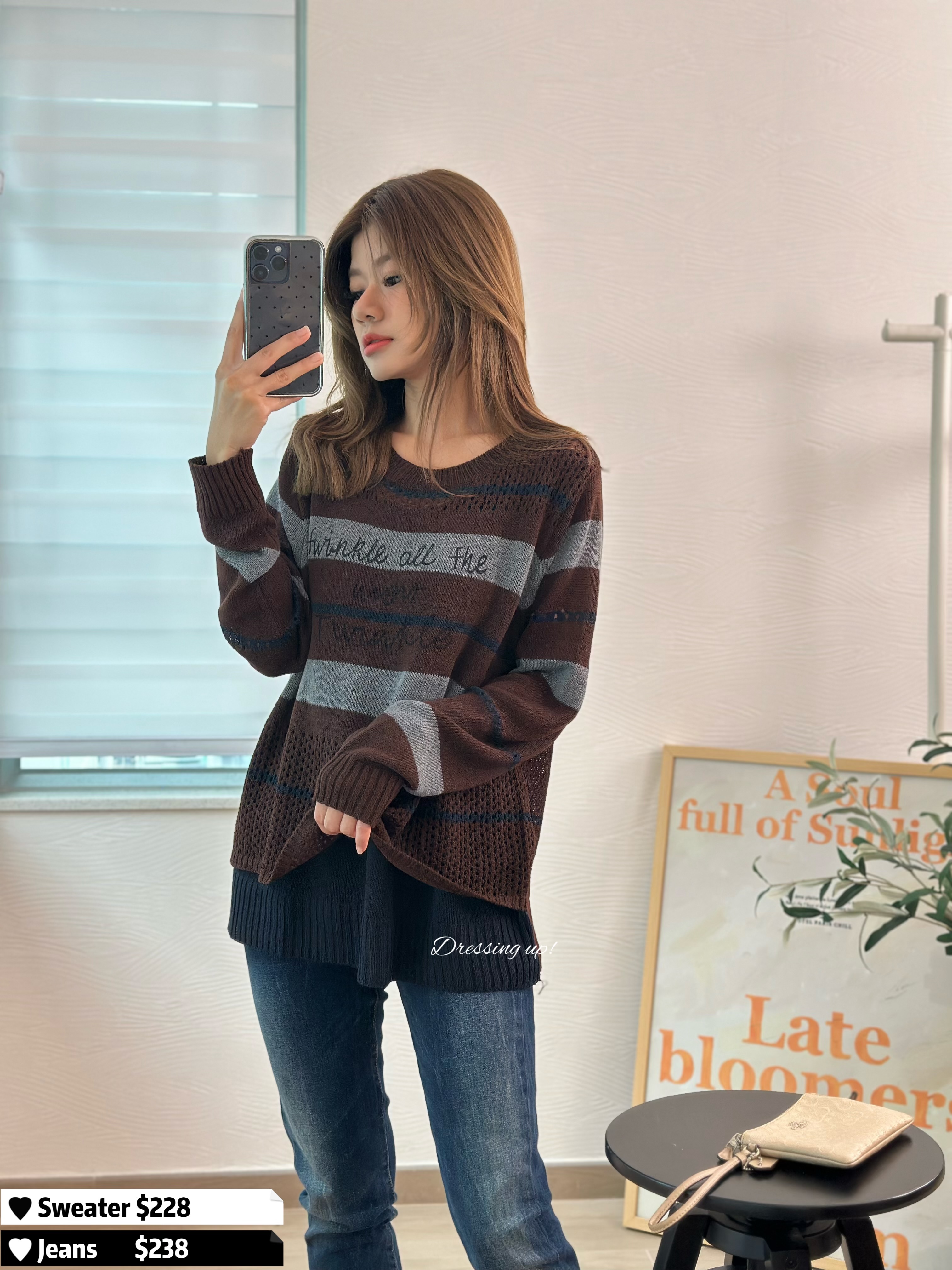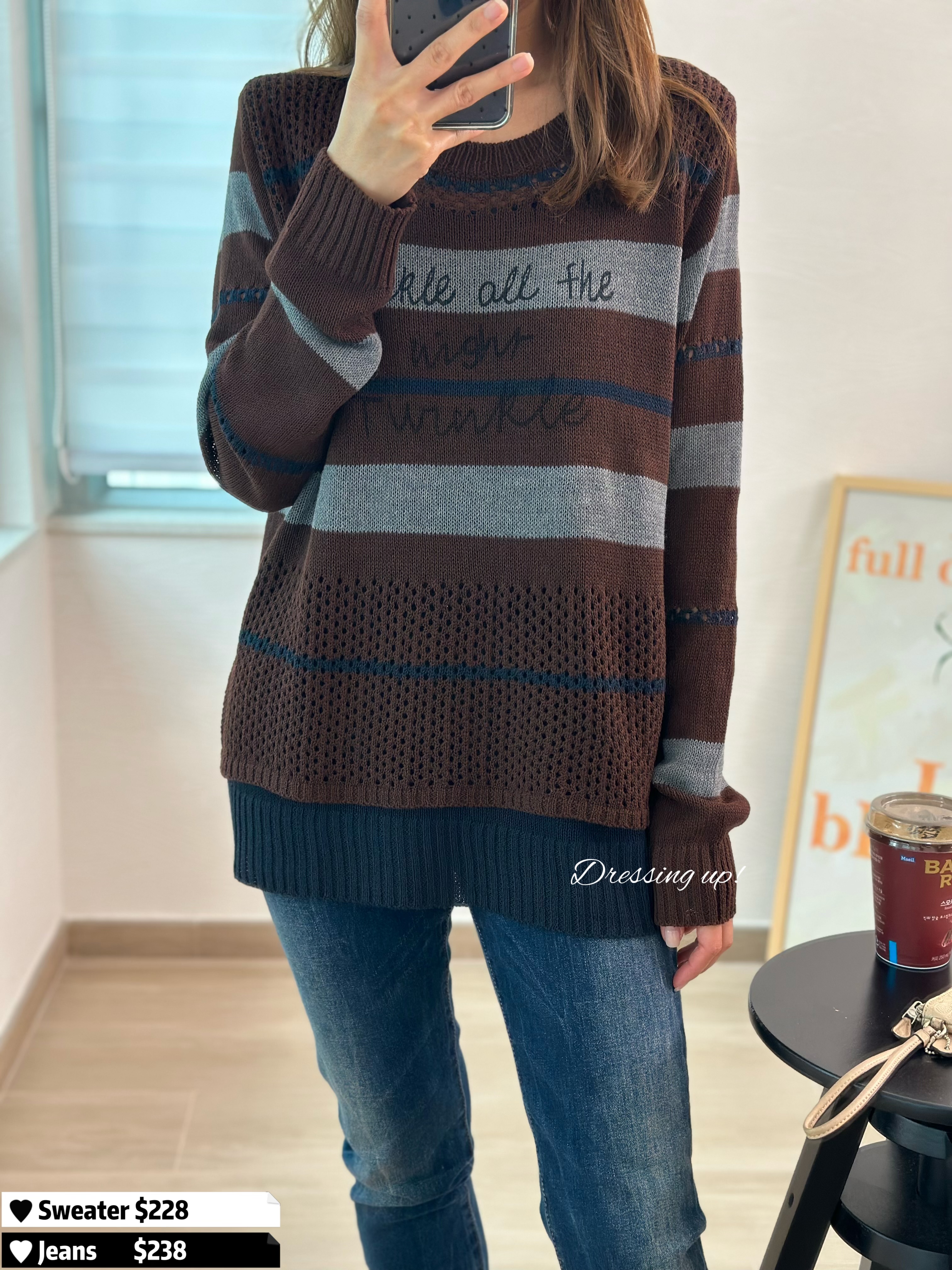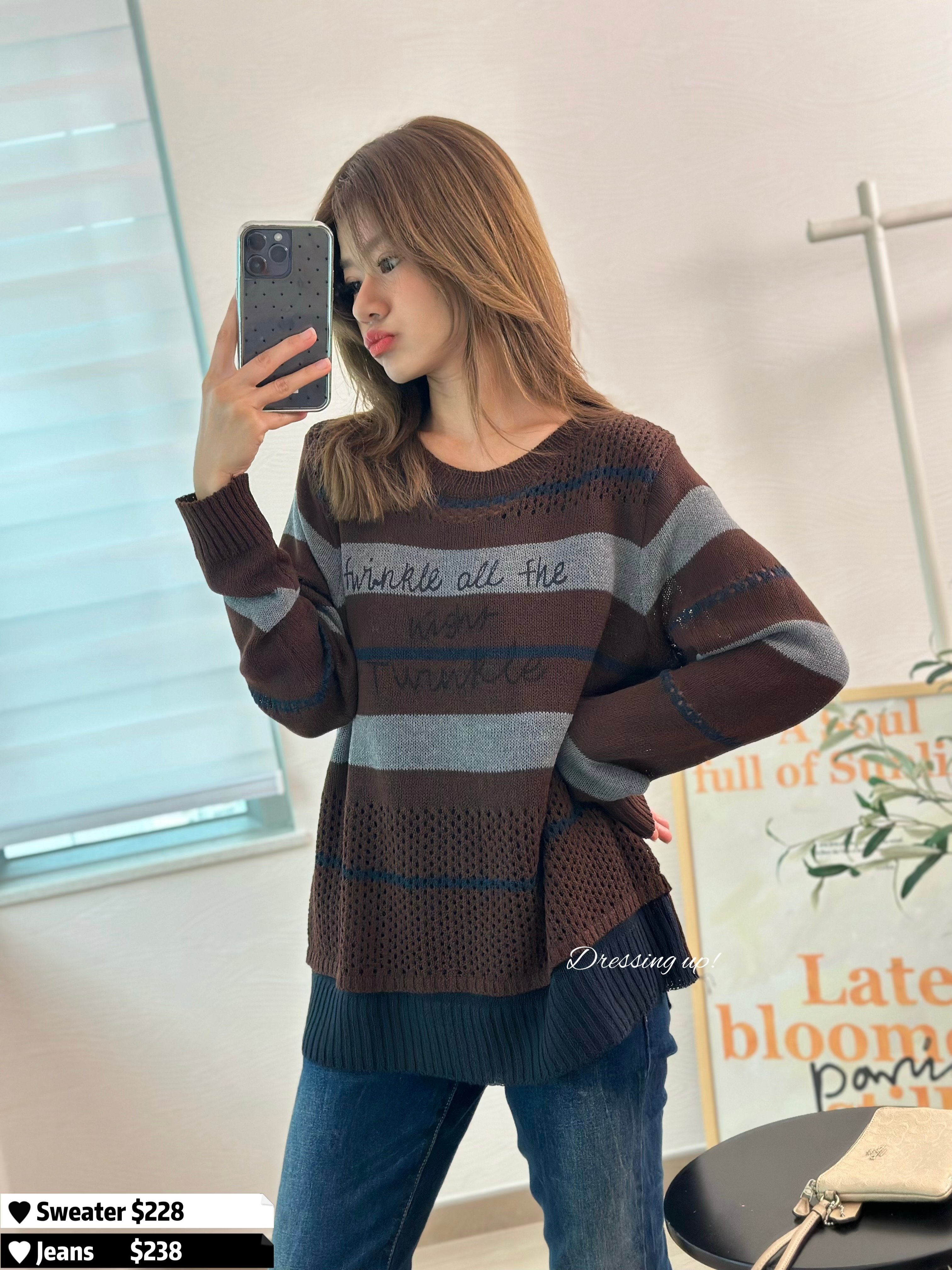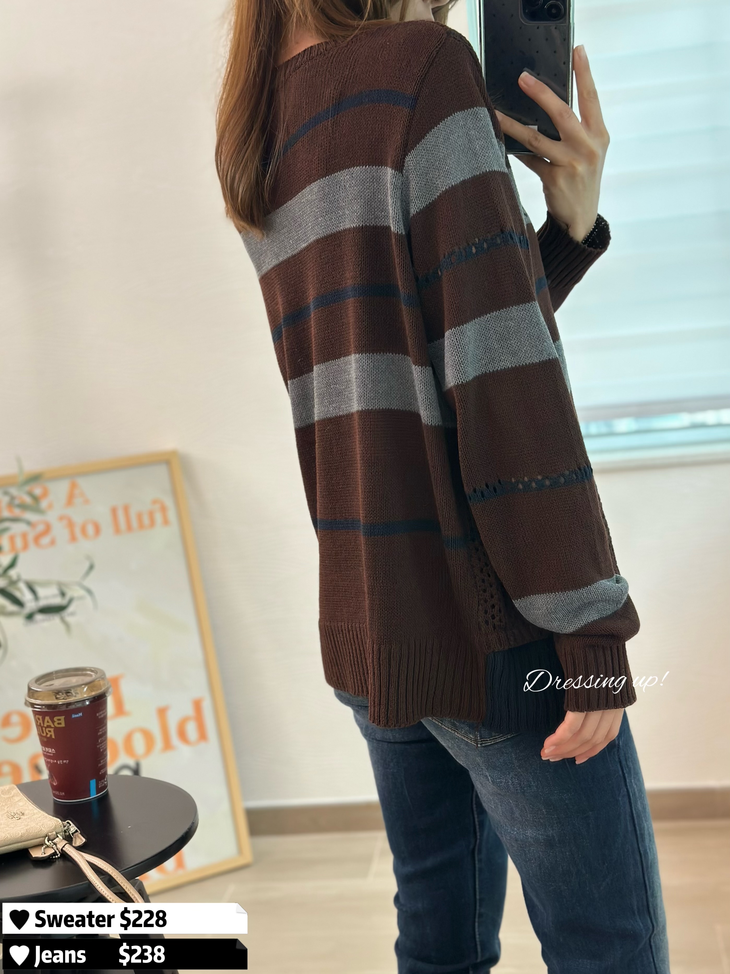 #最顯瘦針織 🫶🏻 買它!買它!信我就買它! 極顯瘦條紋針織 棗紅主色、拼上寶藍內里 完完全全免打底 😝🫶🏻 極軟針織線料,超級親膚 年尾多飯局一定要買! 又靚又顯瘦就係佢啦 😍😍😍 🆕 最顯瘦針織|條紋極軟冷衫 🆕 胸42-50吋/腰40-48吋/長60cm