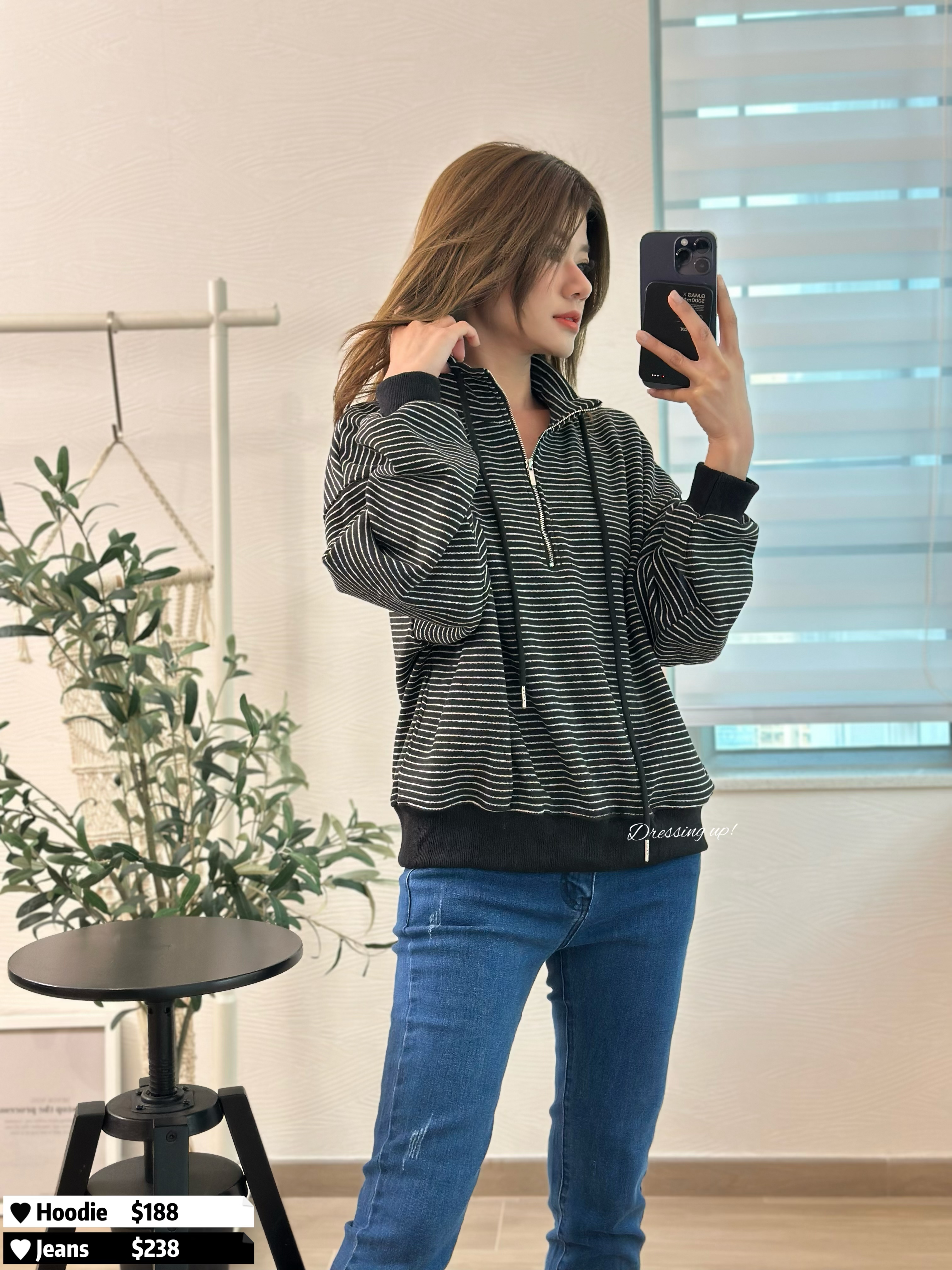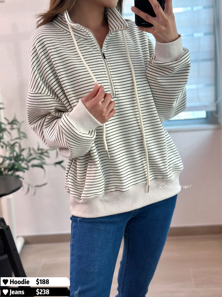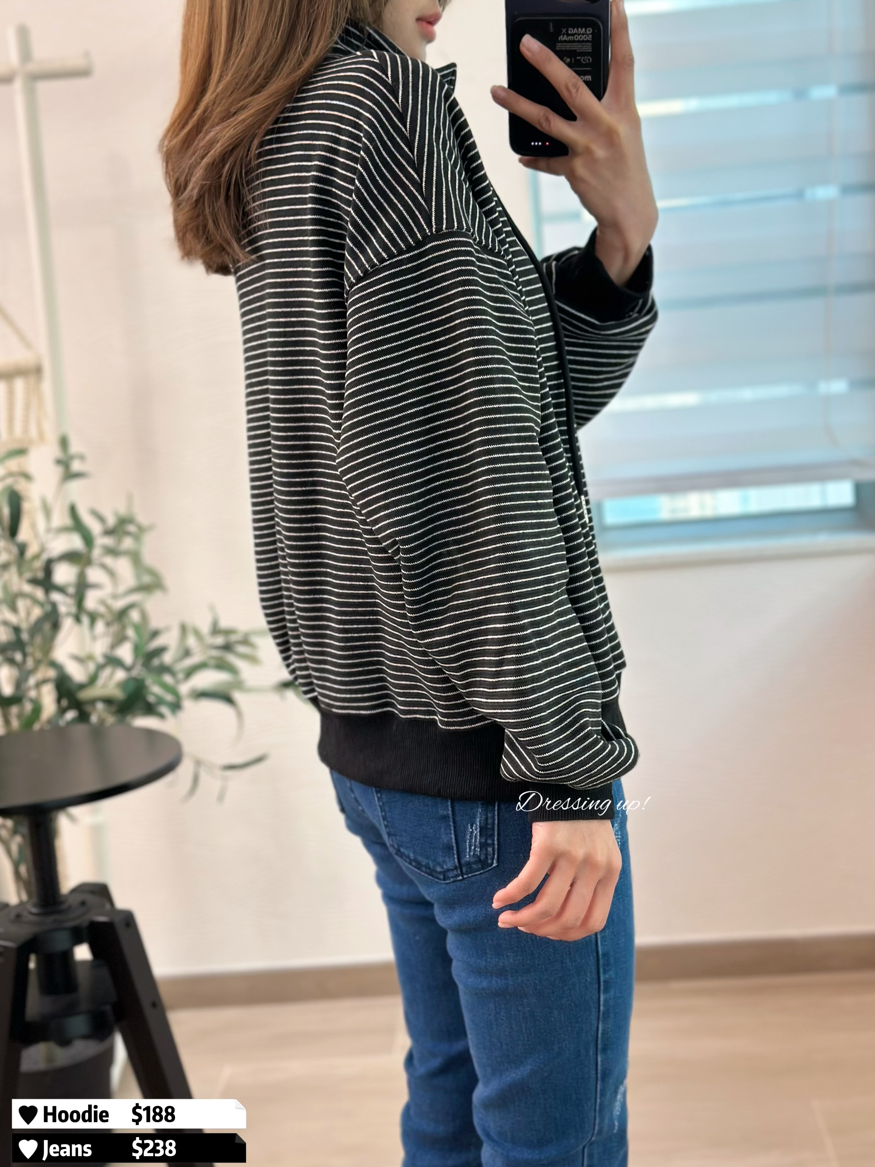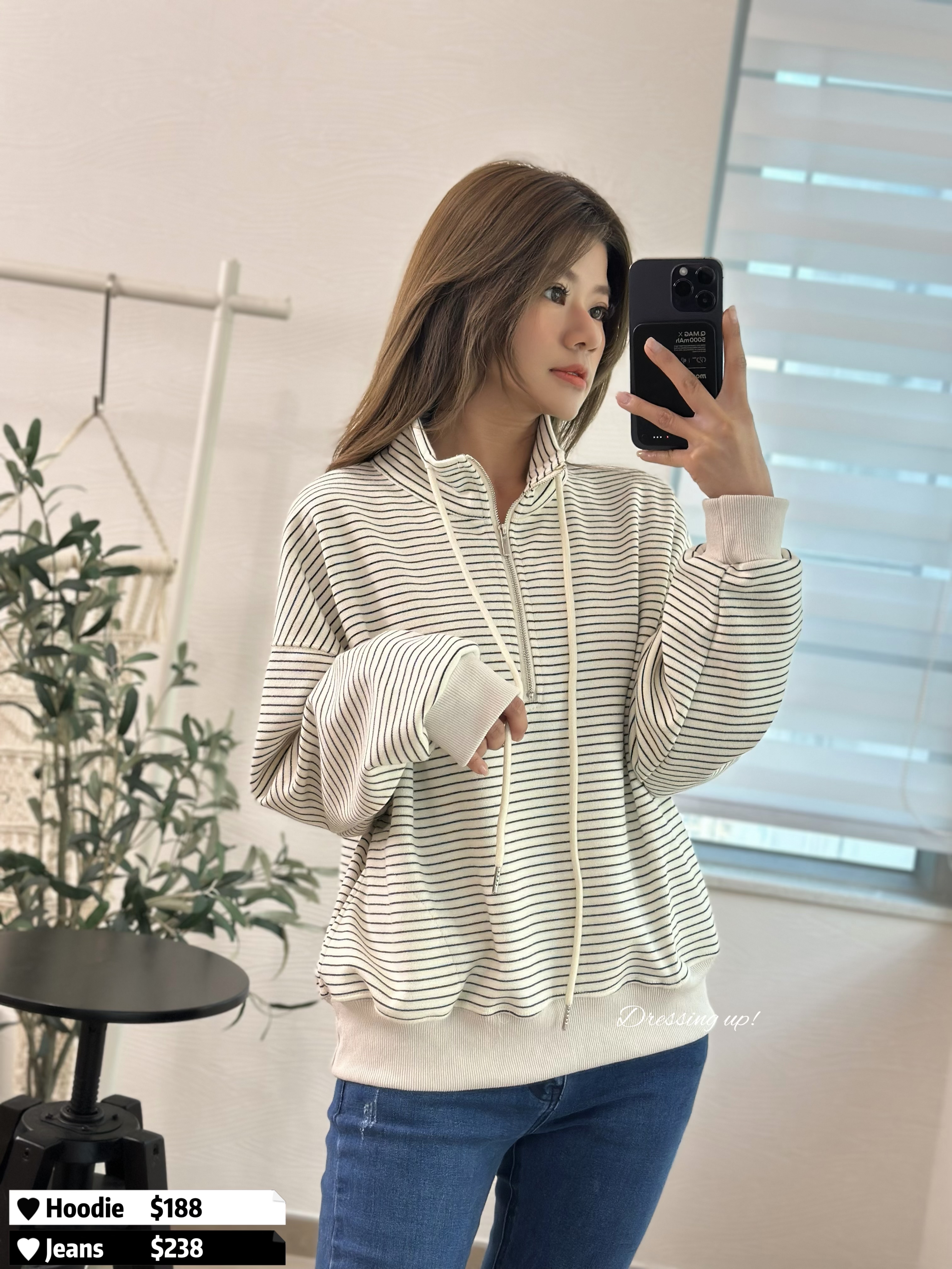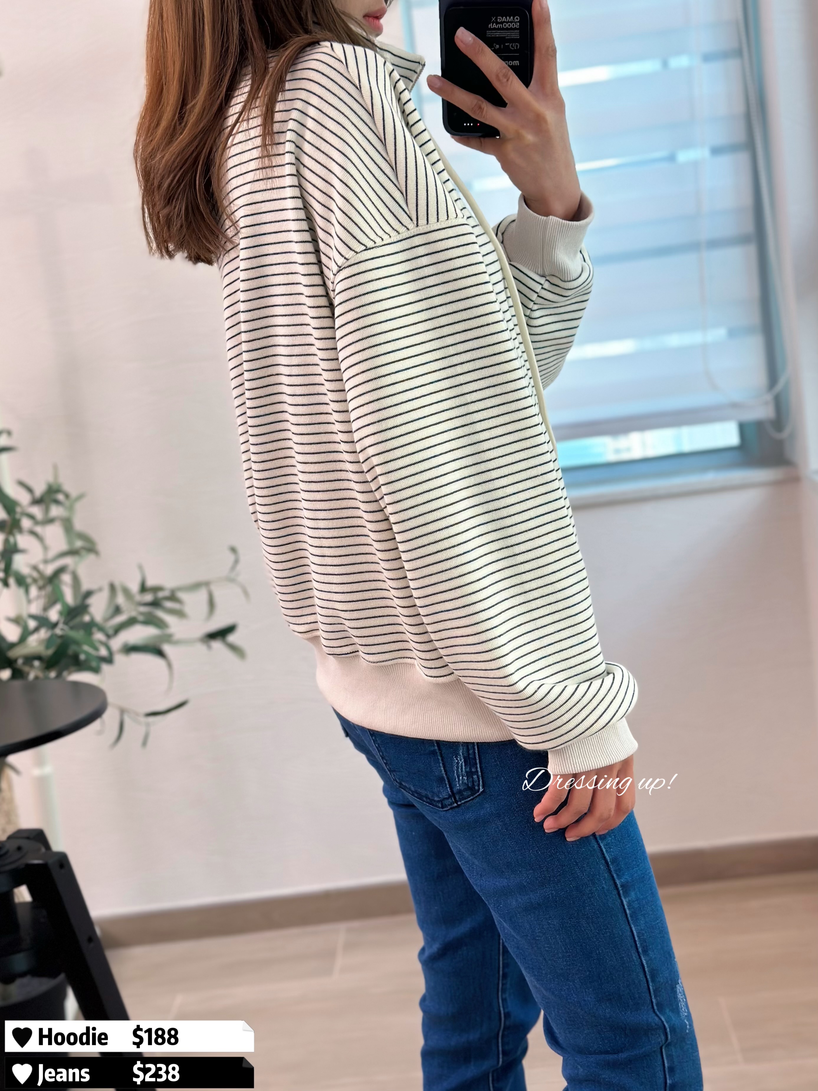 #滿足多心的妳 💌 天氣不同 😝 穿法也不同 條紋棉質衞衣 領位可拉鍊做企領 凍唔凍都著得,係咪好正呢 😂👍🏻 黑白兩色、全件有彈性 難得係米白色都唔顯肥~~ 抵著呀 😍 好多客入兩色! 🆕 滿足多心的妳|企領棉質衞衣 🆕 胸44-52吋/腰36-46吋/長54cm