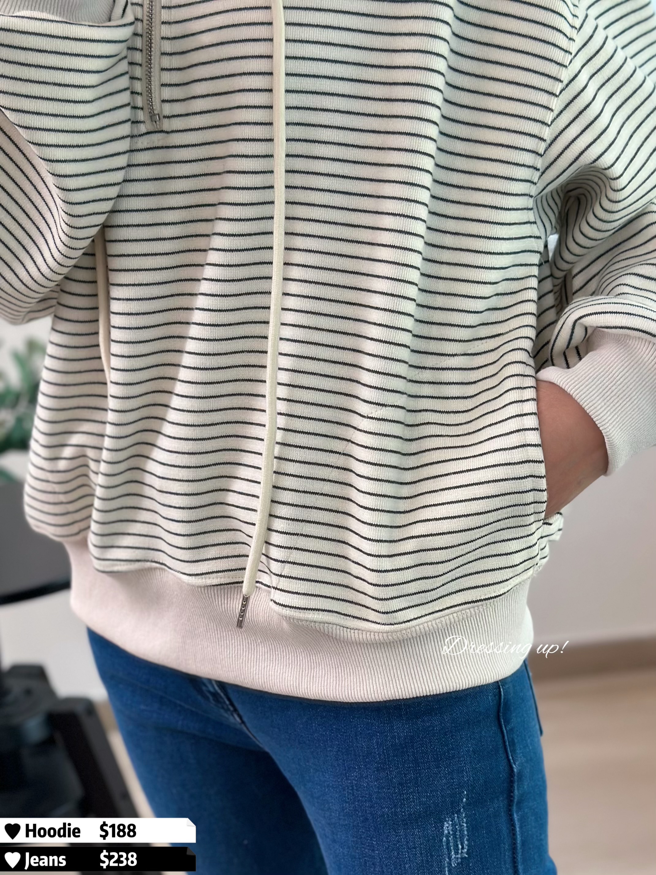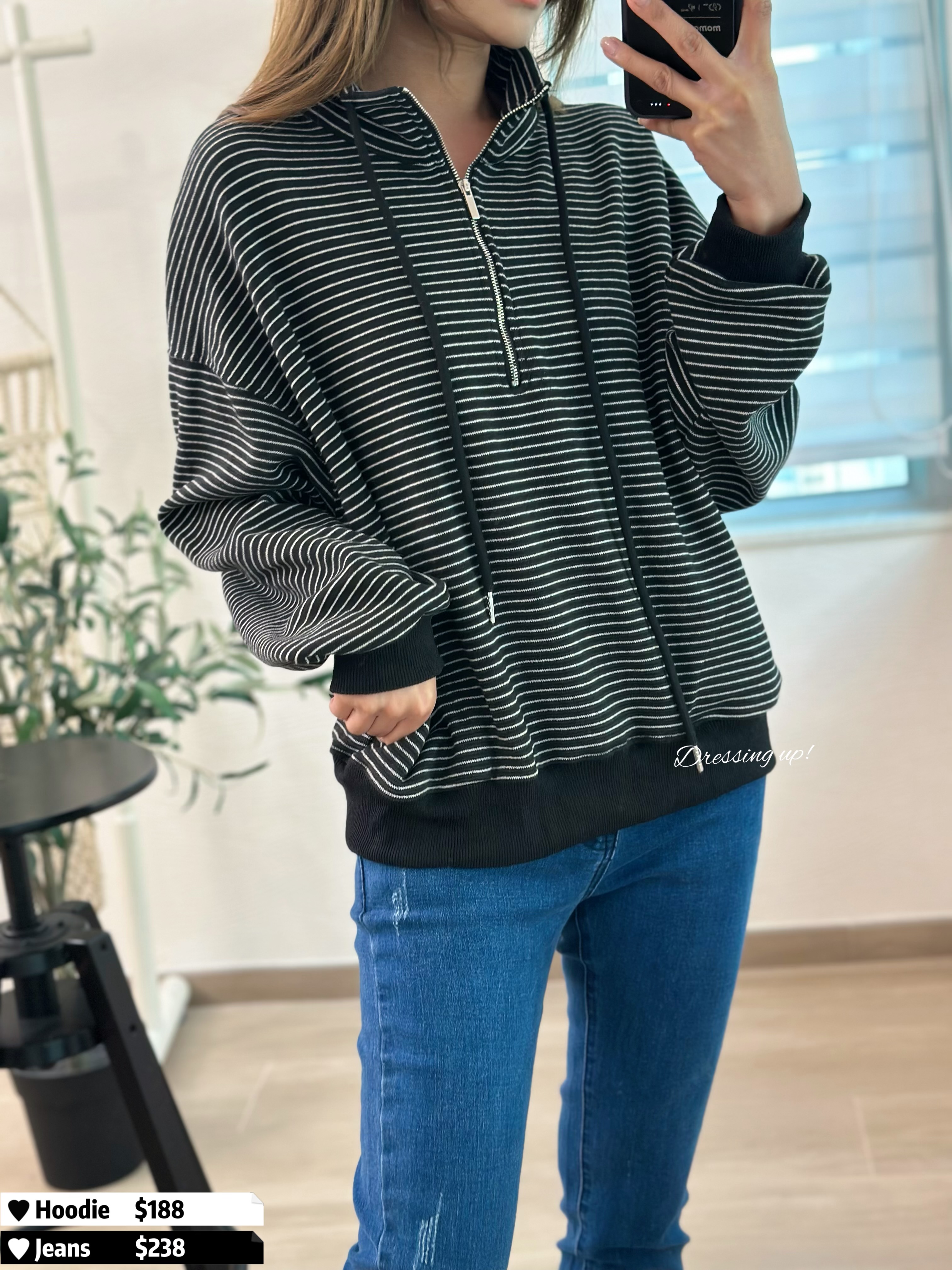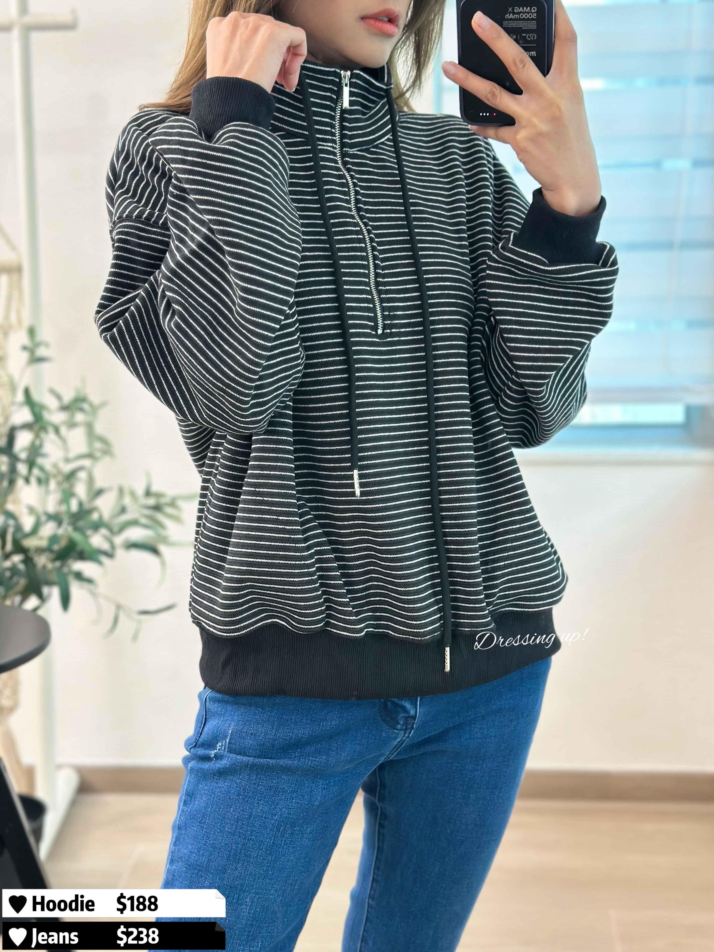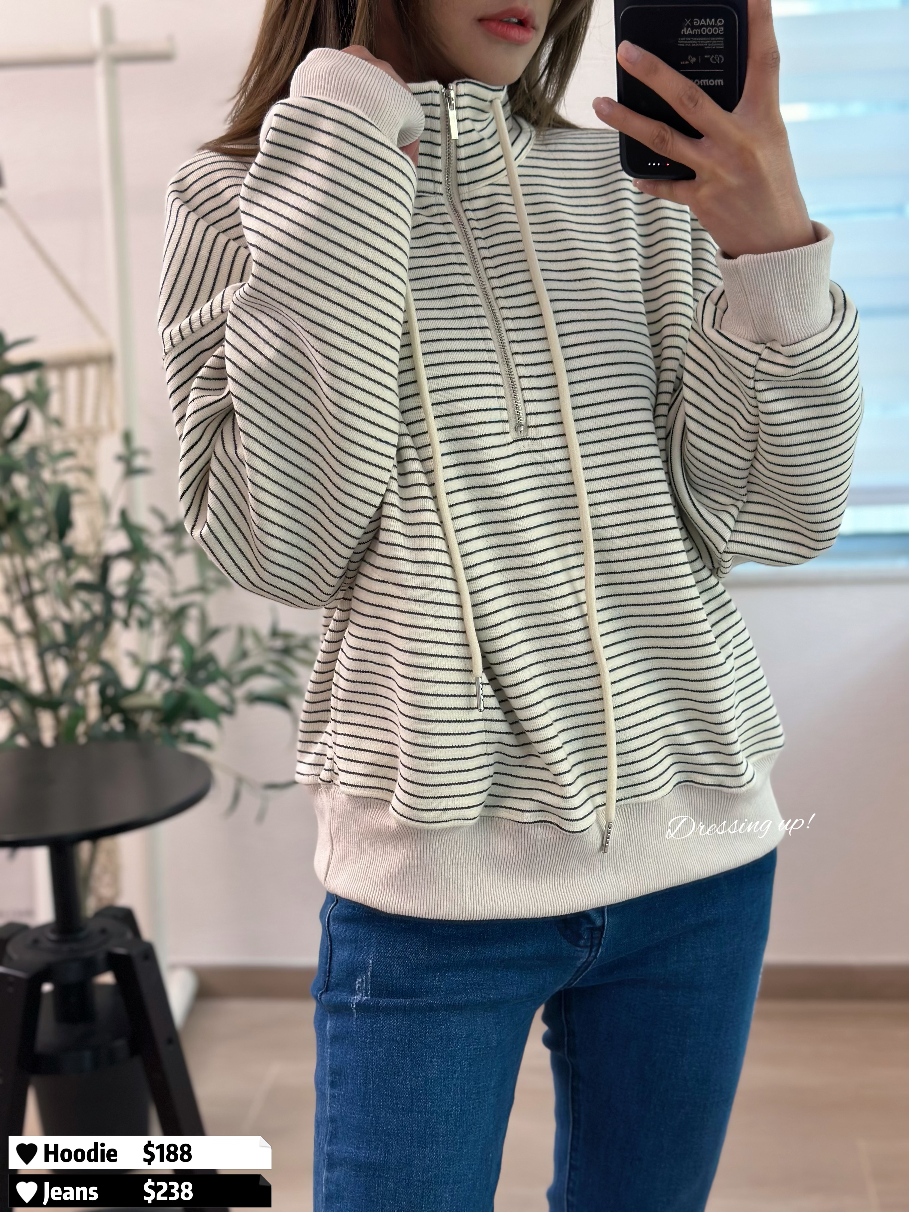 #滿足多心的妳 💌 天氣不同 😝 穿法也不同 條紋棉質衞衣 領位可拉鍊做企領 凍唔凍都著得,係咪好正呢 😂👍🏻 黑白兩色、全件有彈性 難得係米白色都唔顯肥~~ 抵著呀 😍 好多客入兩色! 🆕 滿足多心的妳|企領棉質衞衣 🆕 胸44-52吋/腰36-46吋/長54cm