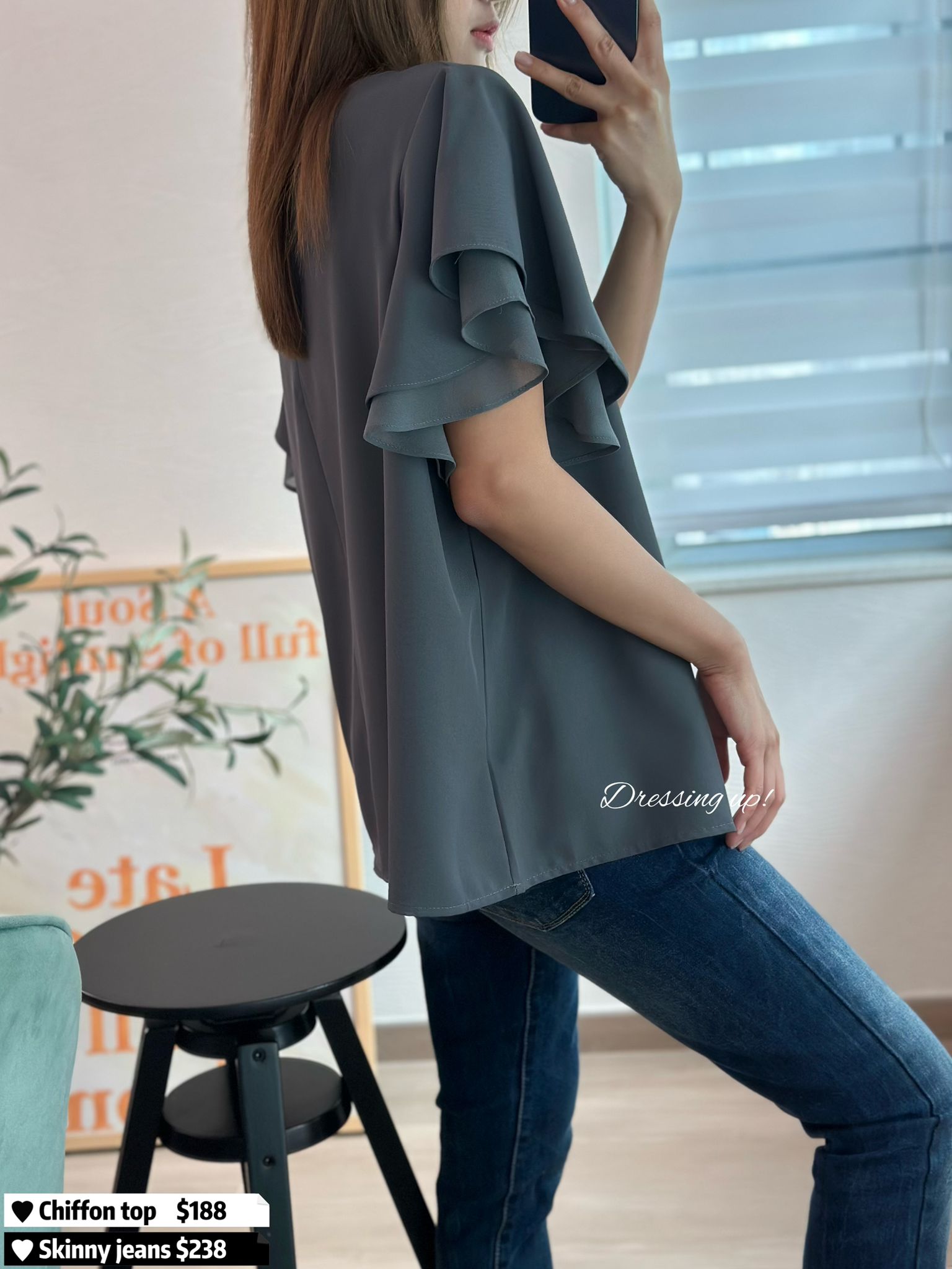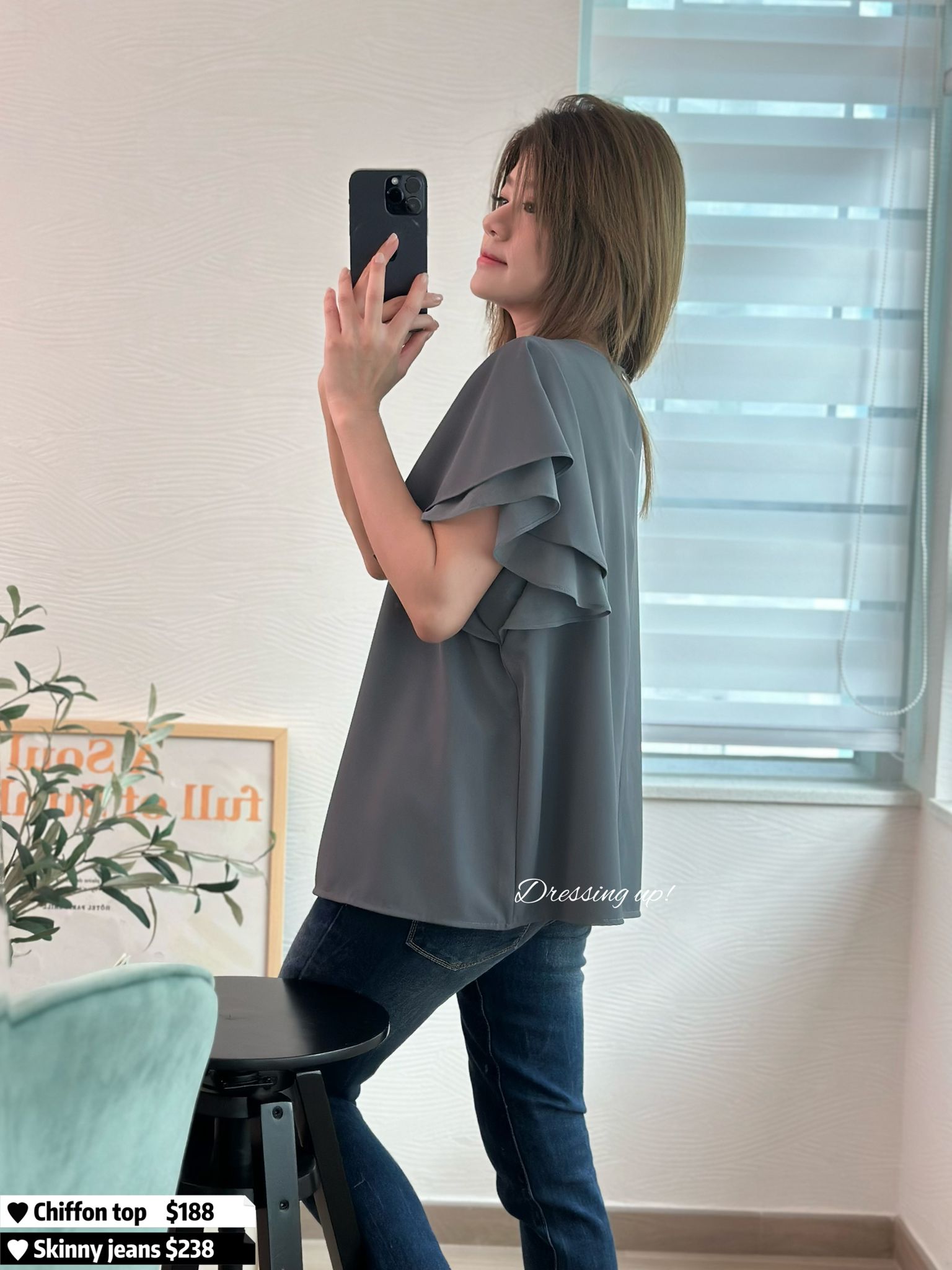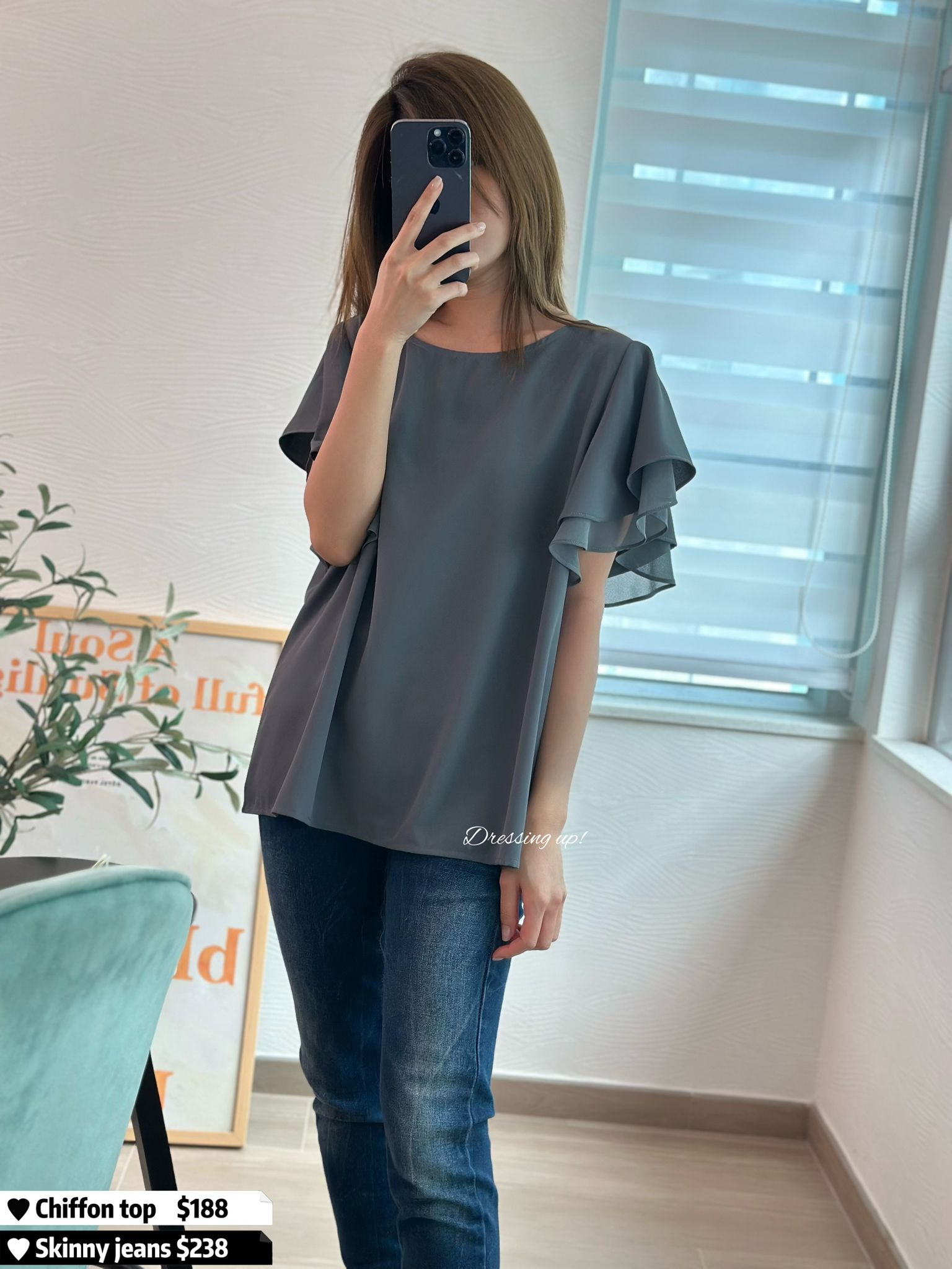 #百搭大象灰 🔖 荷葉袖雪紡上衣 腰位48吋,有肉地可穿 手袖靚到不得了 😍😍😍 百搭大象灰:返工最啱 質地輕薄高質! 平靚正,點著都抵 😂🙌🏻 🆕 百搭大象灰|荷葉袖雪紡上衣 🆕 胸44吋/ 腰48吋/長61cm