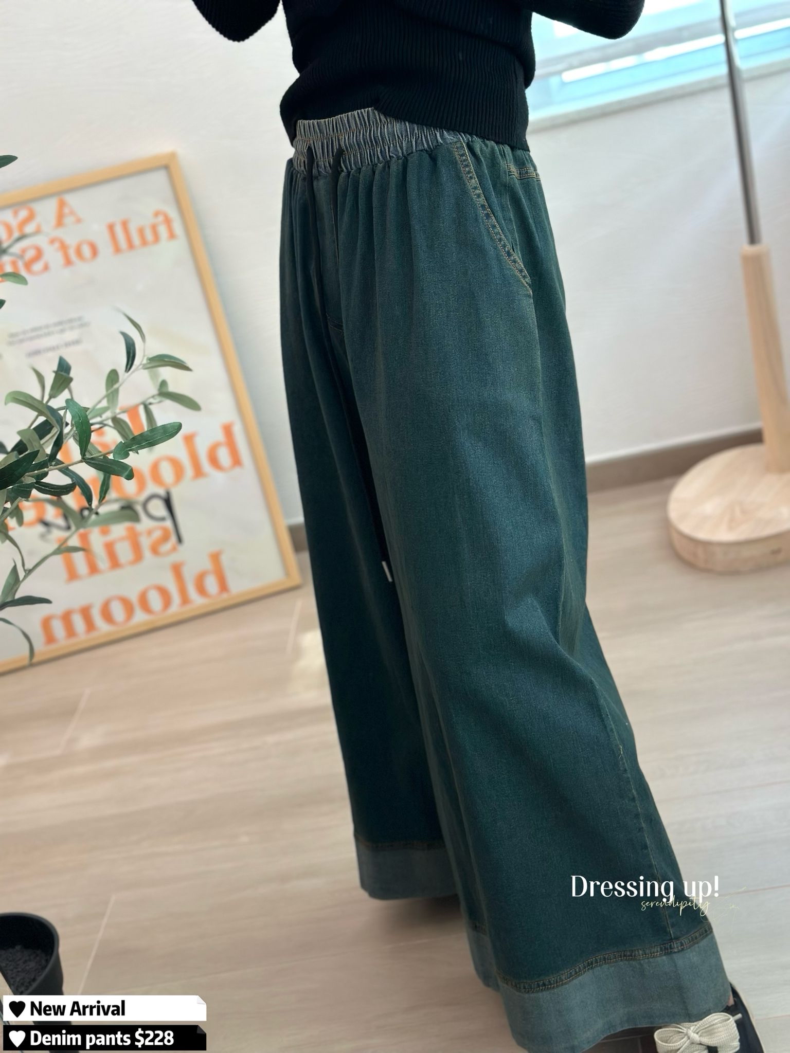 #美式復古風 📸 哇哇哇!今次係闊褲呀 😍♥️ 美式復古牛仔褲 帶藍又帶綠,顏色勁少有 實物超靚 😍 收到一定驚艷喎 ~ 橡筋腰、兩側有褲袋、有彈性布料 Hip位更可拉至60吋 ~ 出街去玩,有型有款有性格 😜🙌🏻 🆕 美式復古風|洗水牛仔闊褲 🆕 橡筋腰27-40吋/Hip50-60吋/長89cm