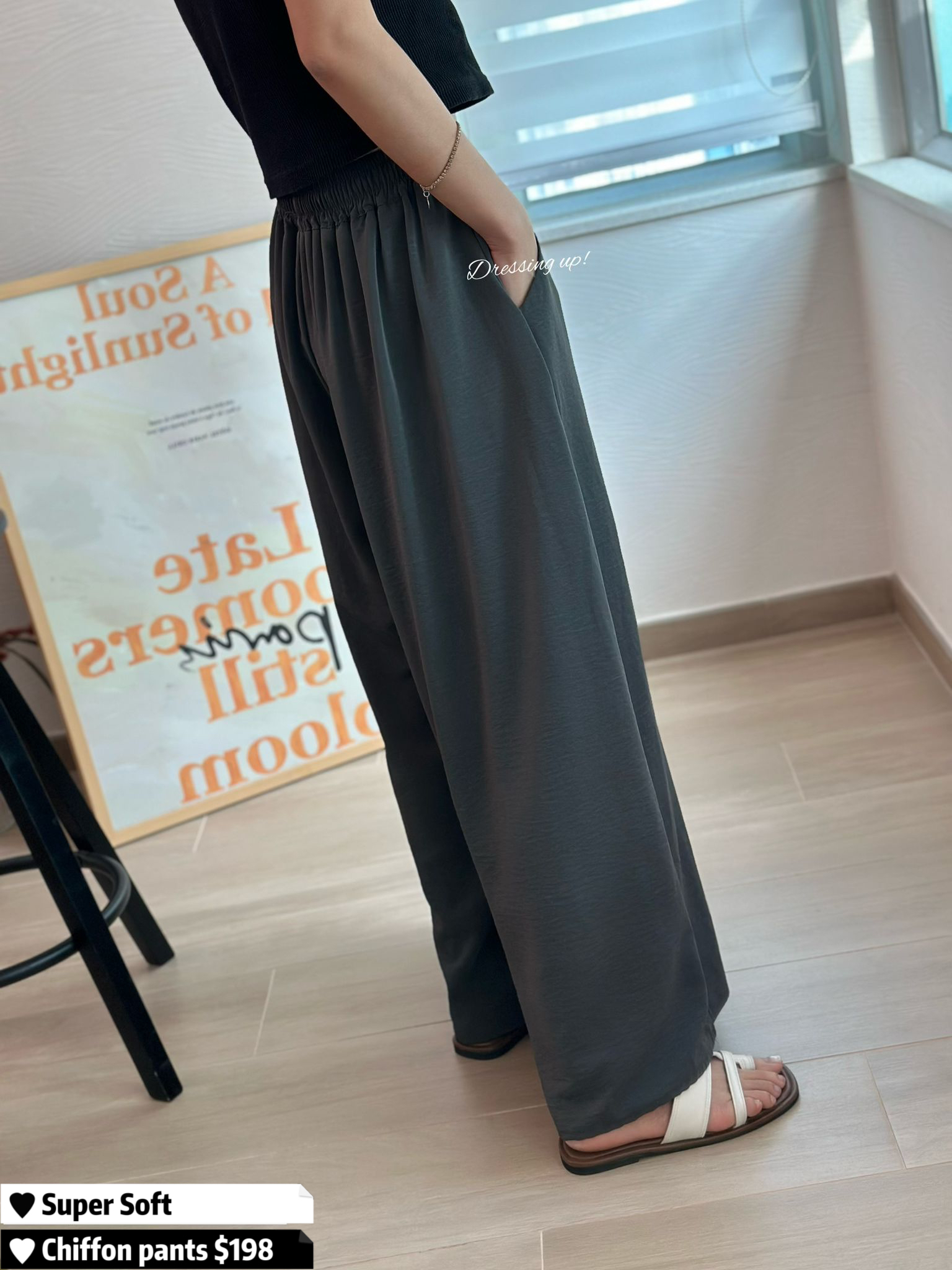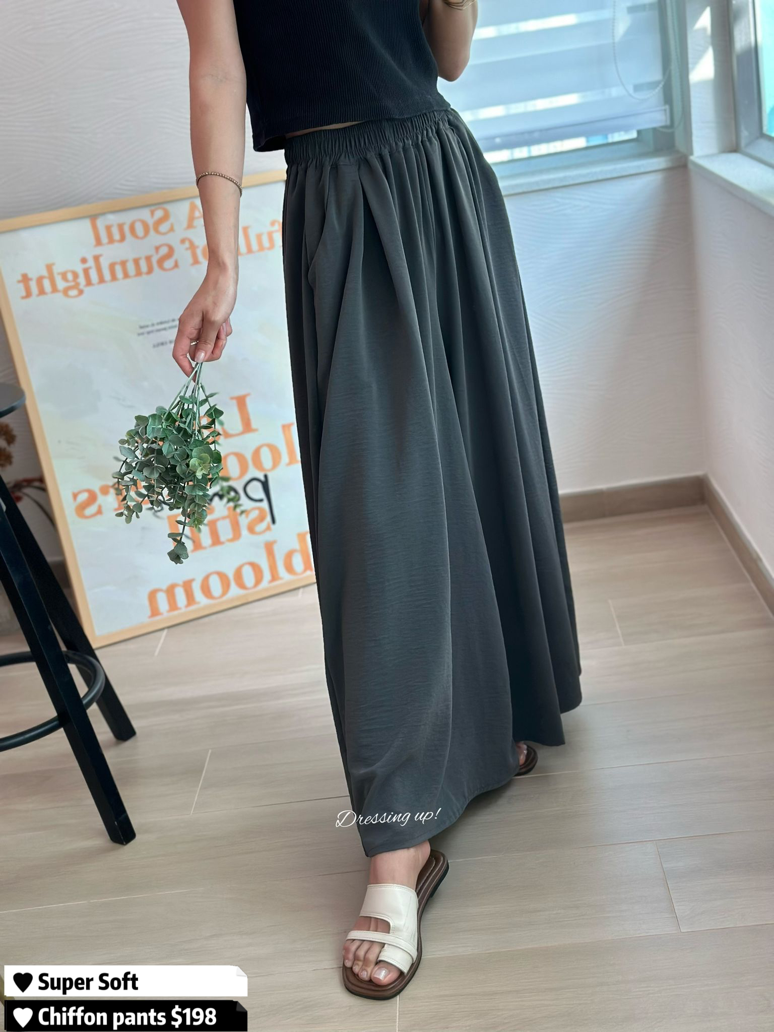 #誰買誰賺 💡💡 歡迎齊色入手 😂😂😂 免熨雪紡闊褲 大象灰、黑色 質地超級舒服囉!!! ⎷ 超輕身 ⎷ 超涼爽 ⎷ 超顯瘦 人見人愛嘅遮肉剪裁 重點係免熨料 😍 #誰買誰賺 💯 🆕 誰買誰賺|高質雪紡闊褲 橡筋腰28-38吋/Hip56吋/長88cm